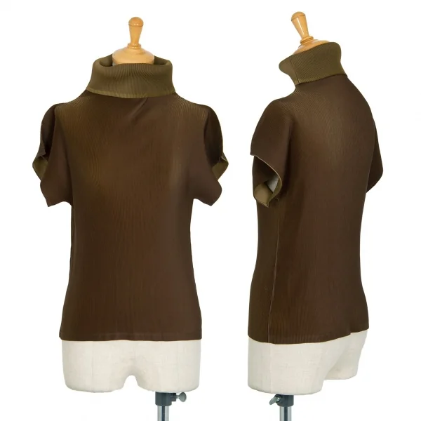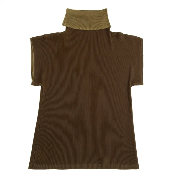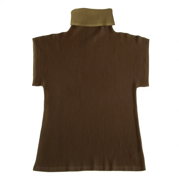 プリーツプリーズPLEATS PLEASE プリーツタートルネックフレンチスリーブトップス カーキ3