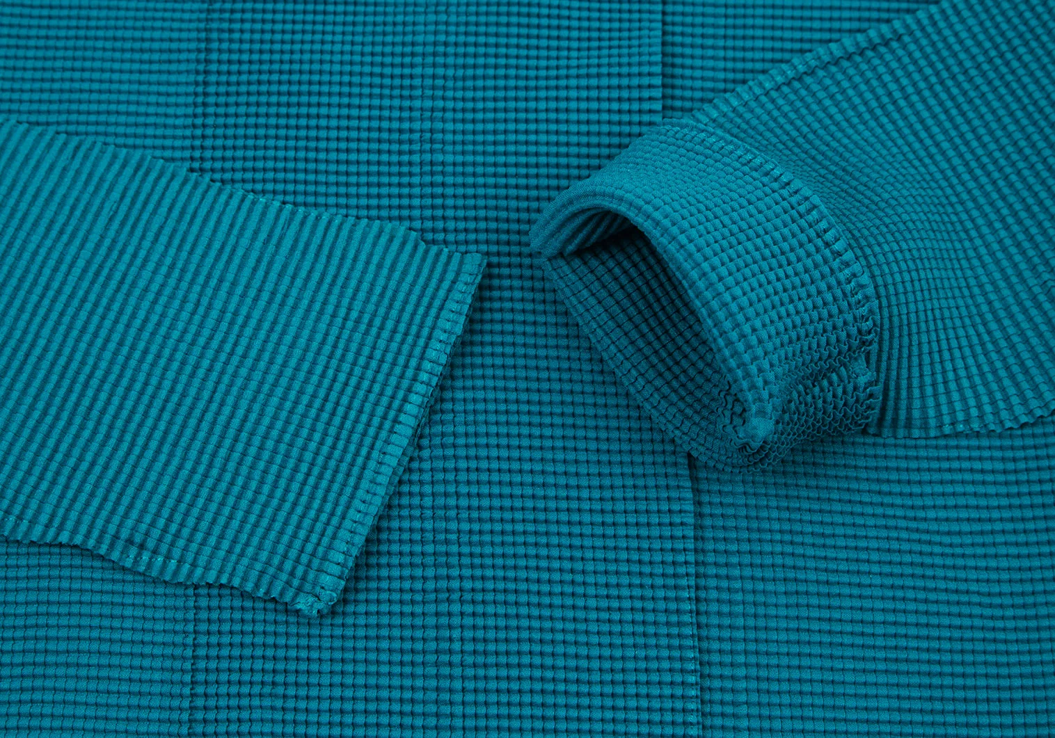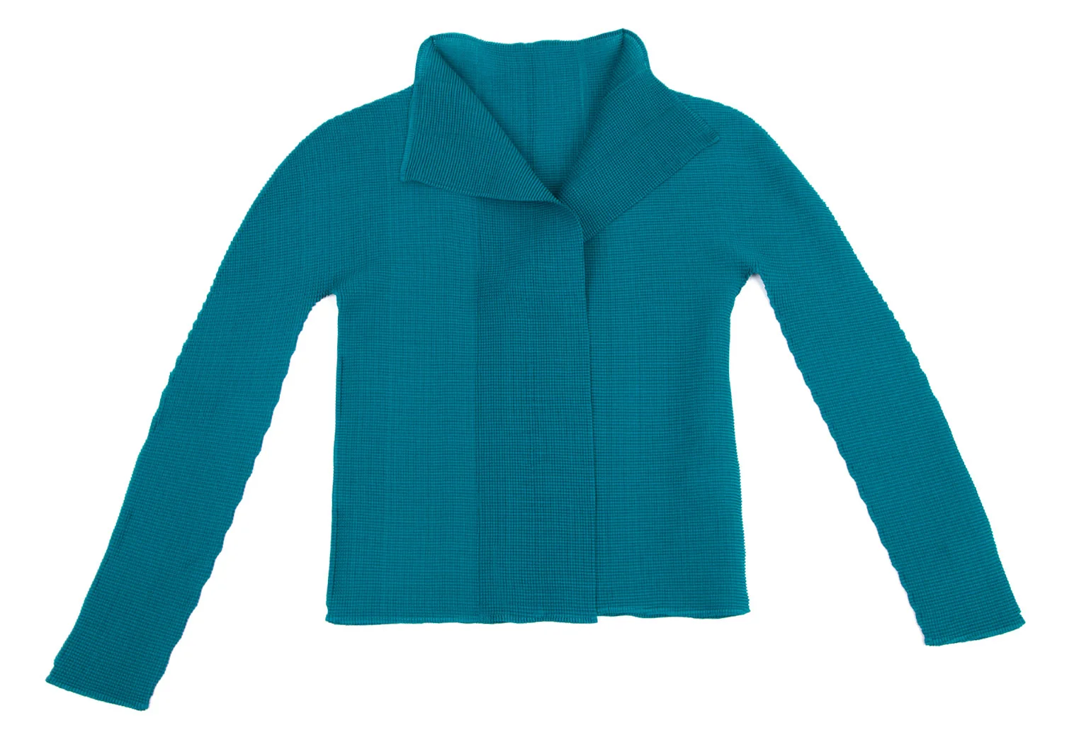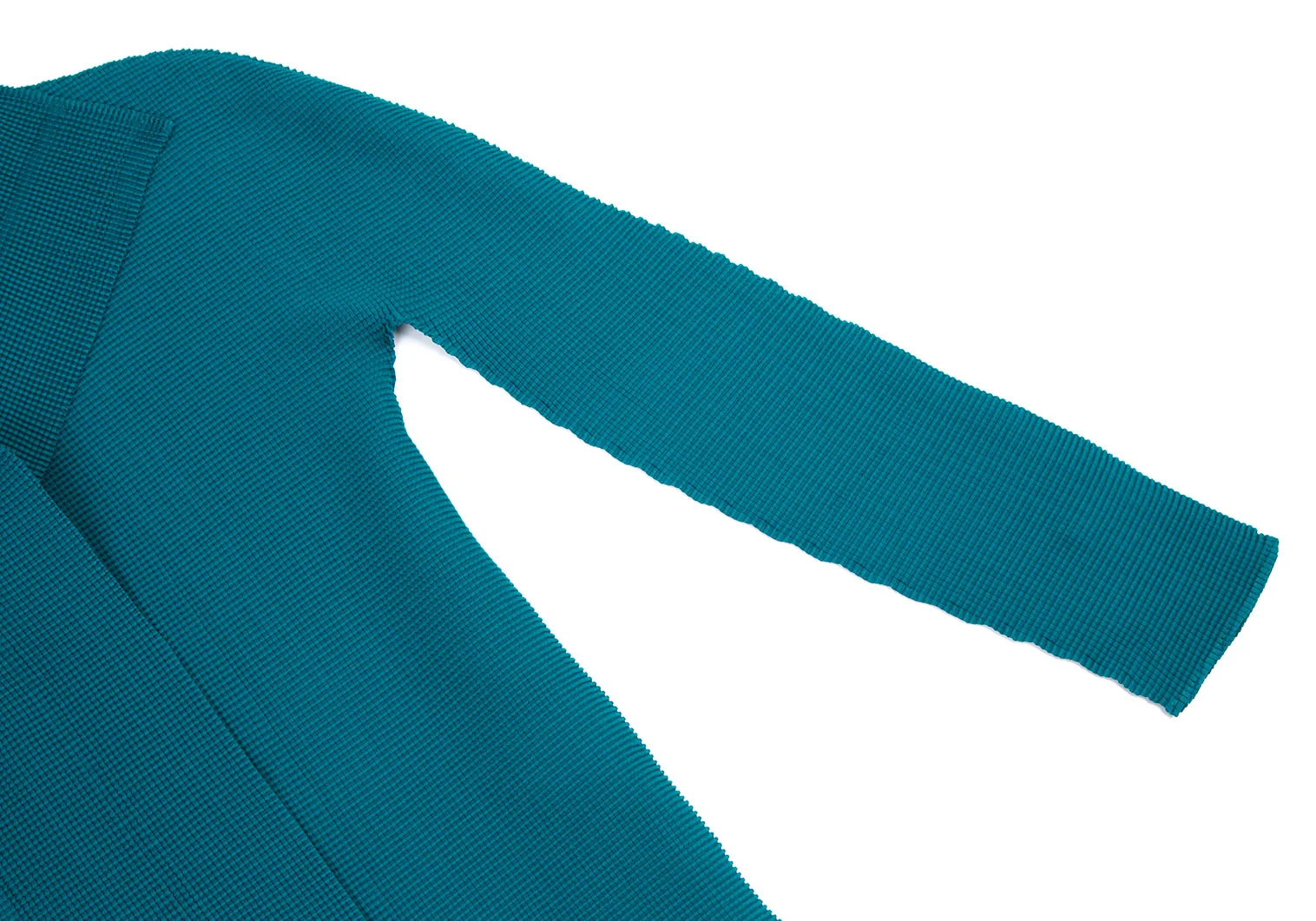 イッセイミヤケ ミーISSEY MIYAKE me ニットプリーツボタンレスカーディガン ターコイズF
