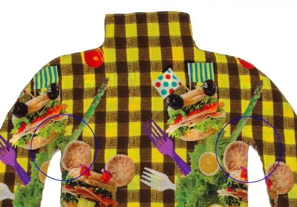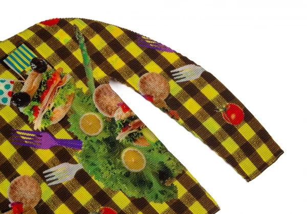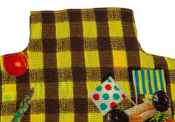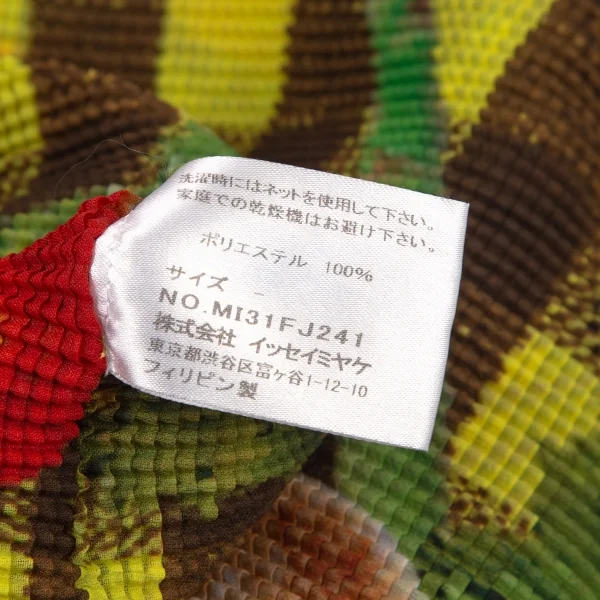 イッセイミヤケ ミーISSEY MIYAKE me ハンバーガーチェックプリントブロックプリーツハイネックカットソー 黄茶F