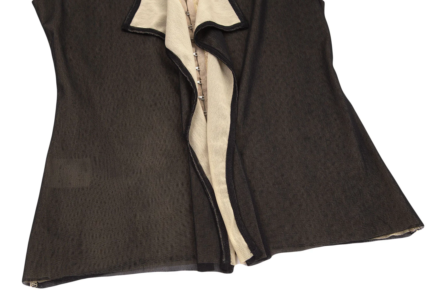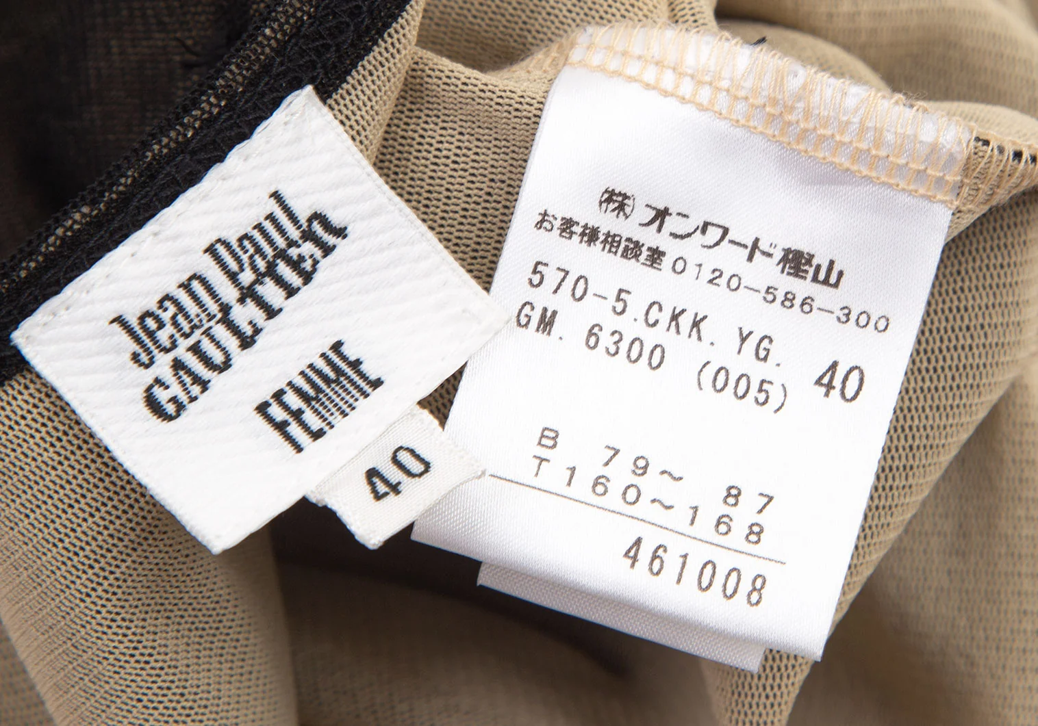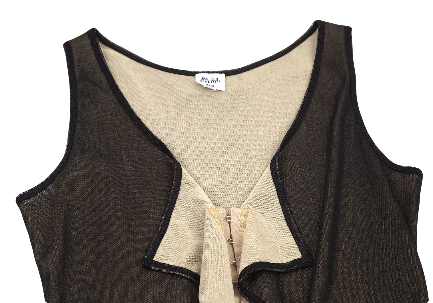 ジャンポールゴルチエファムJean Paul GAULTIER FEMME フロントホックデザインレイヤードパワーネットノースリーブトップス 黒ベージュ40