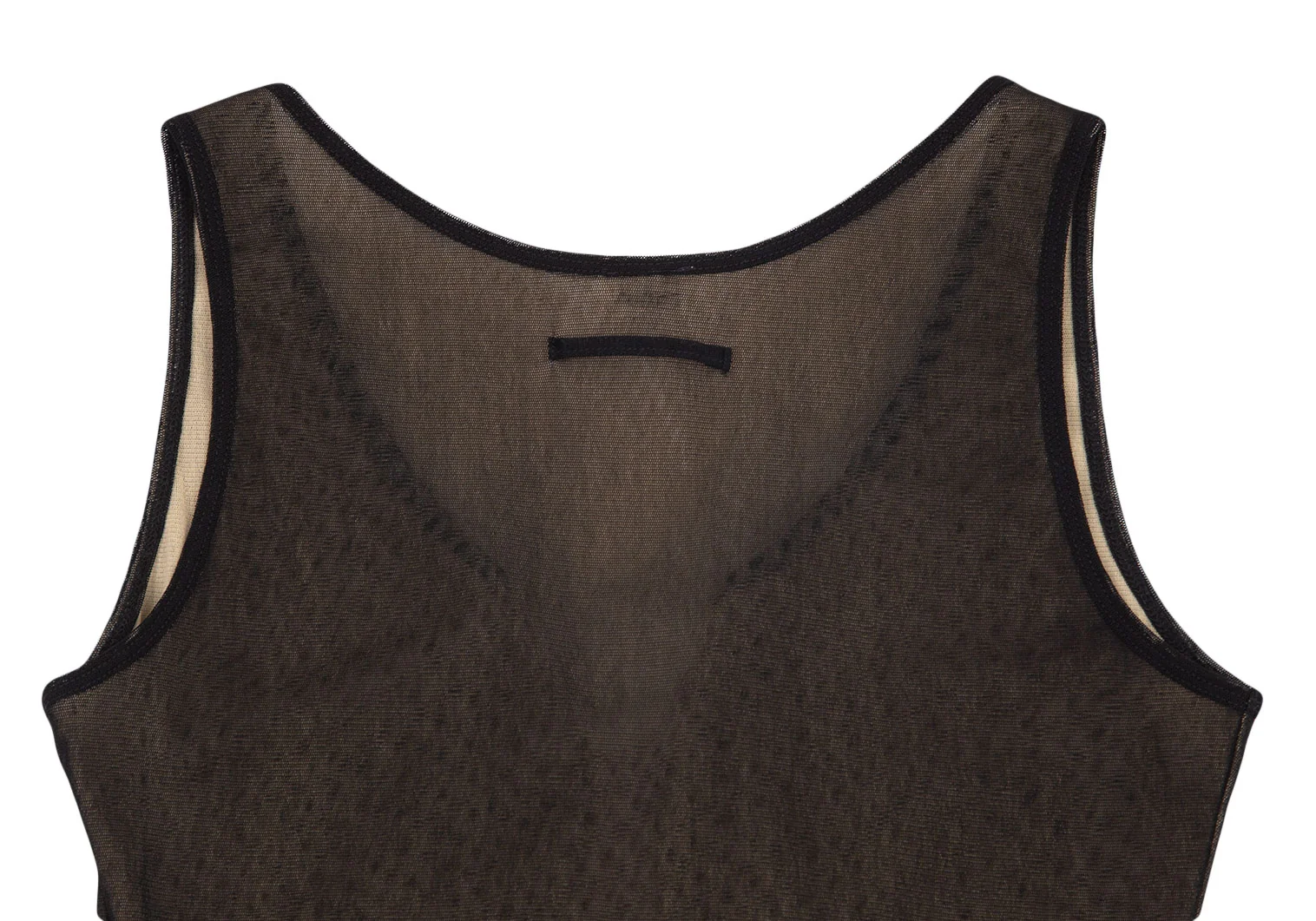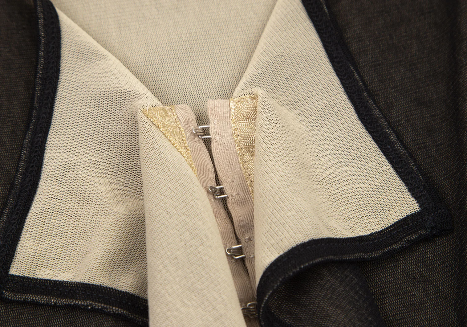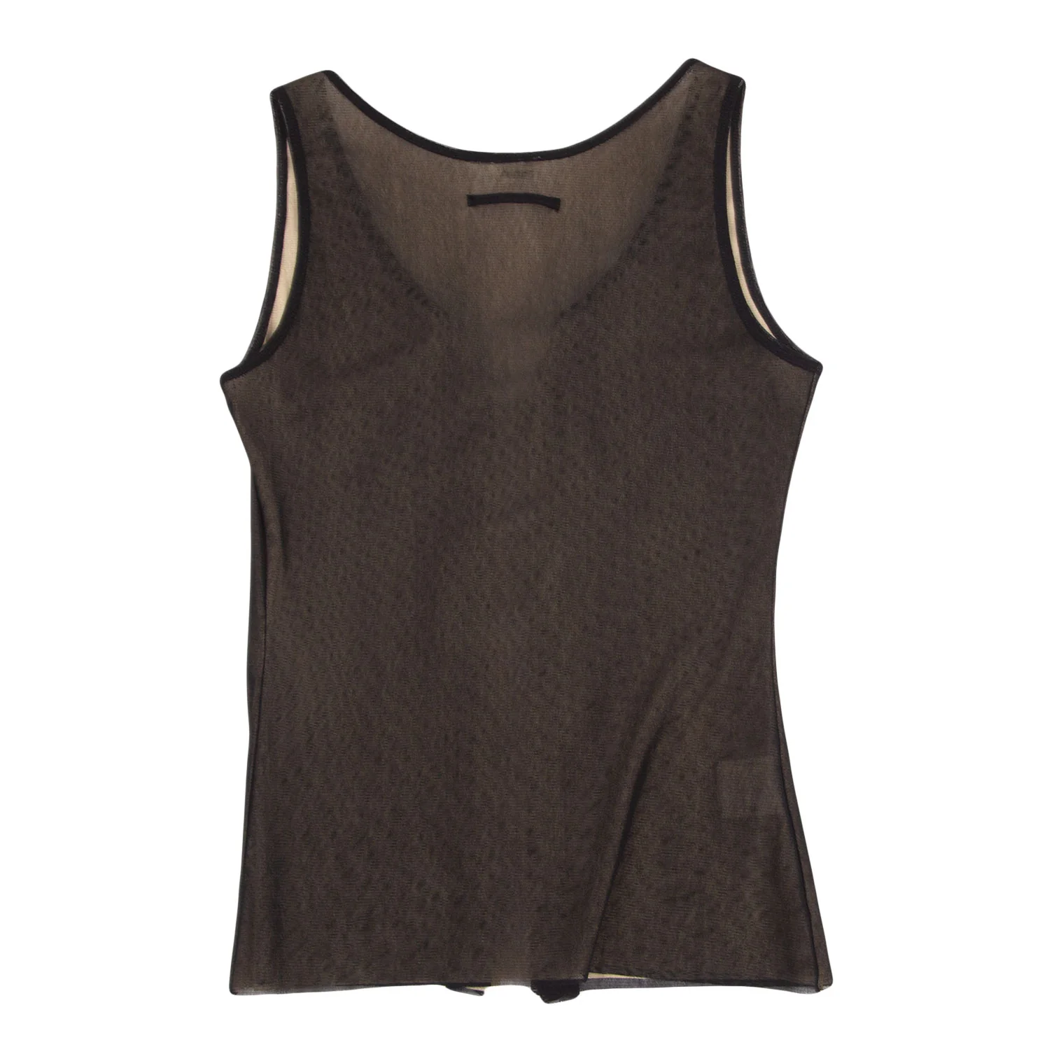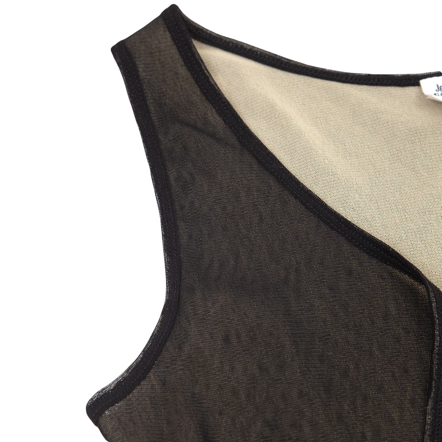 ジャンポールゴルチエファムJean Paul GAULTIER FEMME フロントホックデザインレイヤードパワーネットノースリーブトップス 黒ベージュ40