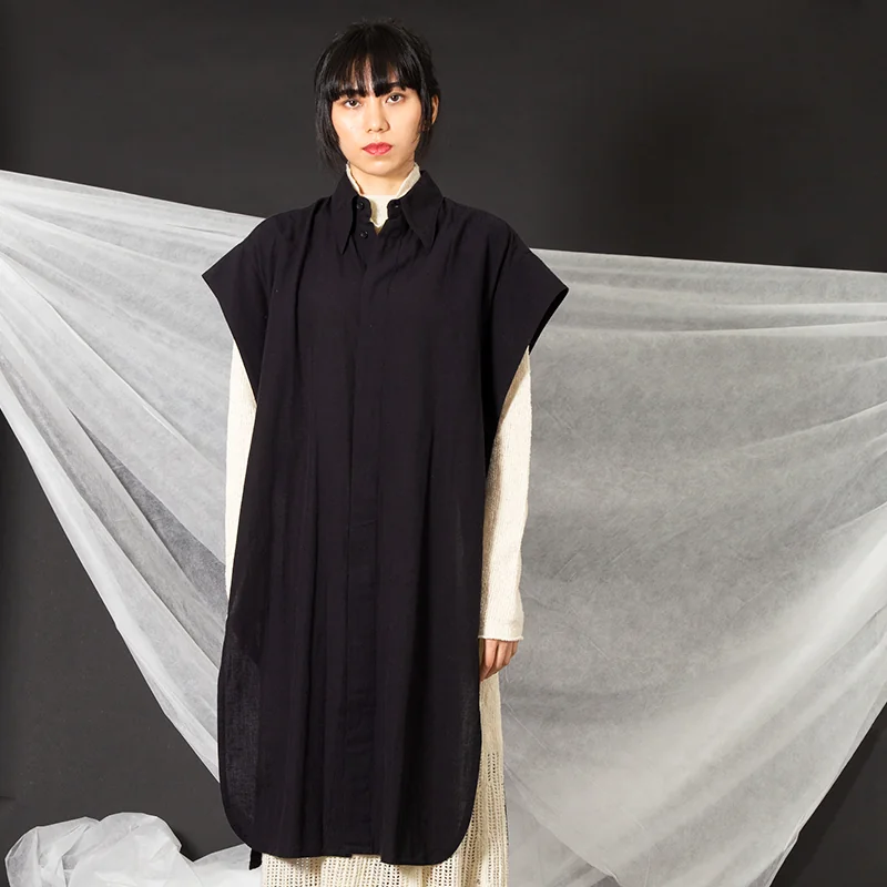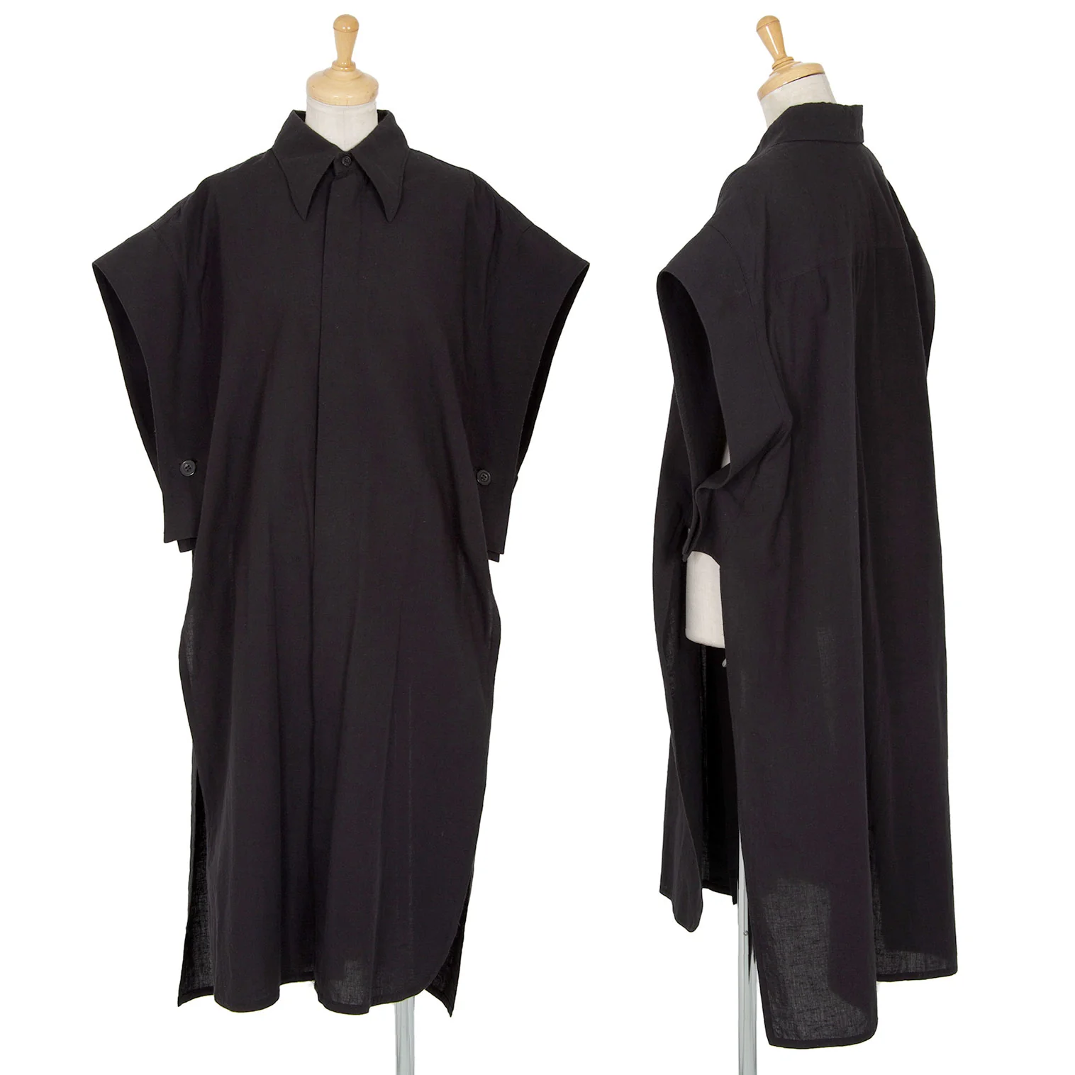 タケシコウサカバイ ワイズ ピンクレーベルTAKESHI KOSAKA by Y's Pink Label 袖ワイドデザインスリットロングノースリーブワンピース 黒2