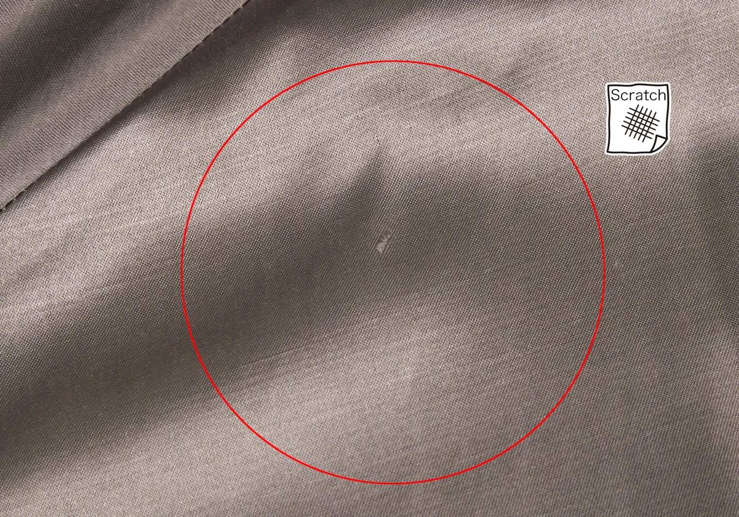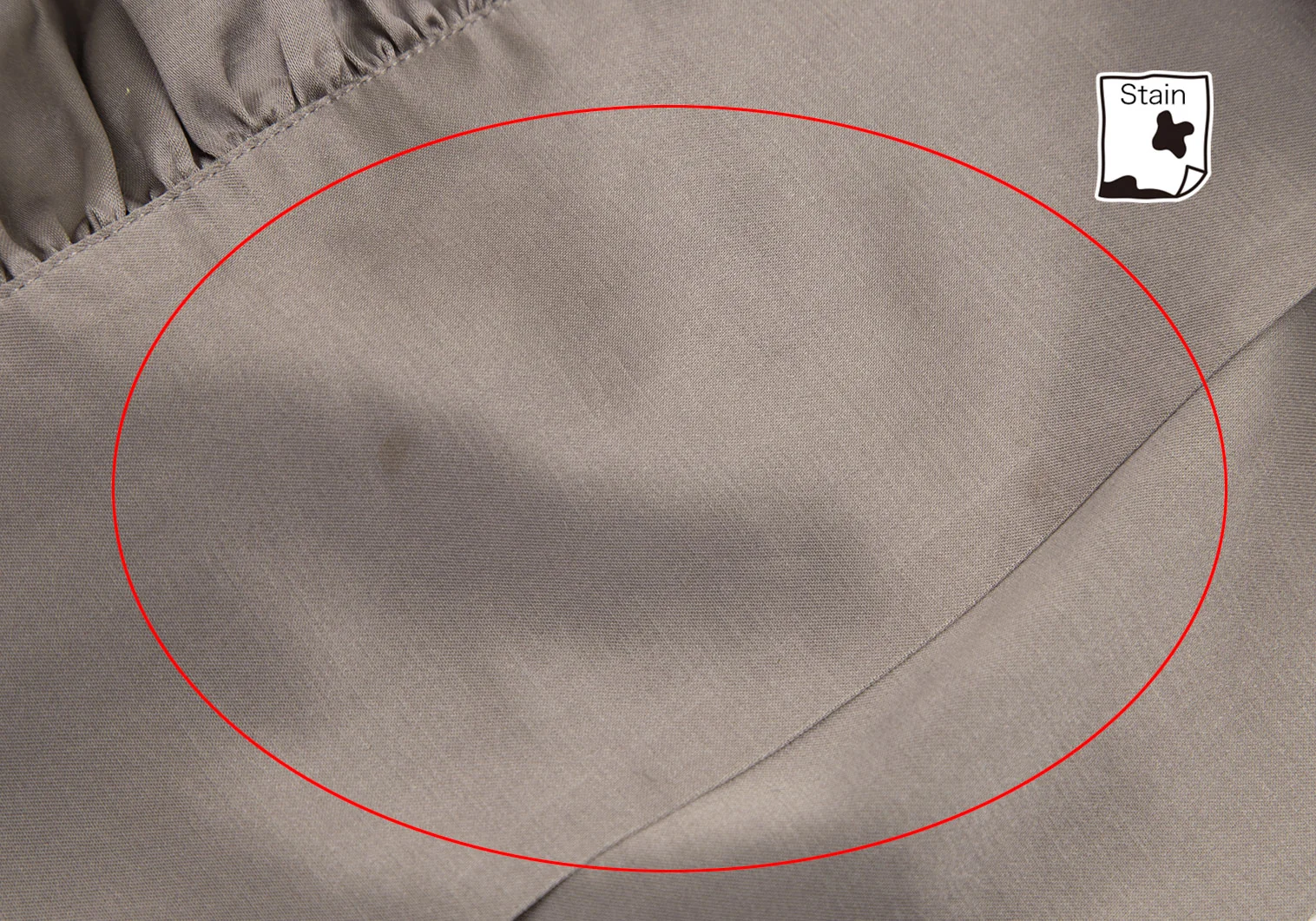 前裾にシミ、後ろ左肩に引っ掛け・裾に点シミがあります(写真参照)。その他に目立ったシミ、汚れ、ほつれ等はありません。クリーニング済み