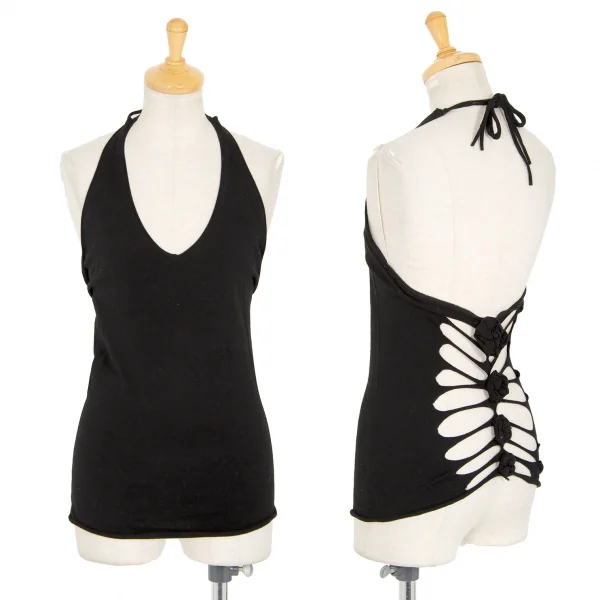 ジャンポールゴルチエファムJean Paul GAULTIER FEMME バックデザインストレッチホルターネックトップス 黒40