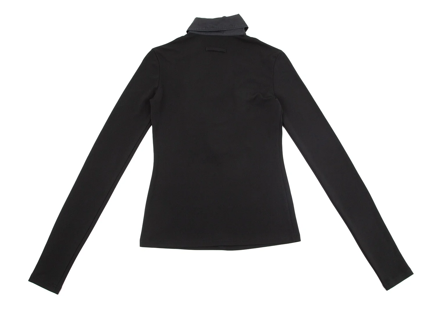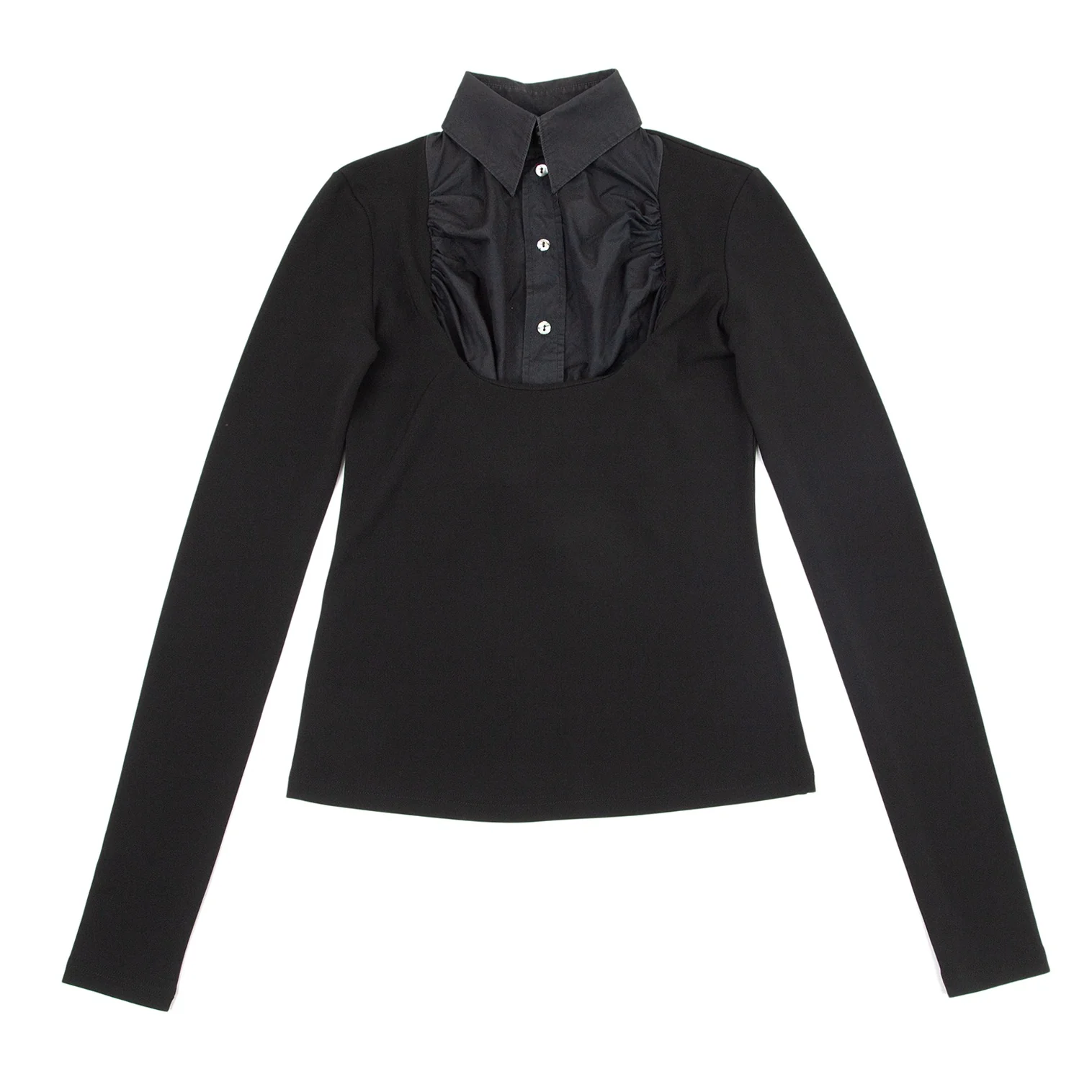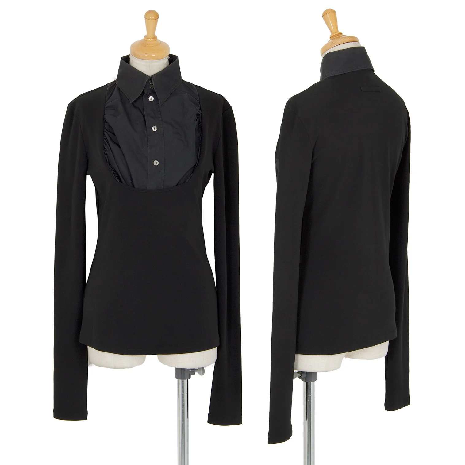 ジャンポールゴルチエファムJean Paul GAULTIER FEMME フロントギャザーフェイクレイヤードプルオーバートップス 黒40