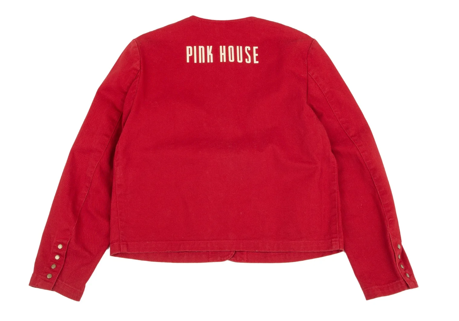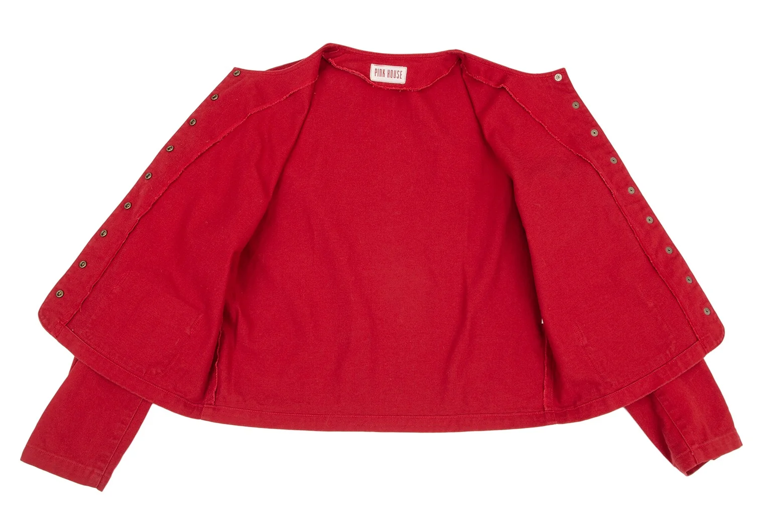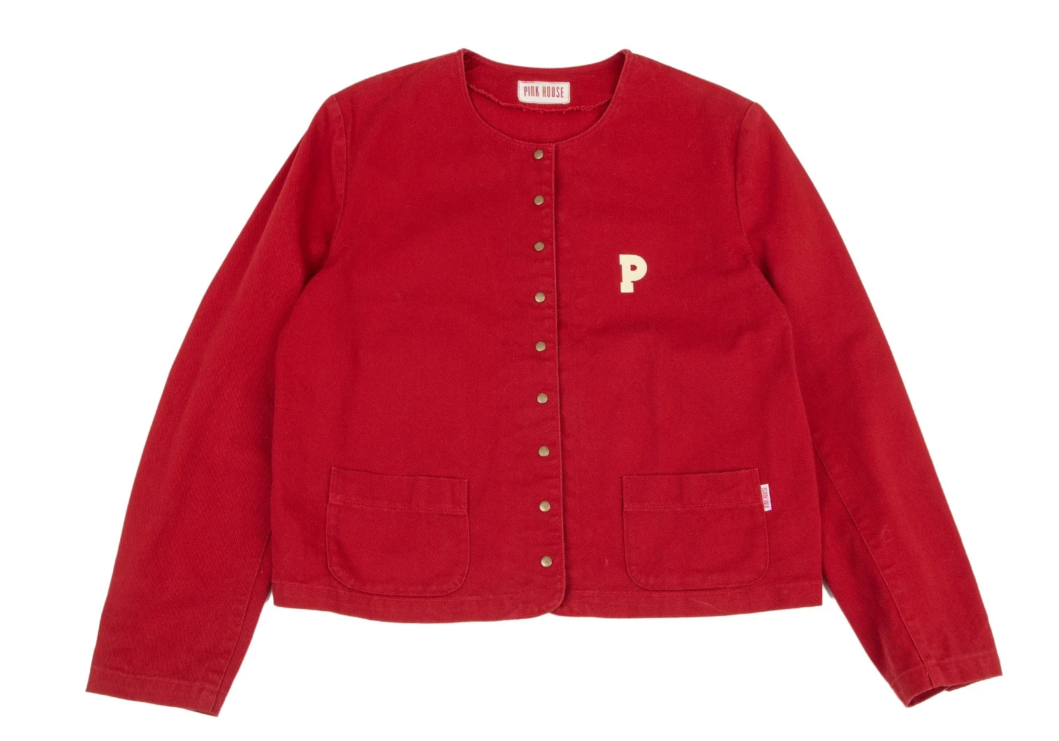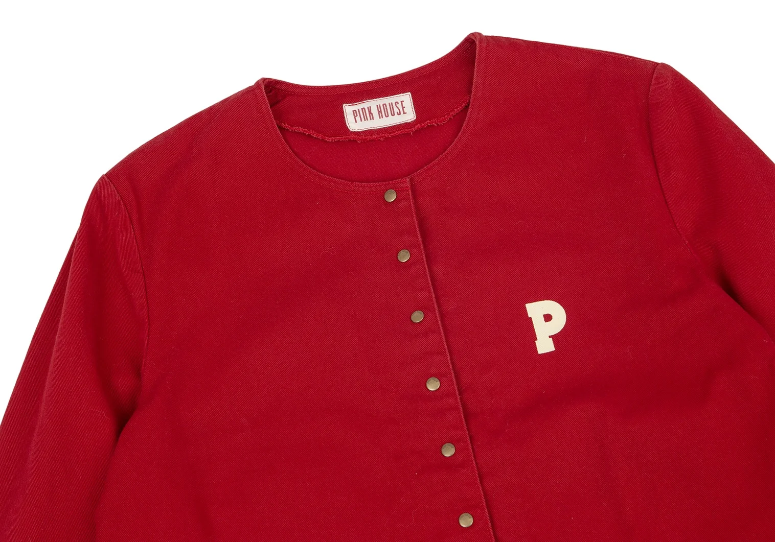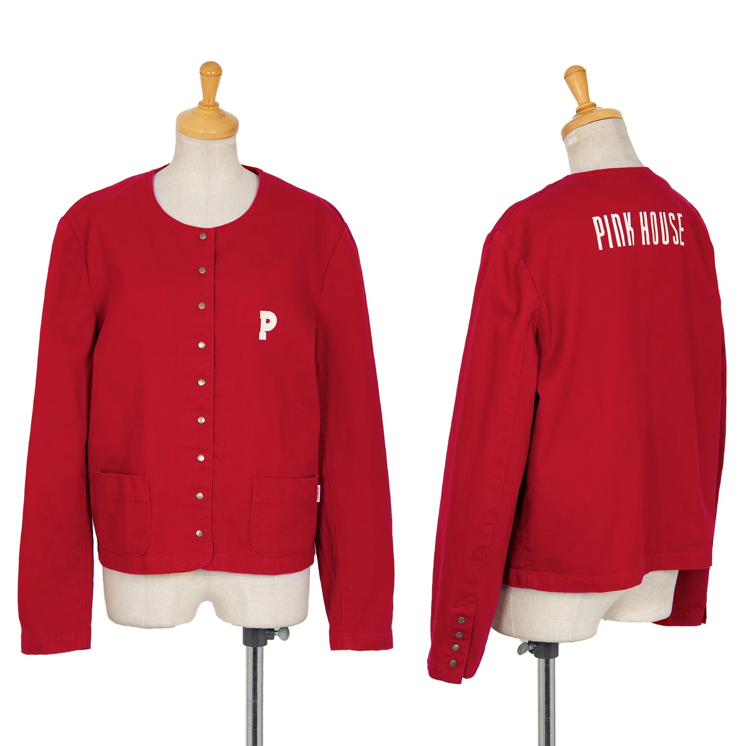 ピンクハウスPINK HOUSE ロゴプリントノーカラージャケット 赤L