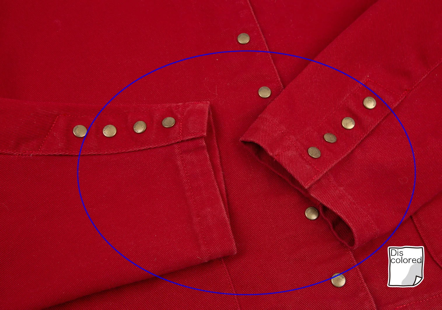 首周り・袖先・袖裏に色褪せがあります(画像参照)。その他目立ったシミ、汚れ、ほつれ等なくいい状態です。クリーニング済み