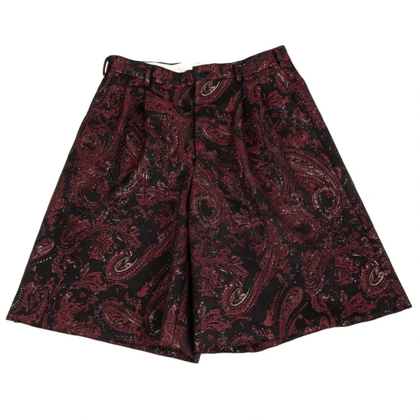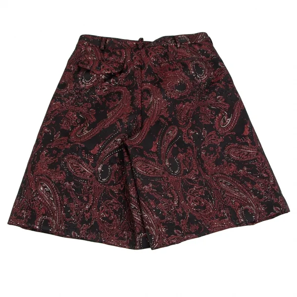 コムデギャルソン オムプリュスCOMME des GARCONS HOMME PLUS グリッターペイズリージャガードワイドショートパンツ 黒赤L