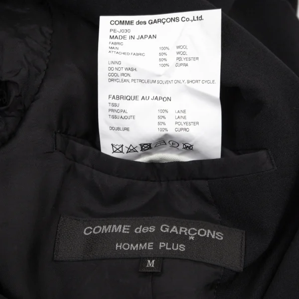 コムデギャルソン オムプリュスCOMME des GARCONS HOMME PLUS ウールボリュームドッキングスリーブ燕尾ジャケット 黒M