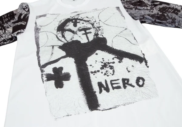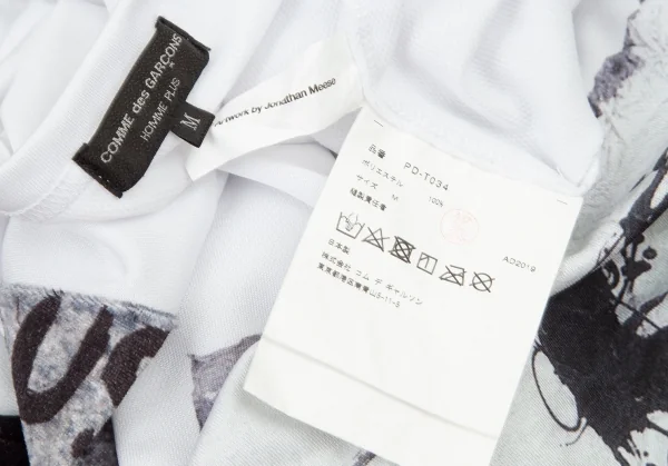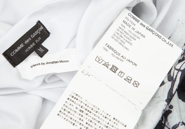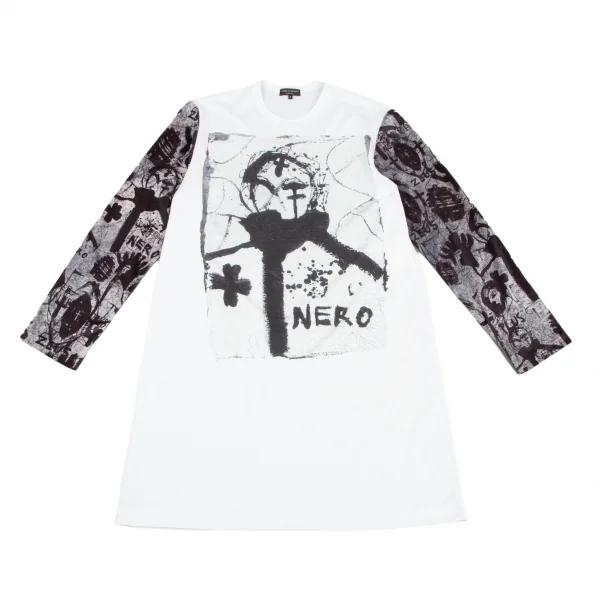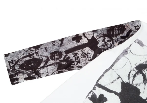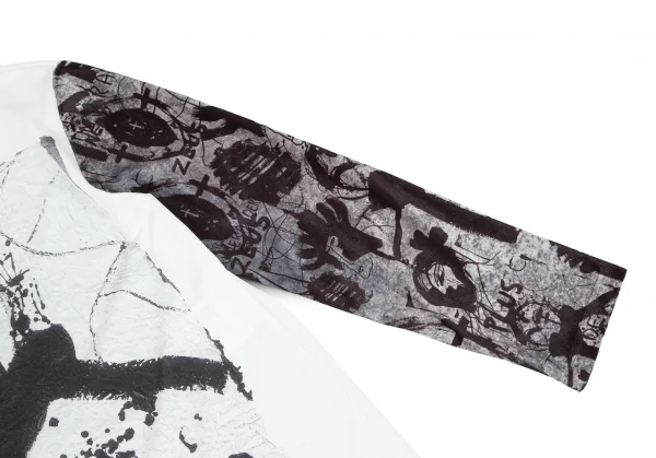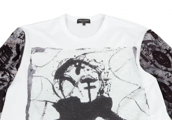 コムデギャルソン オムプリュス ジョナサン ミーズCOMME des GARCONS HOMME PLUS×Jonathan eese ポリアートプリントスリーブ切替ロング長袖Tシャツ 白グレーM