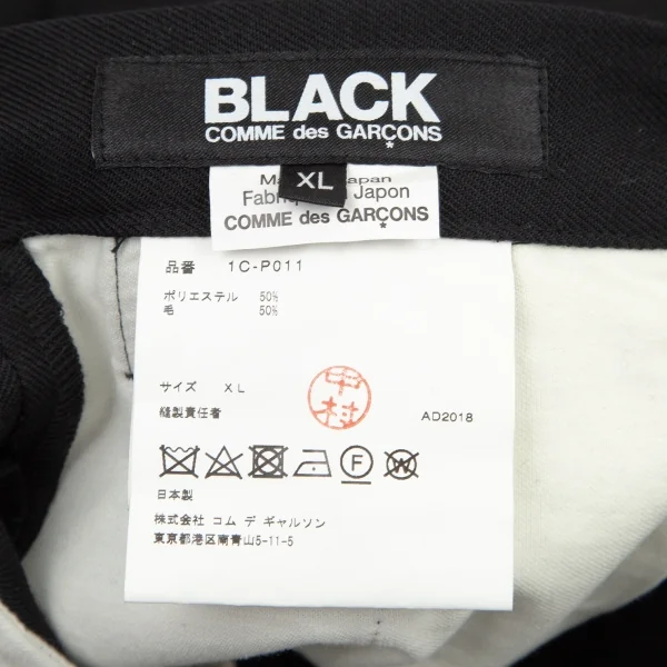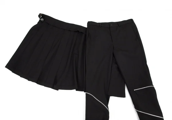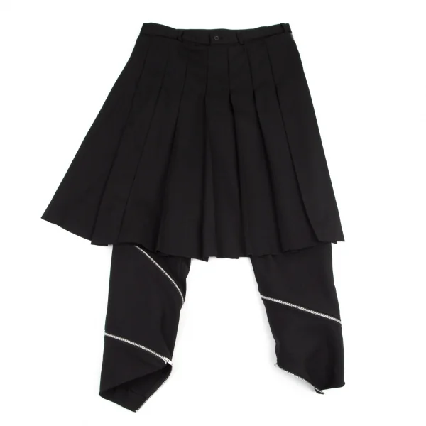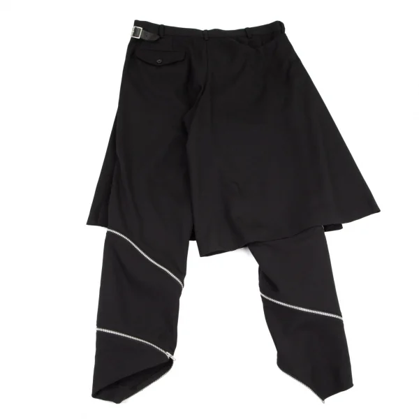 ブラックコムデギャルソンBLACK COMME des GARCONS ウールギャバジップデザインスカート付きパンツ 黒XL