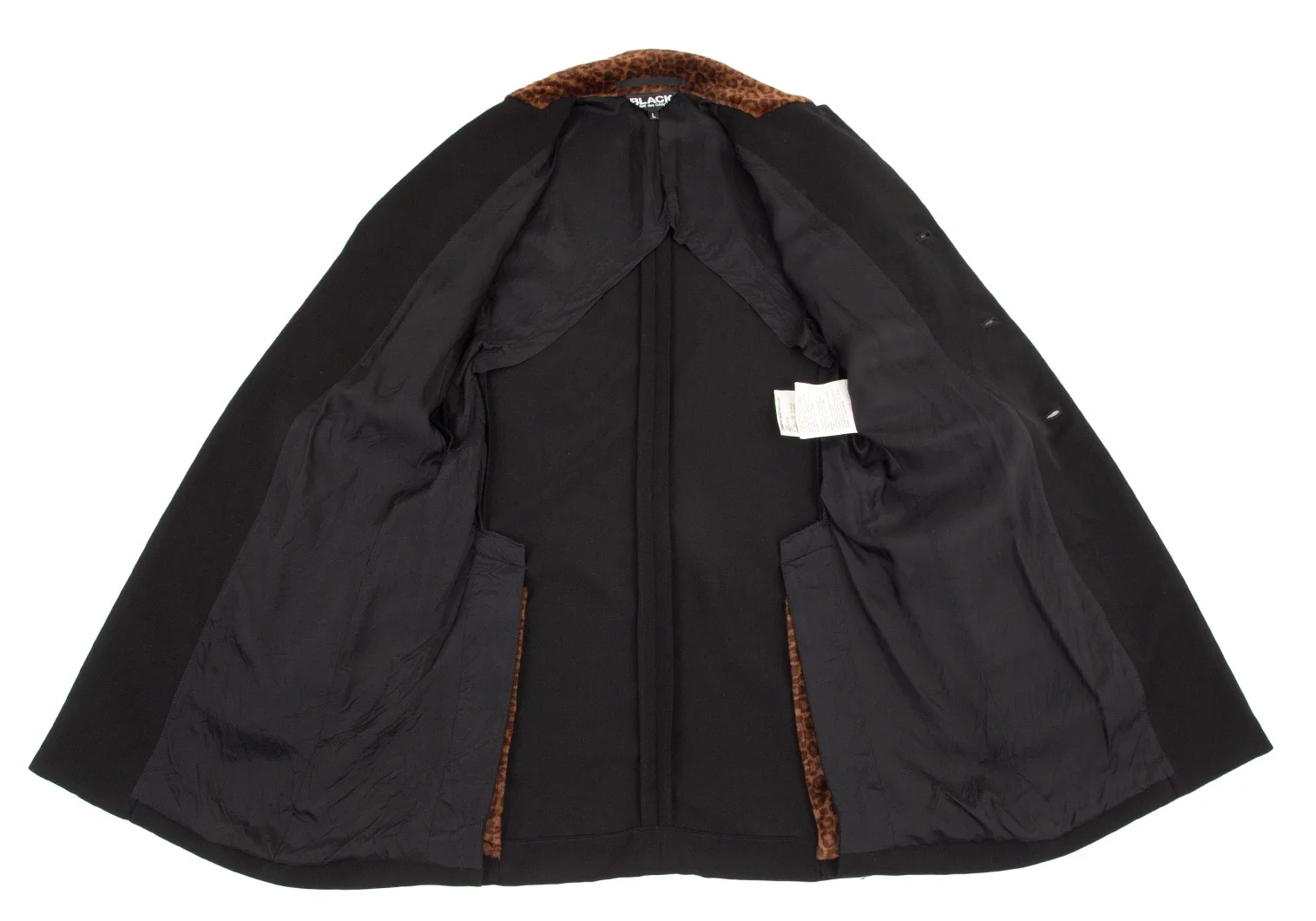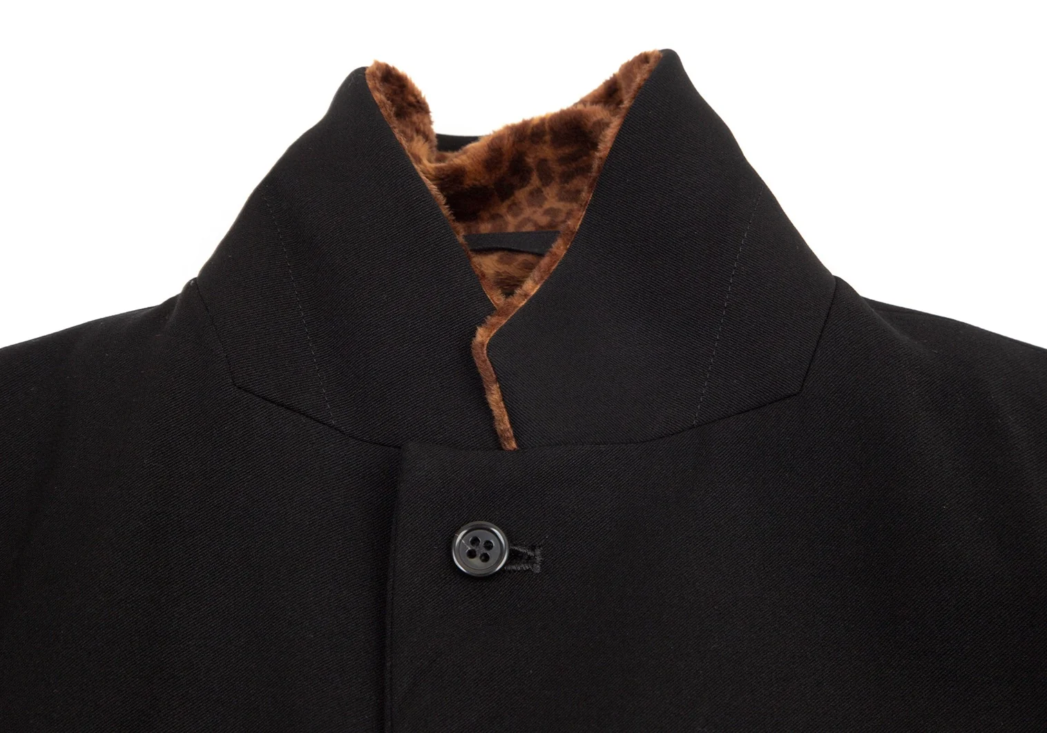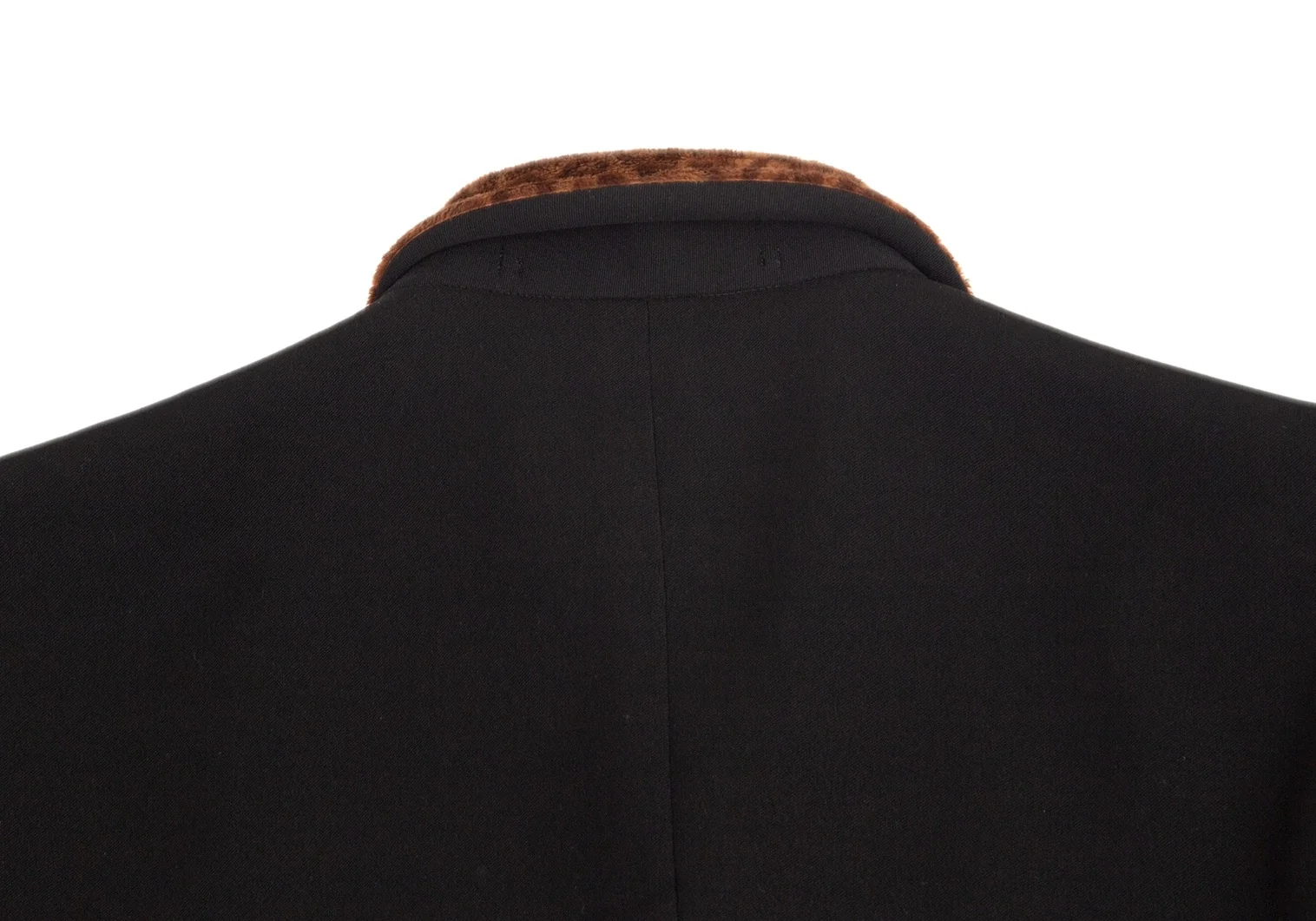 ブラックコムデギャルソンBLACK COMME des GARCONS レオパードフェイクファー切替エステルギャバジャケット 黒L