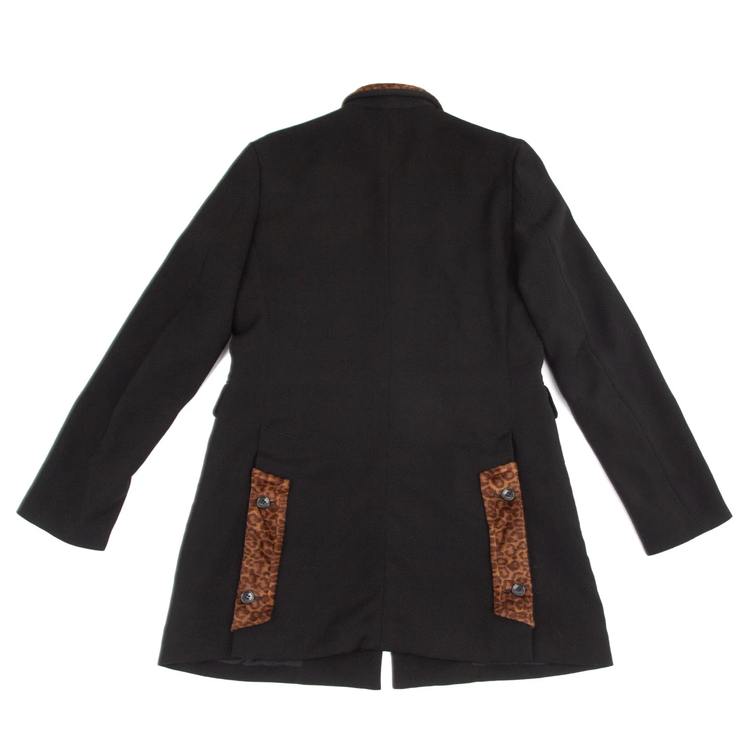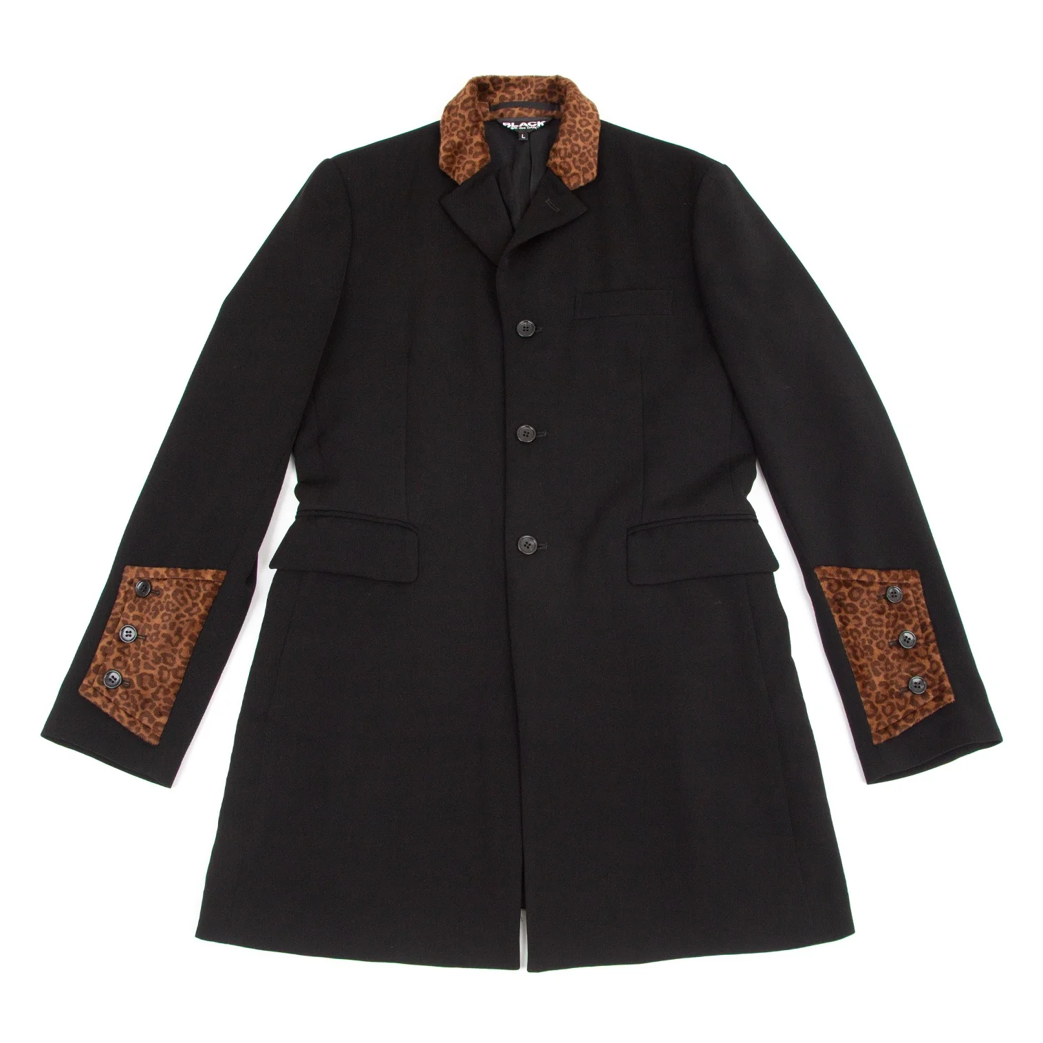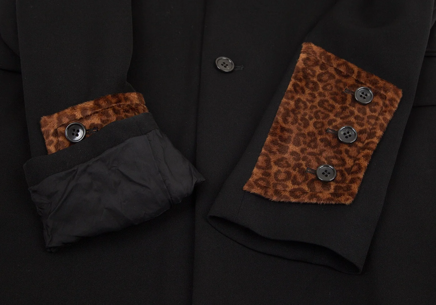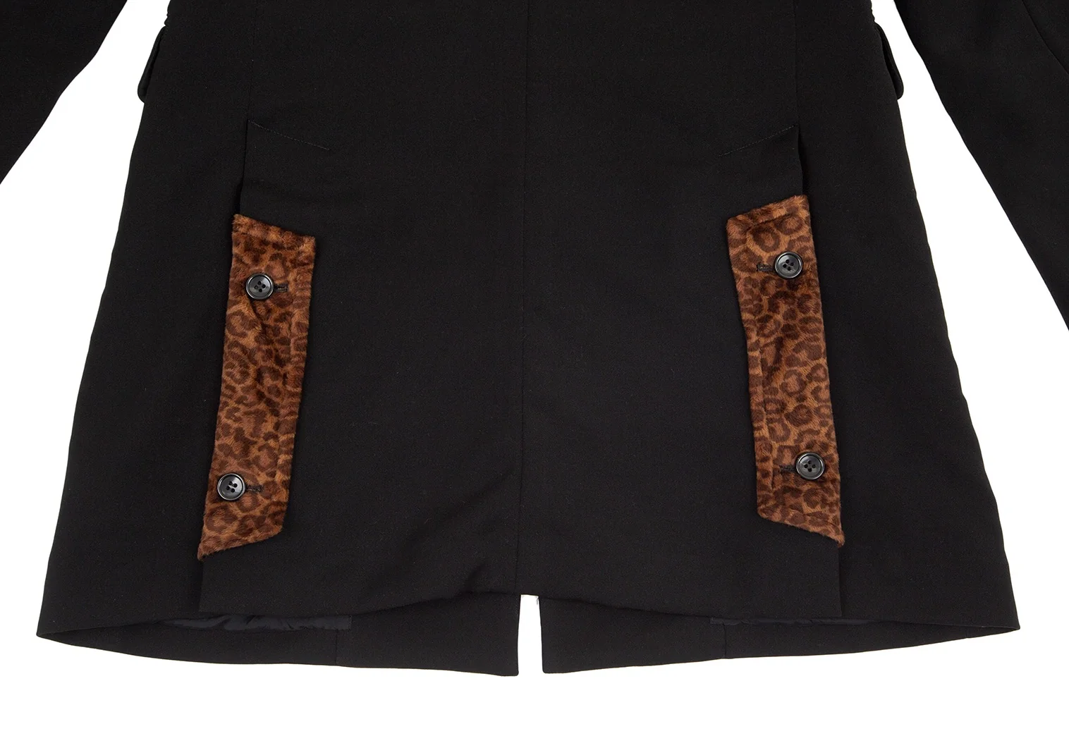 ブラックコムデギャルソンBLACK COMME des GARCONS レオパードフェイクファー切替エステルギャバジャケット 黒L
