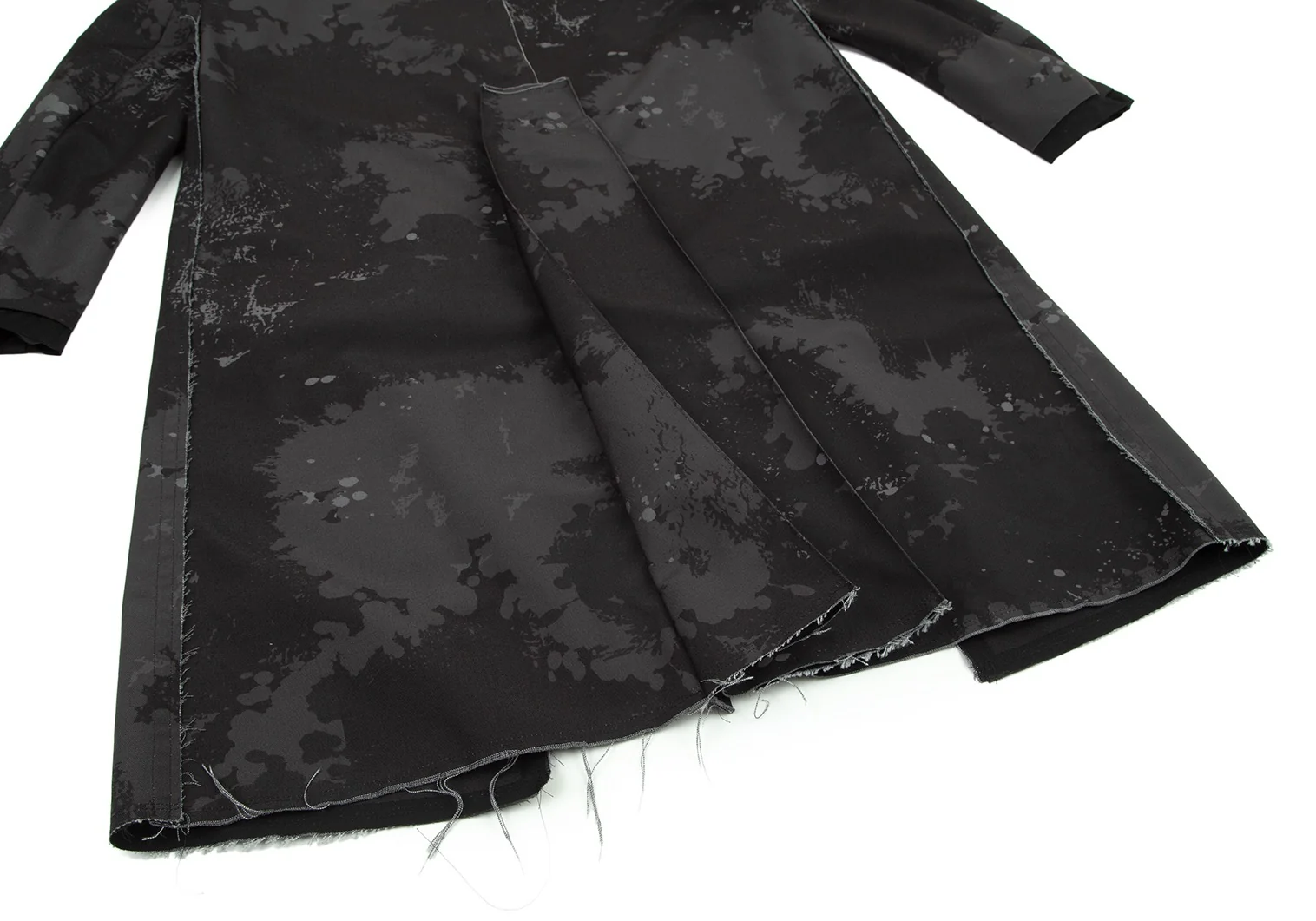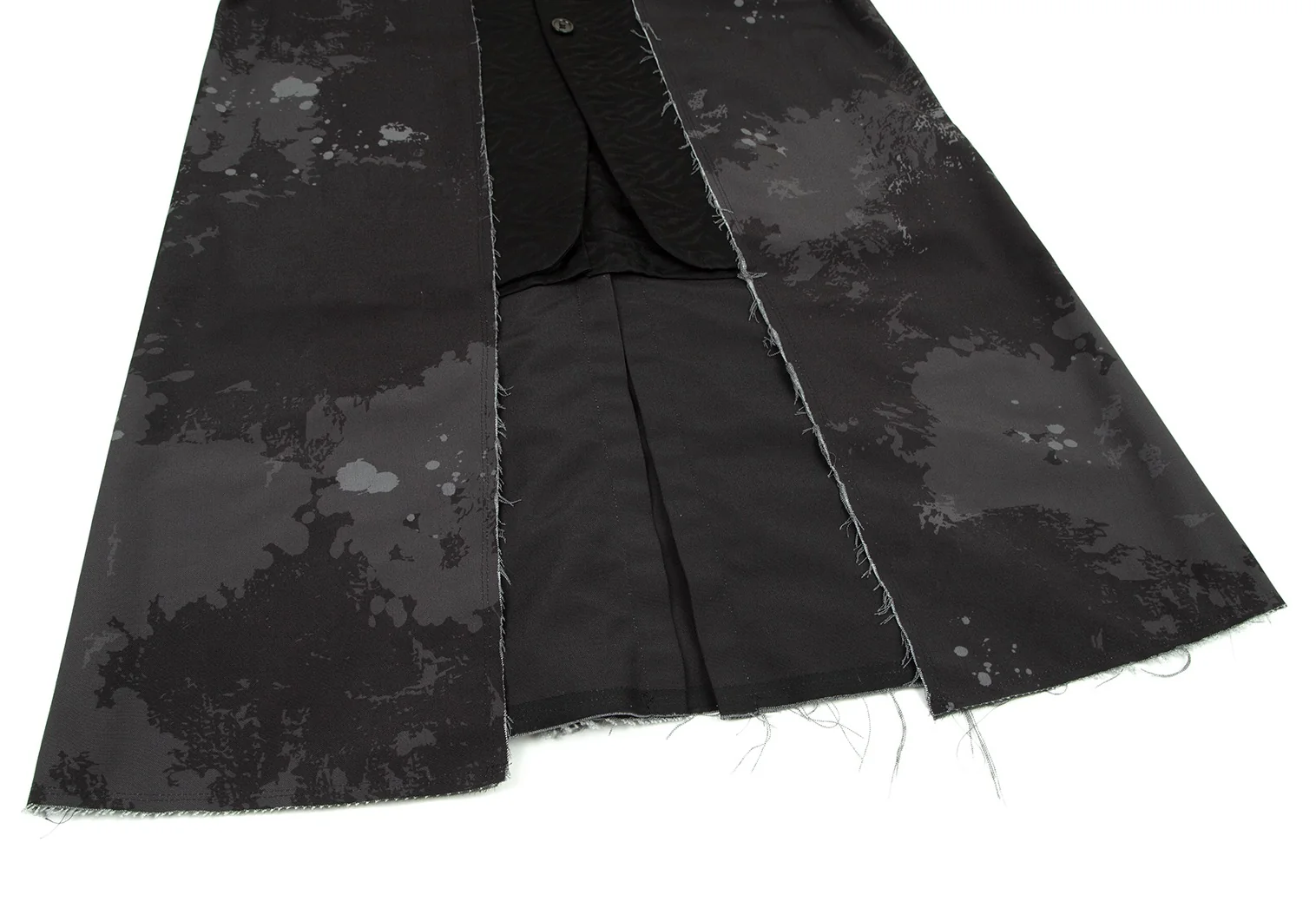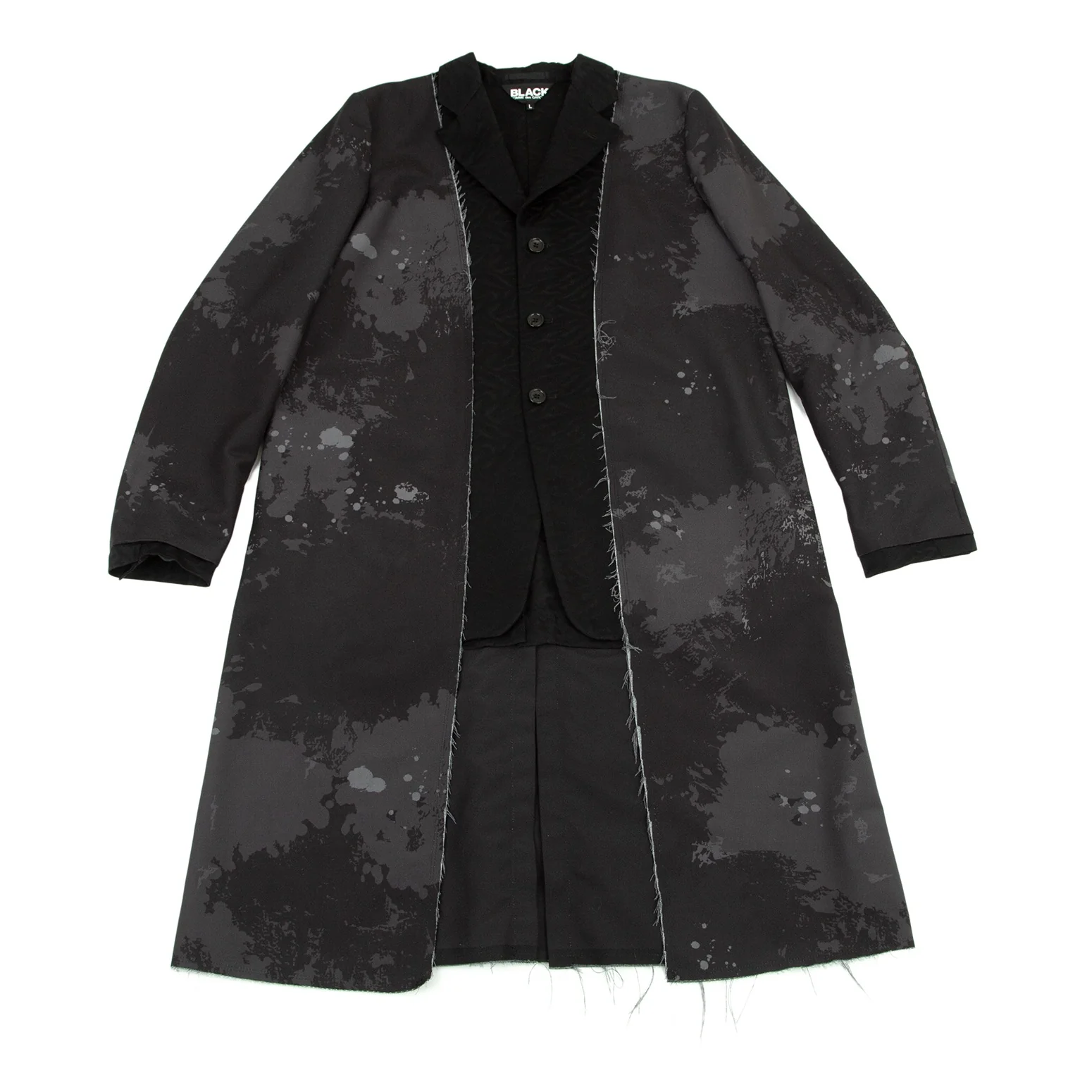 ブラックコムデギャルソンBLACK COMME des GARCONS インサイドアウトドッキンググラフィック裁ち切りリバーシブルロングコート 黒L