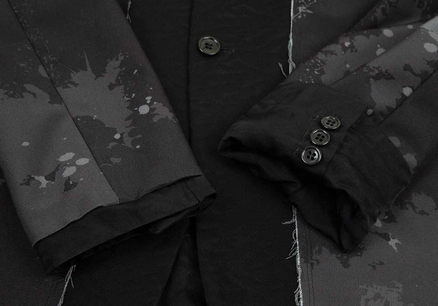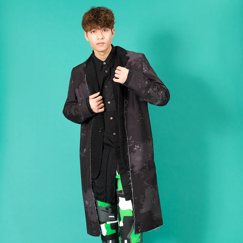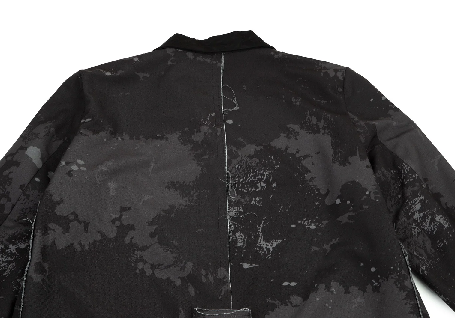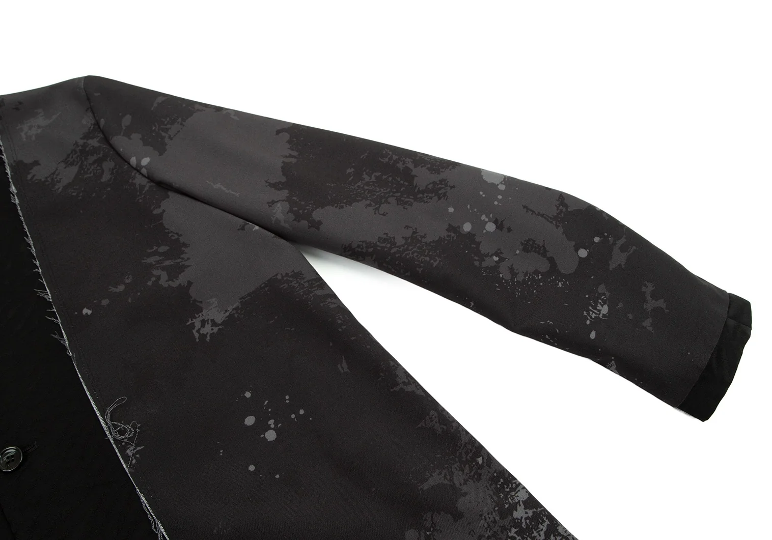ブラックコムデギャルソンBLACK COMME des GARCONS インサイドアウトドッキンググラフィック裁ち切りリバーシブルロングコート 黒L