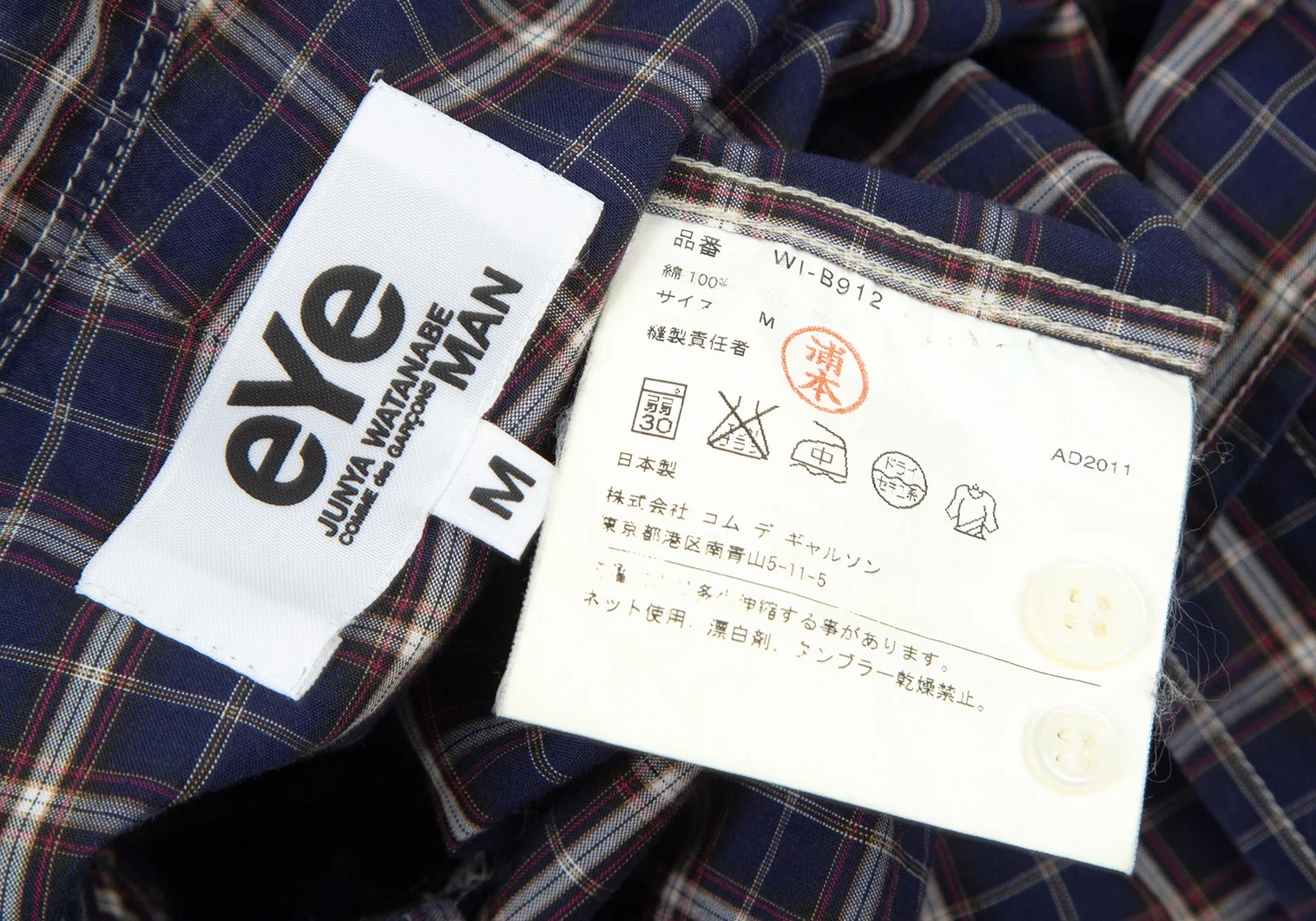 アイ ジュンヤワタナベ マン コムデギャルソン eYe JUNYA WATANABE MAN COMME des GARCONSマドラスチェックボタンダウン半袖シャツ 紺M
