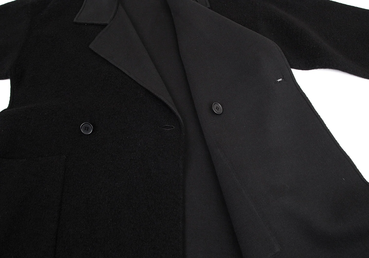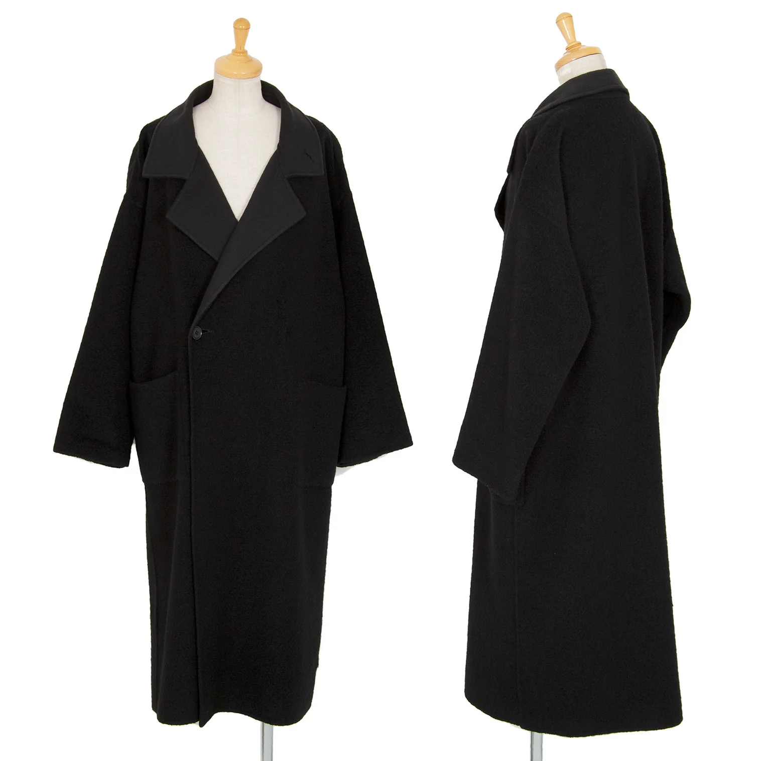 プランテーションPlantation ウール混スウェット生地切替ロングコート 黒M