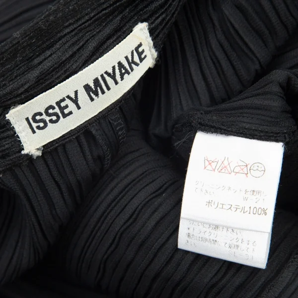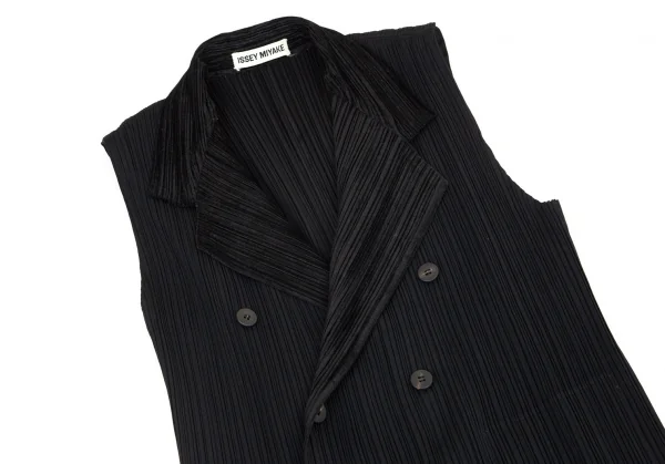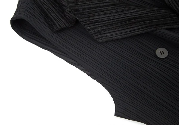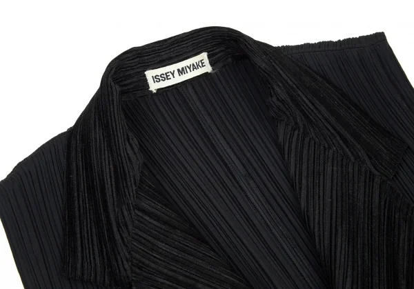 イッセイミヤケISSEY MIYAKE起毛ラペルノースリーブロングプリーツジャケット 黒M