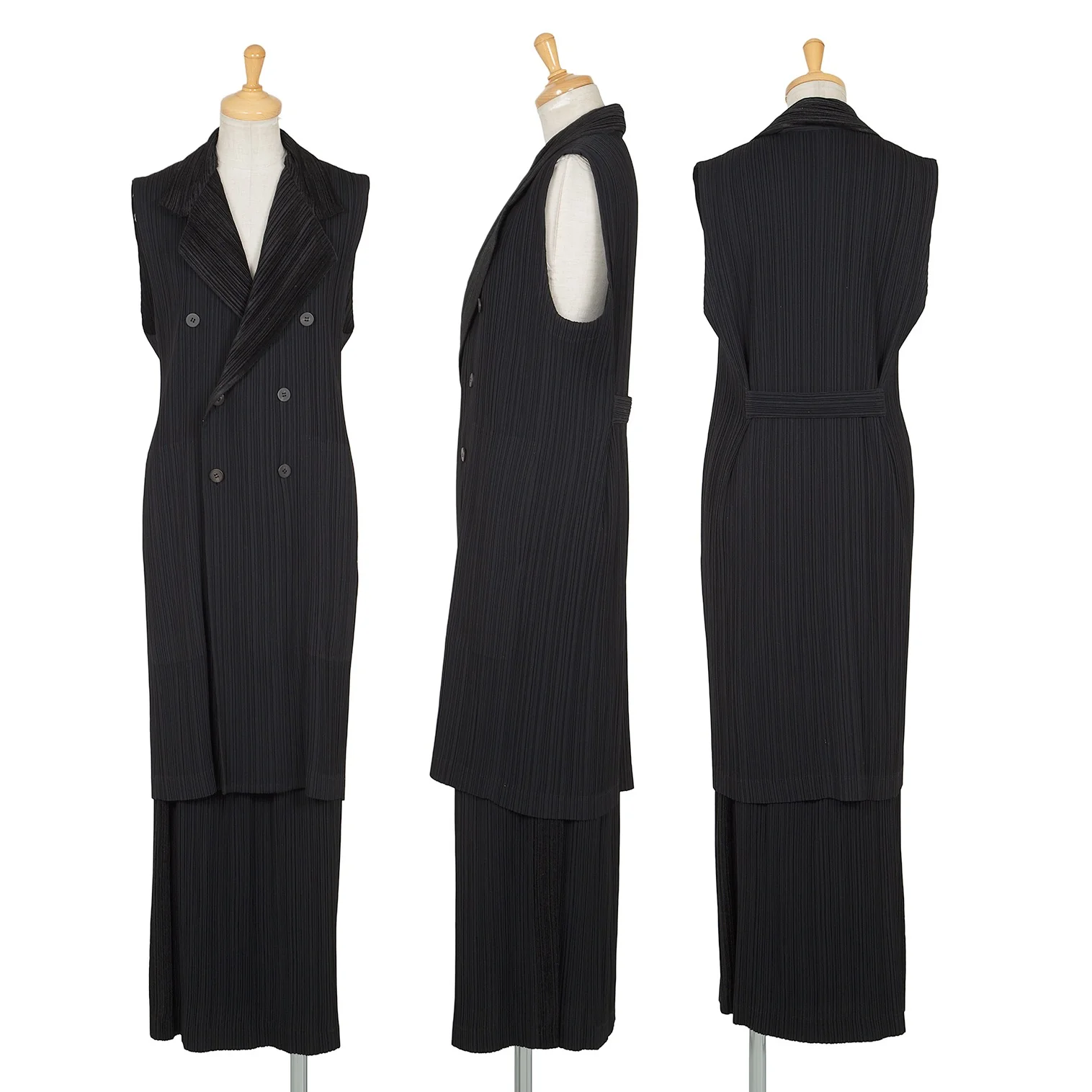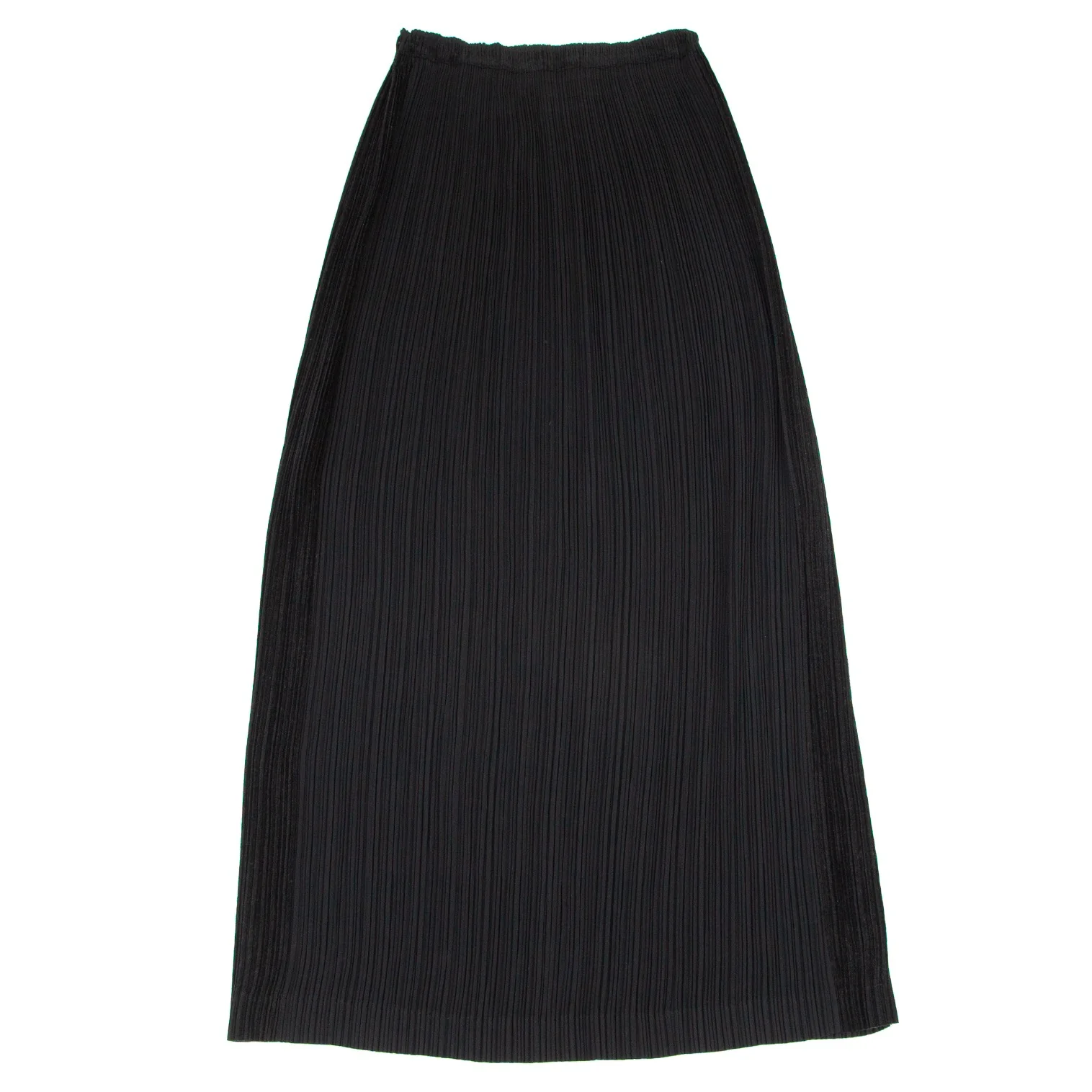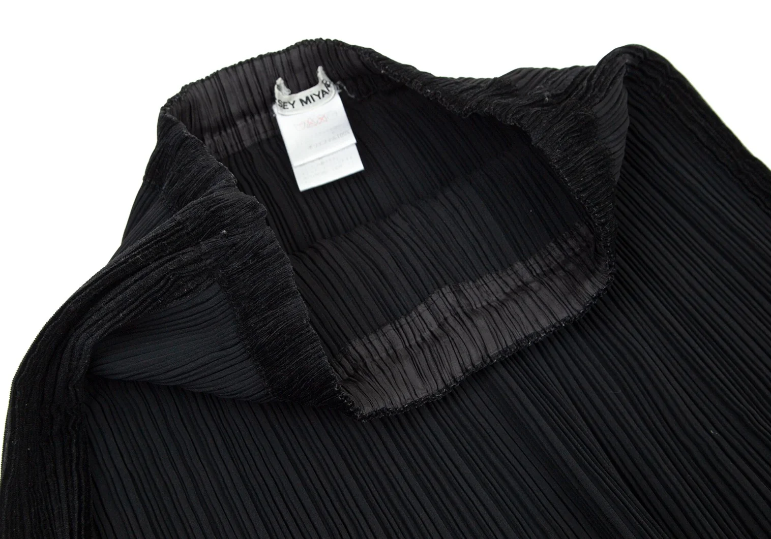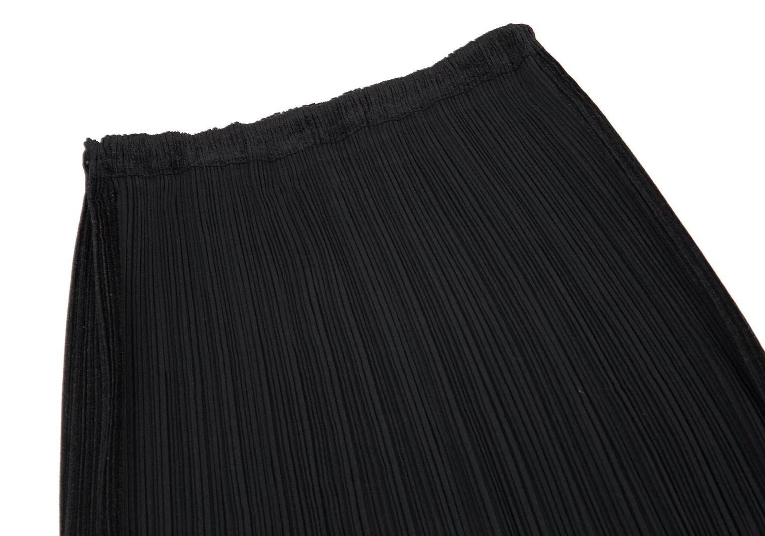 イッセイミヤケISSEY MIYAKE起毛切替ロングプリーツスカート 黒M