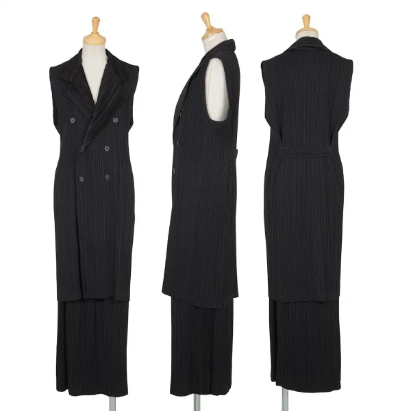 イッセイミヤケISSEY MIYAKE起毛切替プリーツセットアップスーツ 黒M