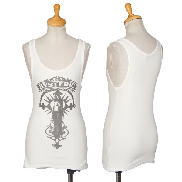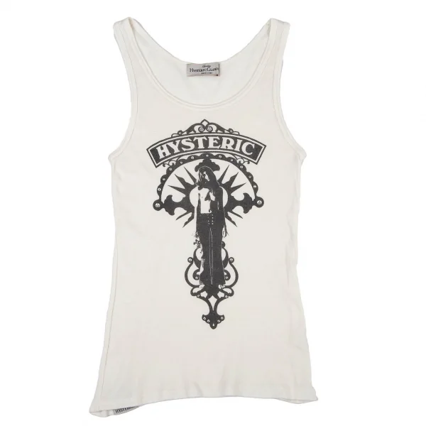 ヒステリックグラマーHYSTERIC GLAMOUR ビジュー装飾ガールプリントタンクトップ 白FREE
