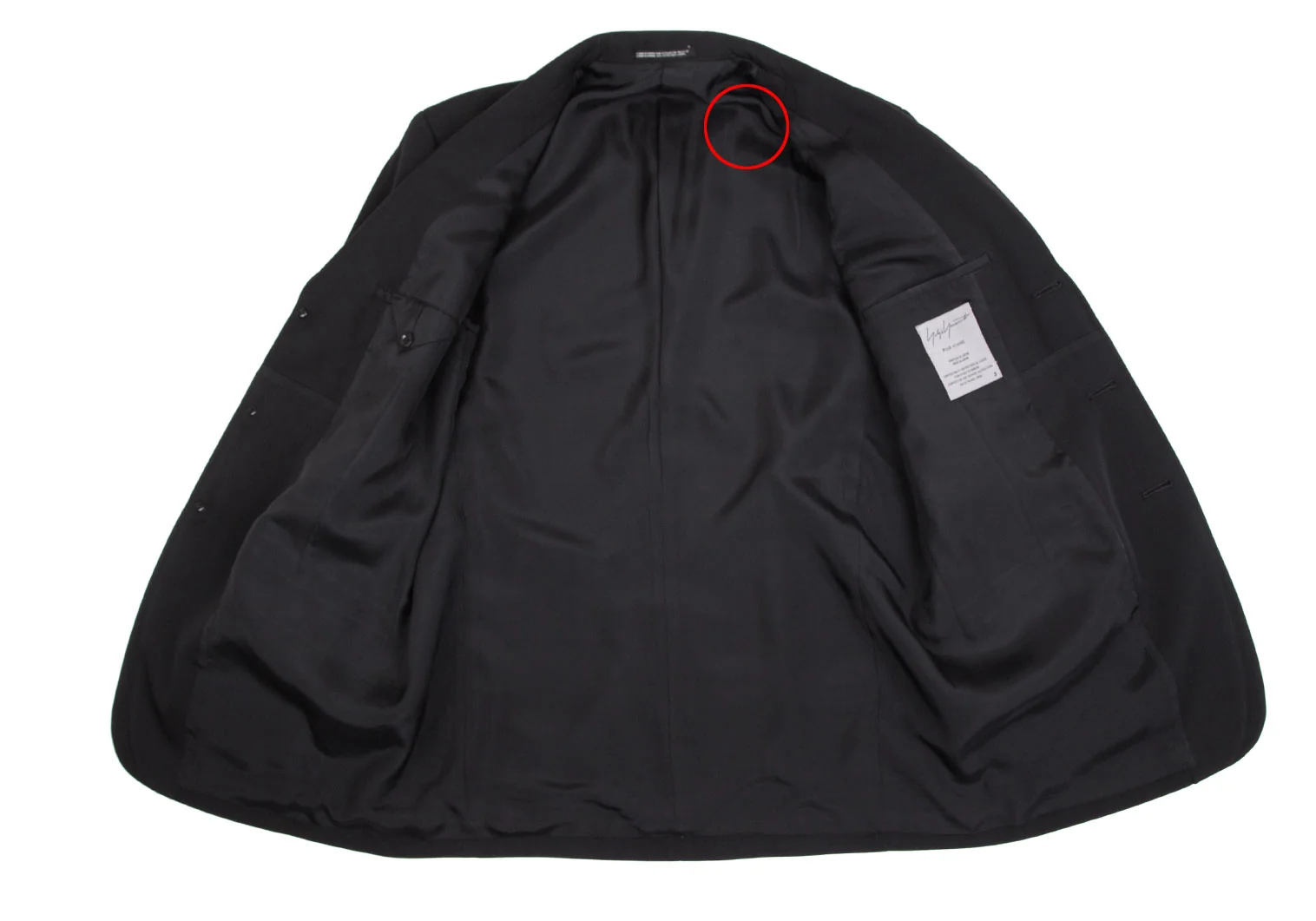 肩パッドあり。袖裏に擦れ、裏地に引っ掛けがあります(写真参照)。その他に目立ったシミ、汚れ、ほつれ等なくいい状態です。クリーニング済み