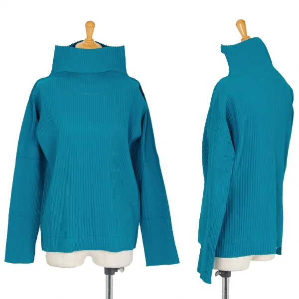 イッセイミヤケ ミーISSEY MIYAKE me プリーツハイネックカットソー ターコイズM位