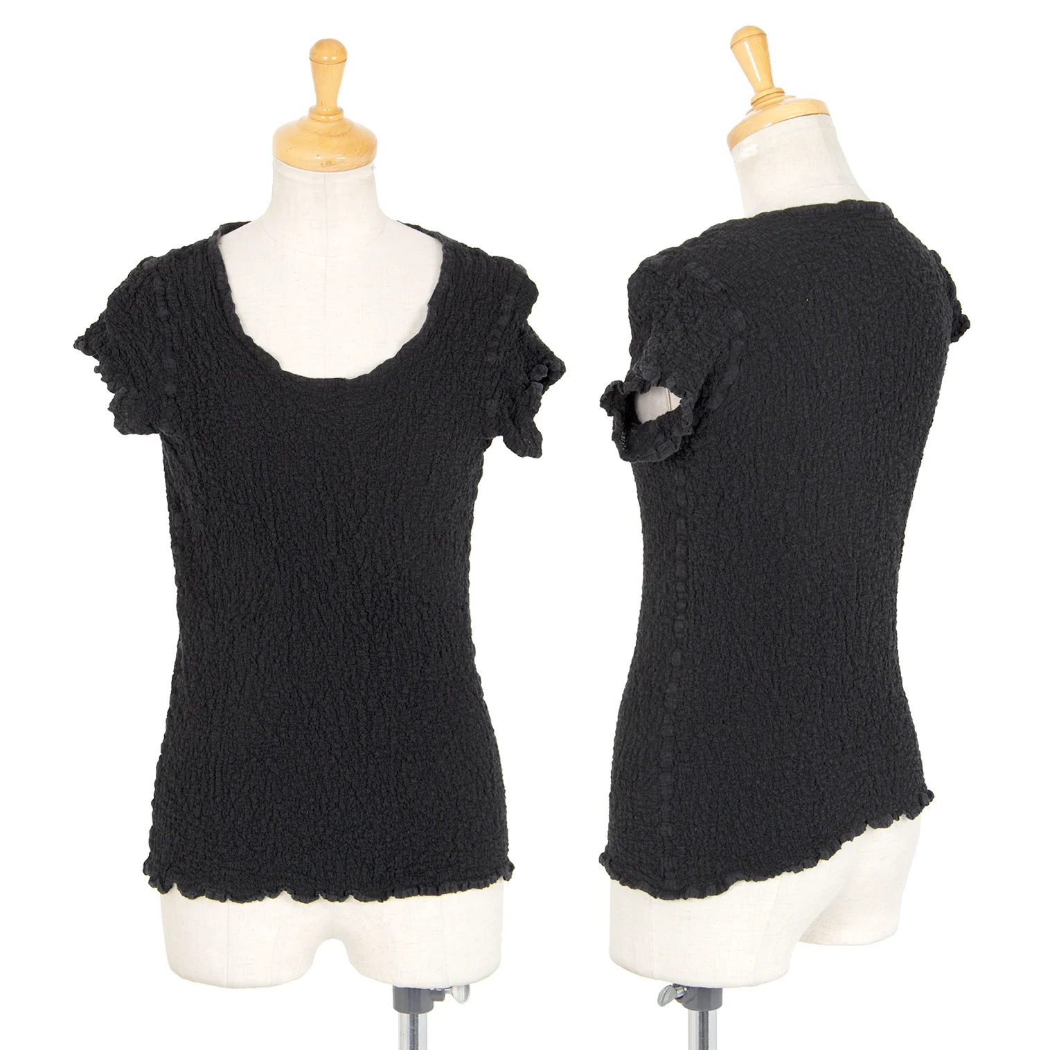 イッセイミヤケ ミーISSEY MIYAKE me カリフラワーフレンチスリーブトップス 黒M位