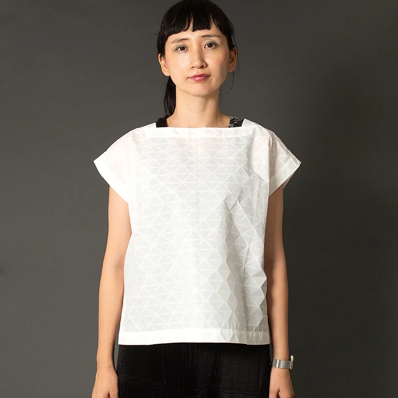 イッセイミヤケISSEY MIYAKE トライアングルピースプリントトップス 白2