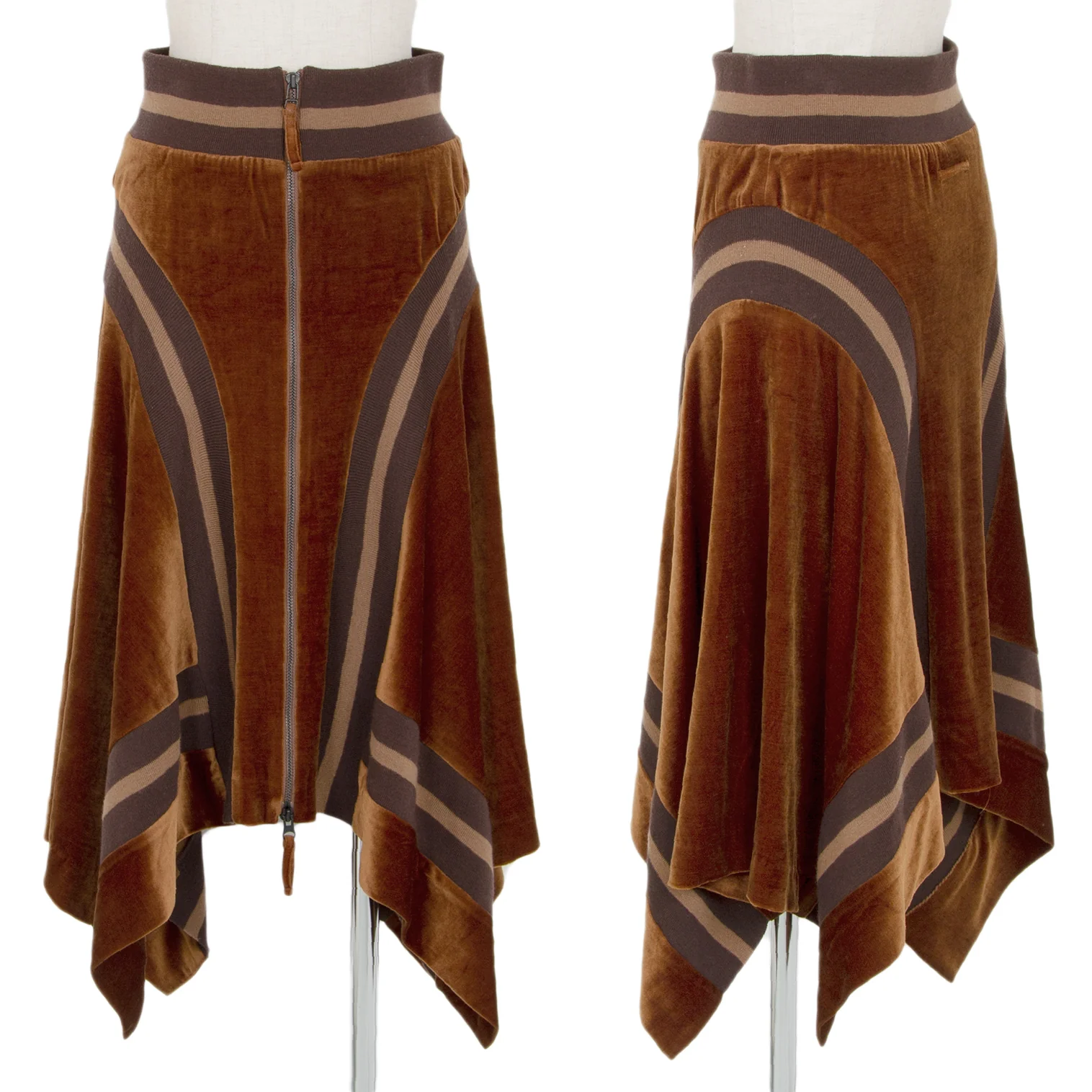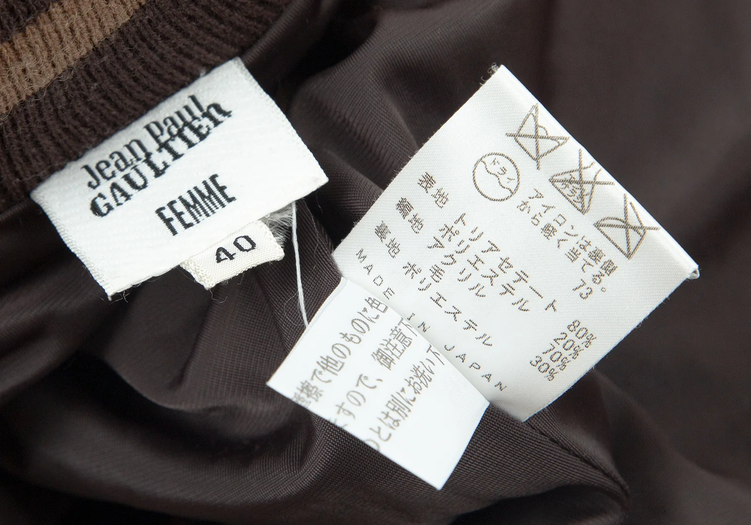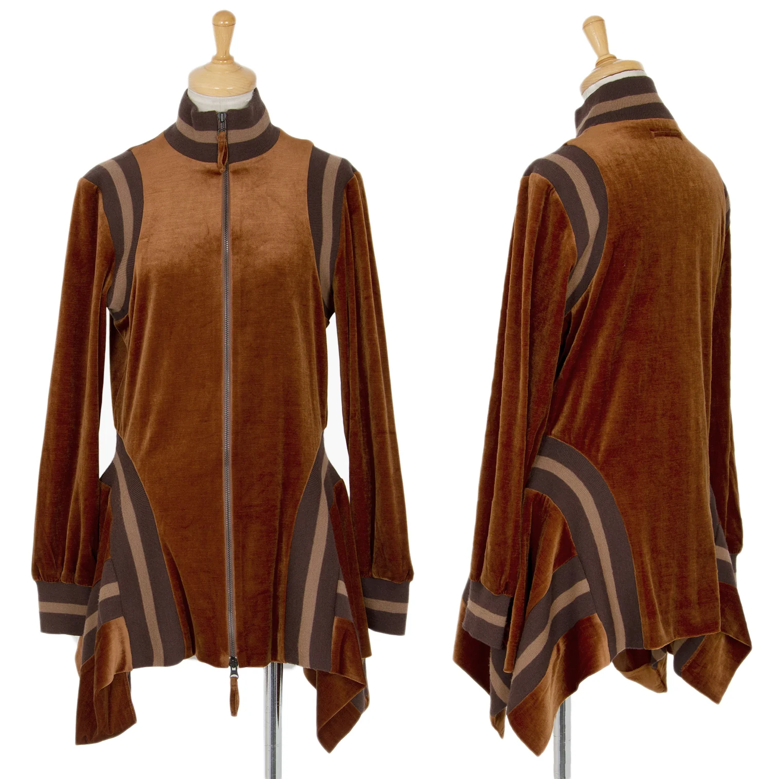 ジャンポールゴルチエ ファムJean Paul GAULTIER FEMME リブ切替変形ベロアセットアップ 茶40