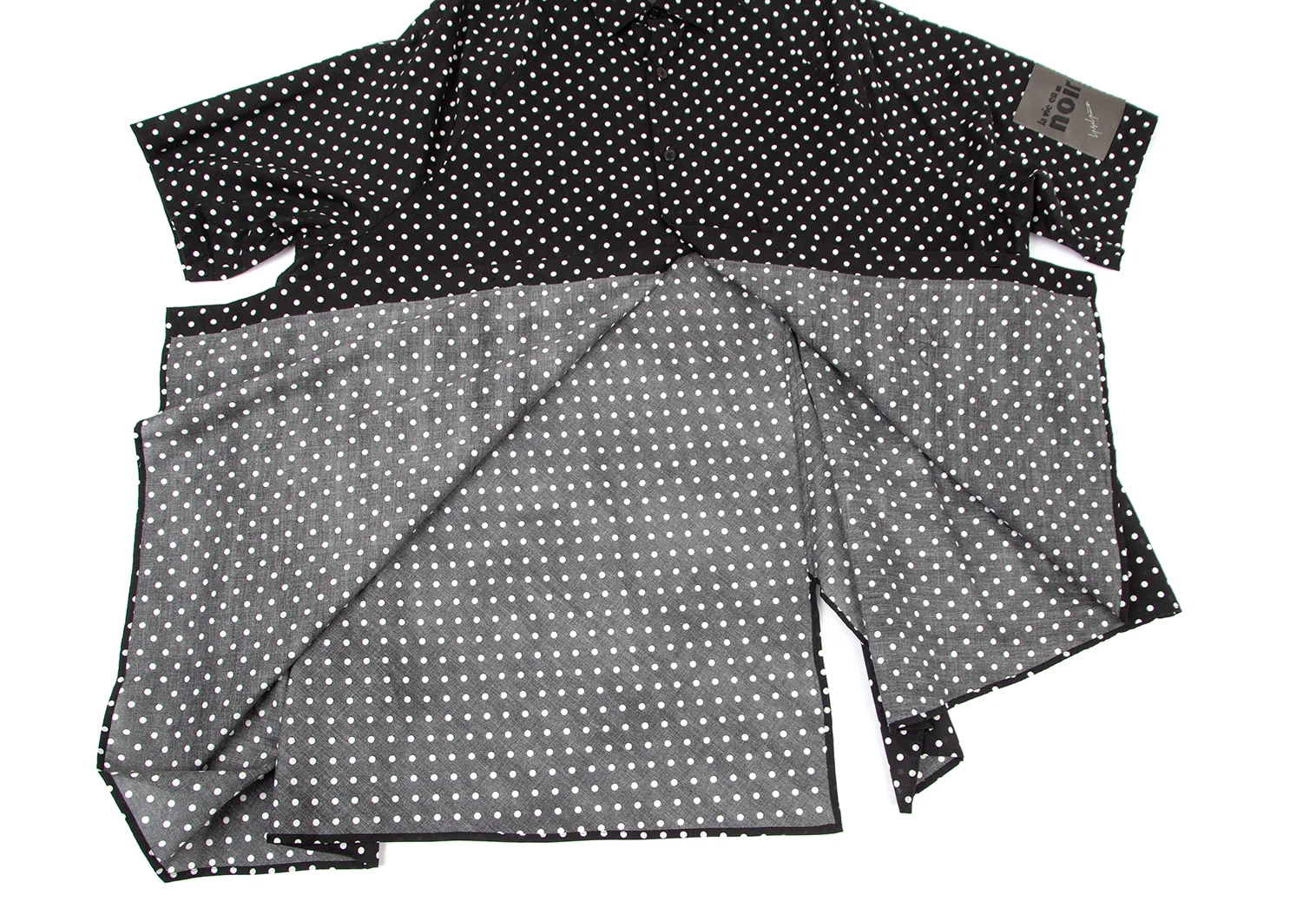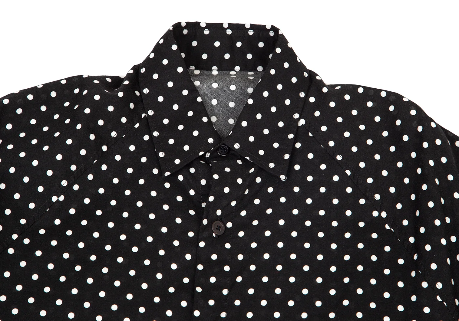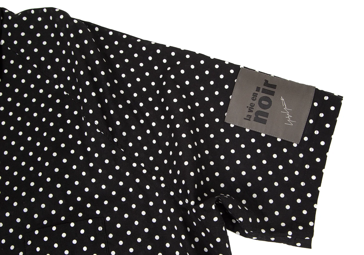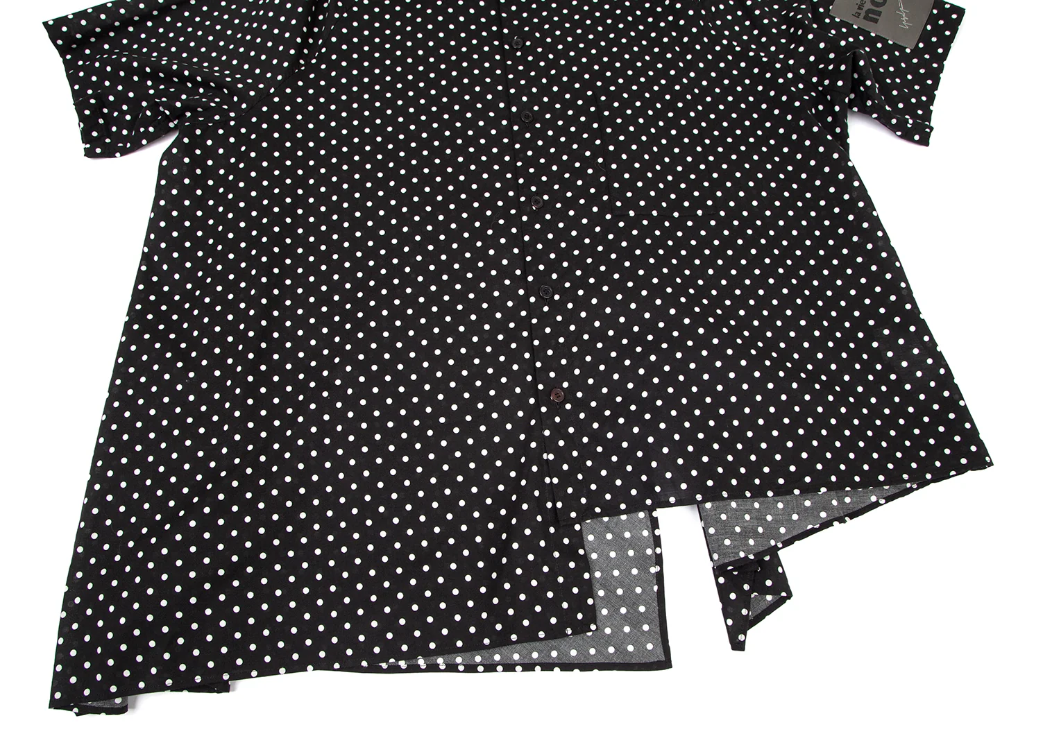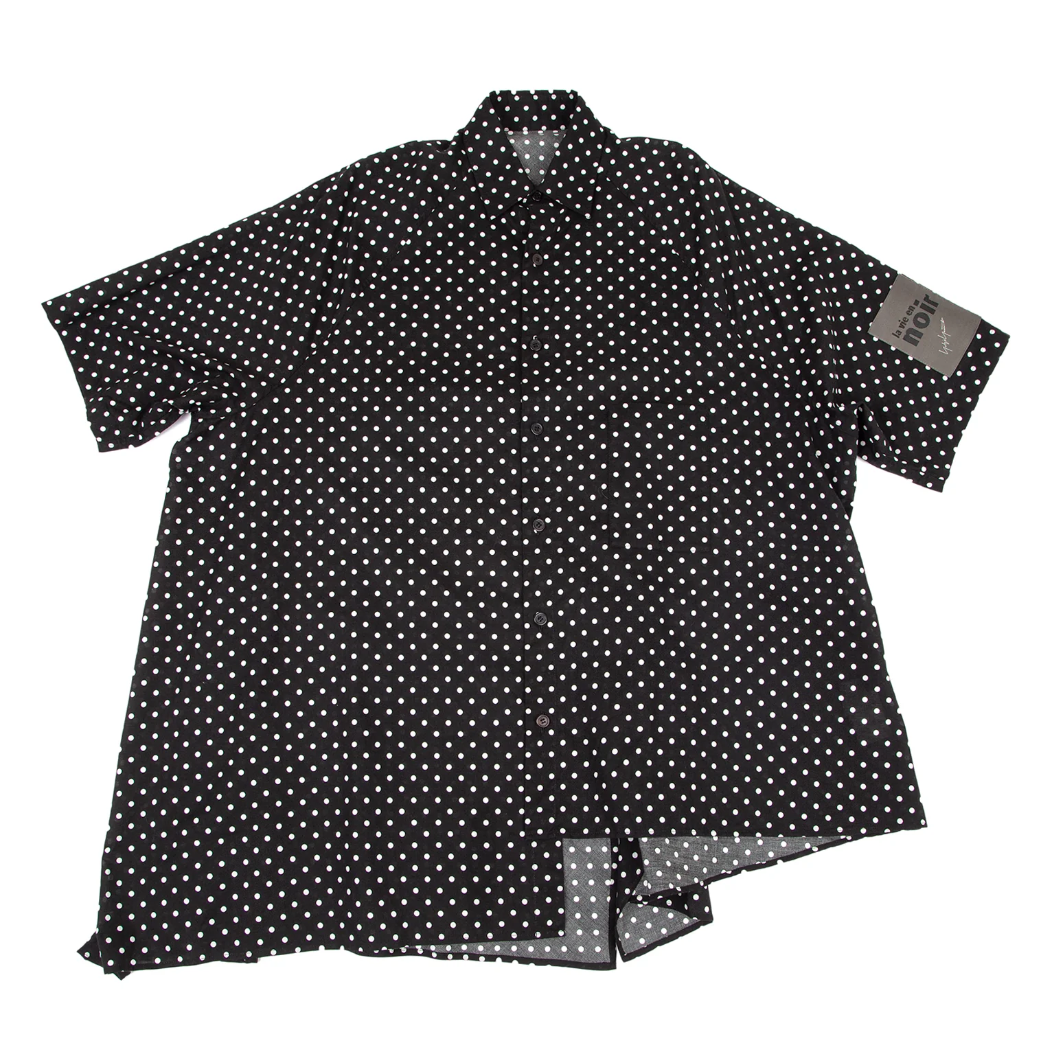 ヨウジヤマモト ノアールYohji Yamamoto NOIR コットン袖パッチアシンメトリービッグシルエットドット半袖シャツ 黒1