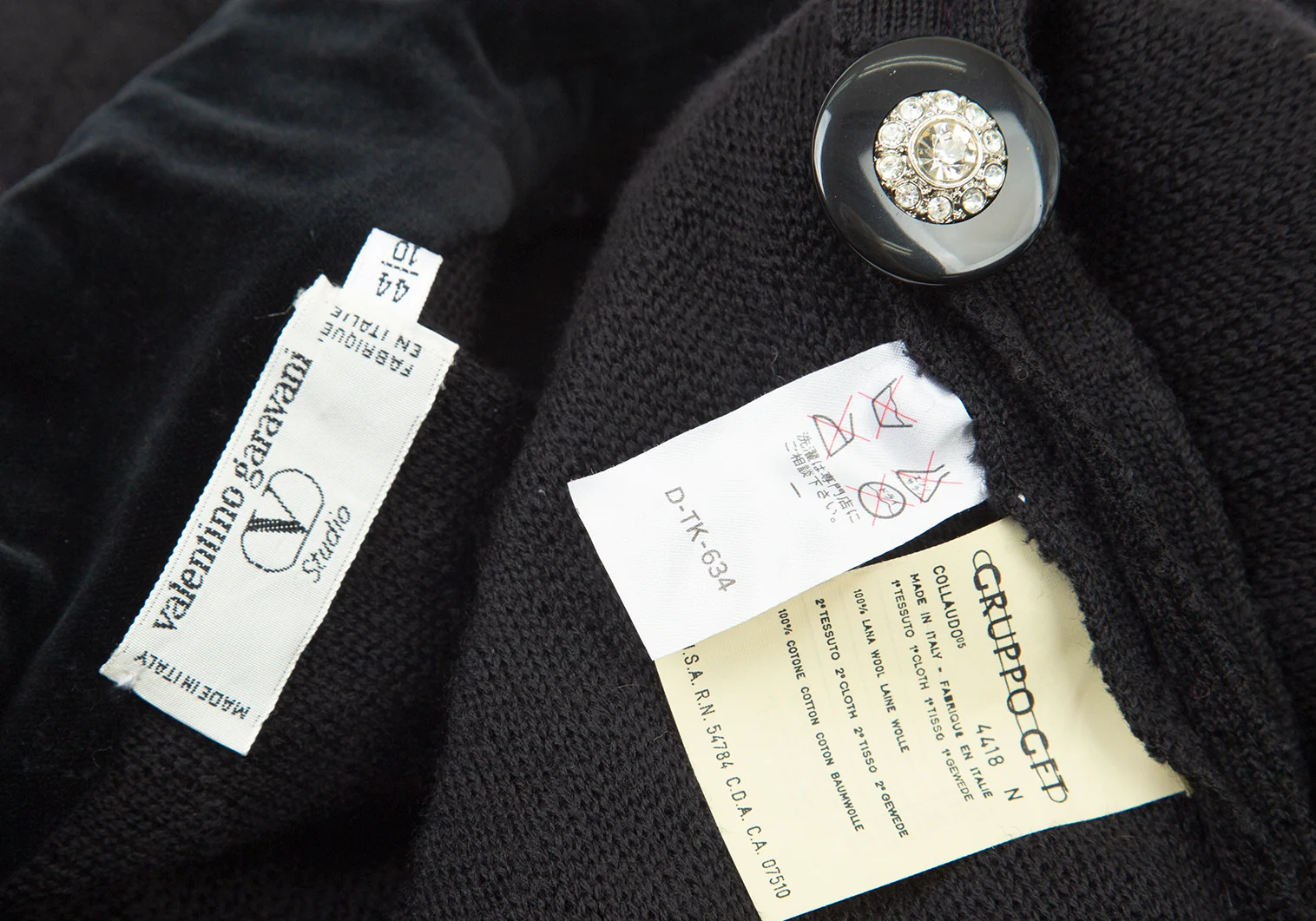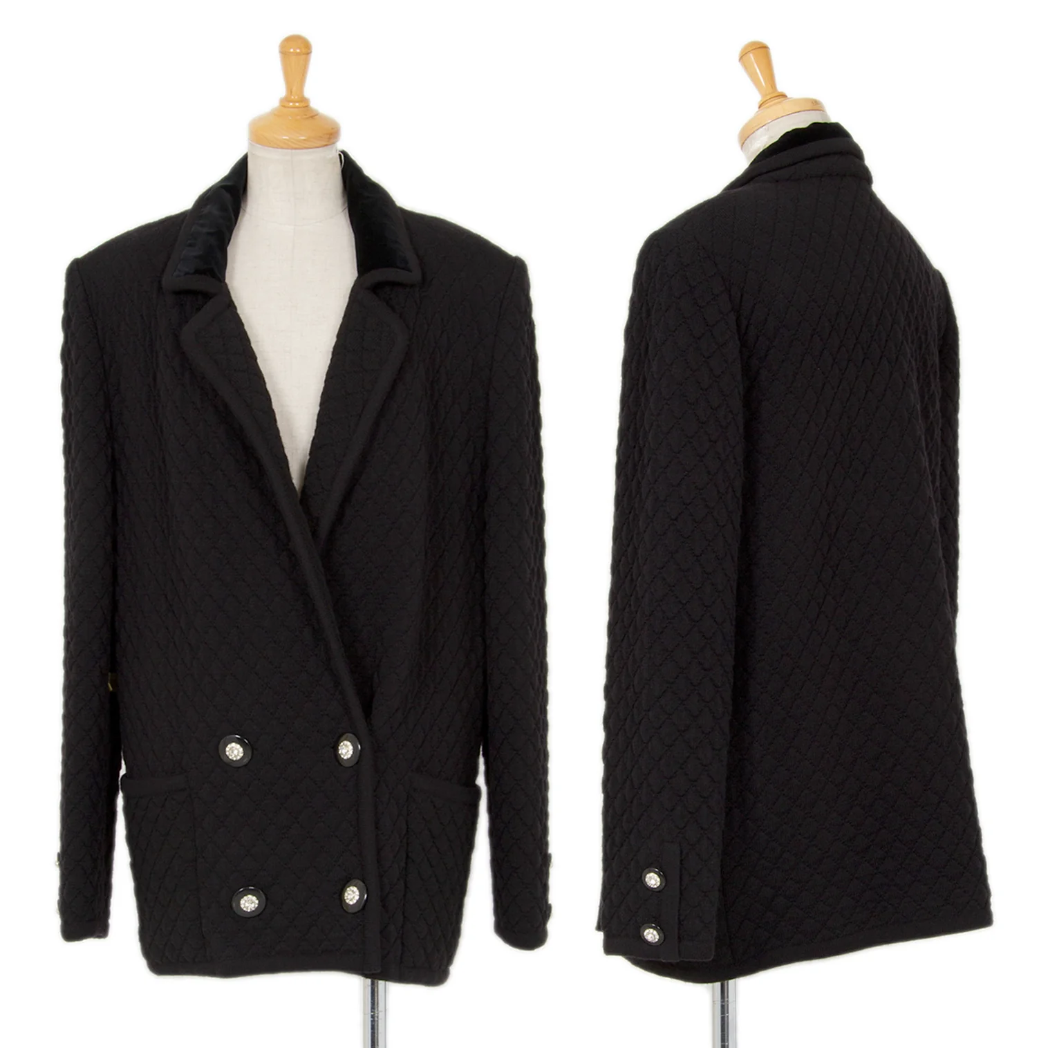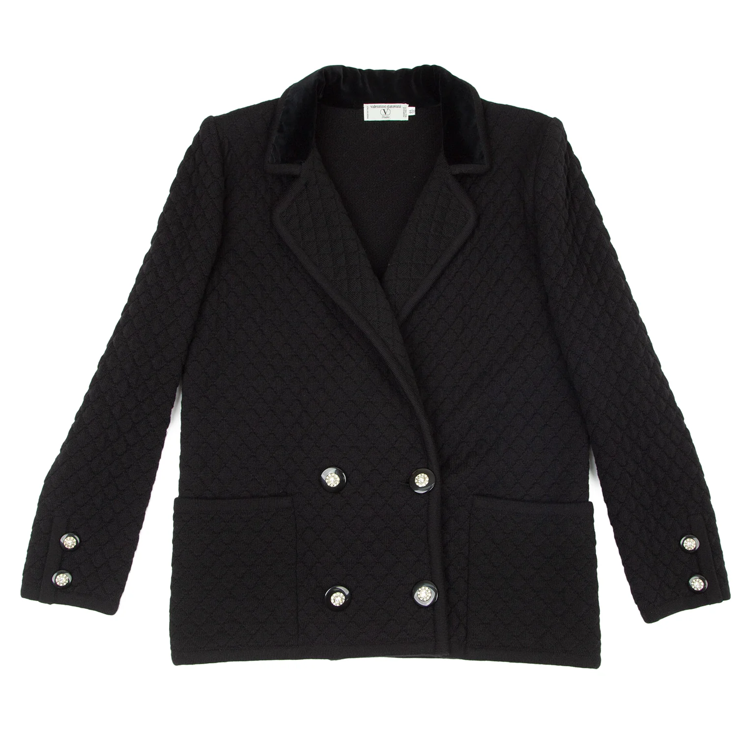 ヴァレンティノ ガラヴァーニVALENTINO GARAVANI ウールキルティングビジューボタンダブルジャケット 黒44