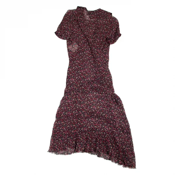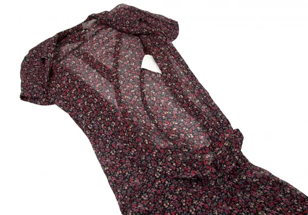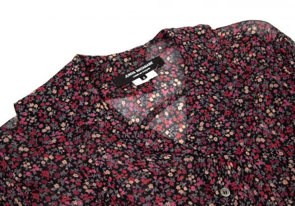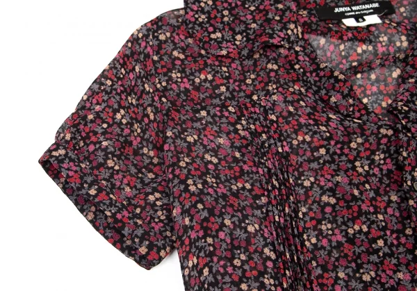 ジュンヤワタナベ コムデギャルソンJUNYA WATANABE COMME des GARCONS レーヨン花柄バック再構築デザインシャツ半袖ワンピース 黒マルチS