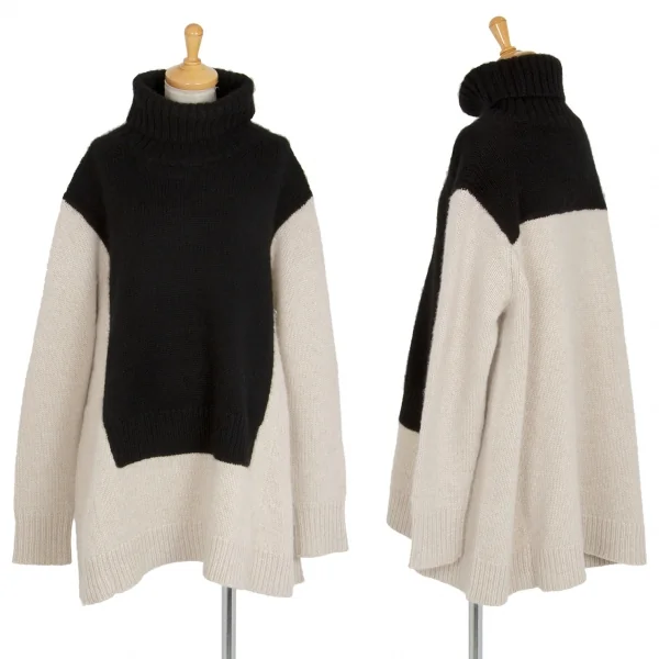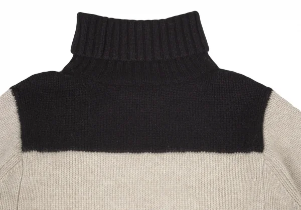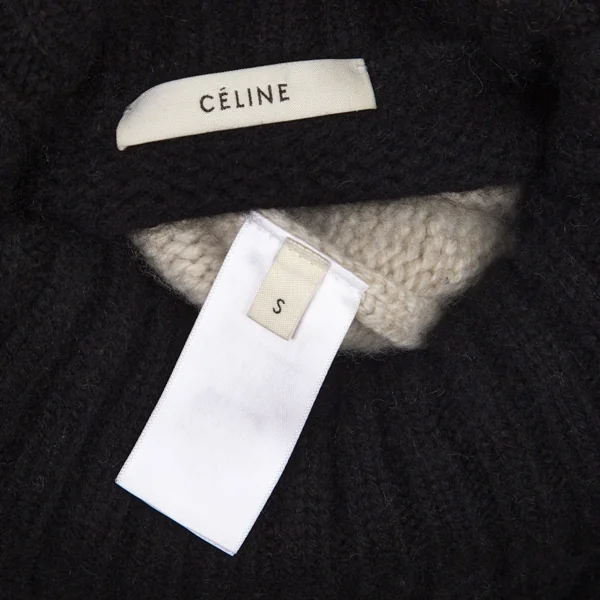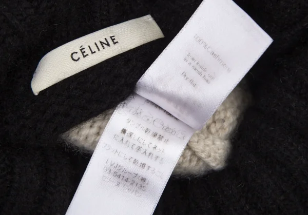 セリーヌCELINE バイカラーペーストデザインハイネックニット アイボリー黒S