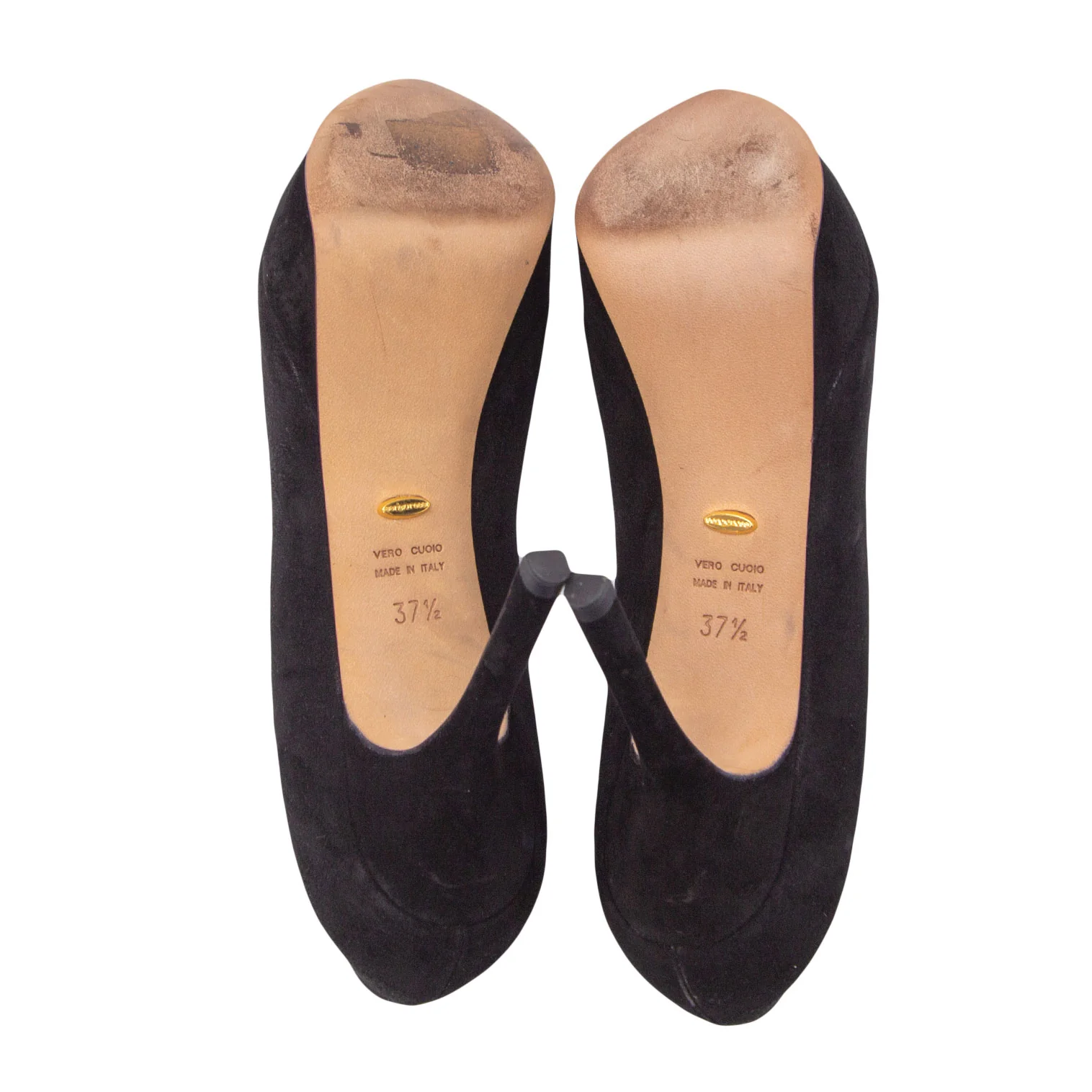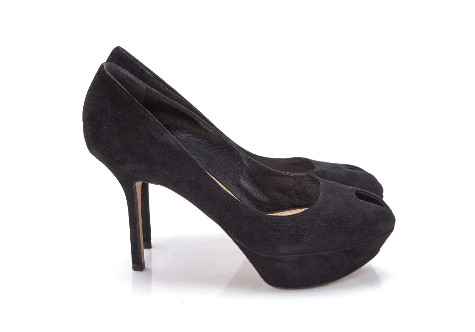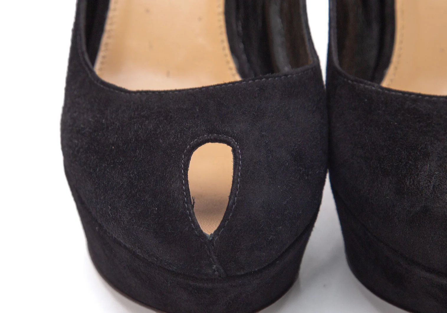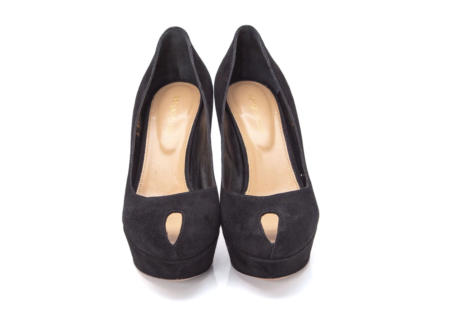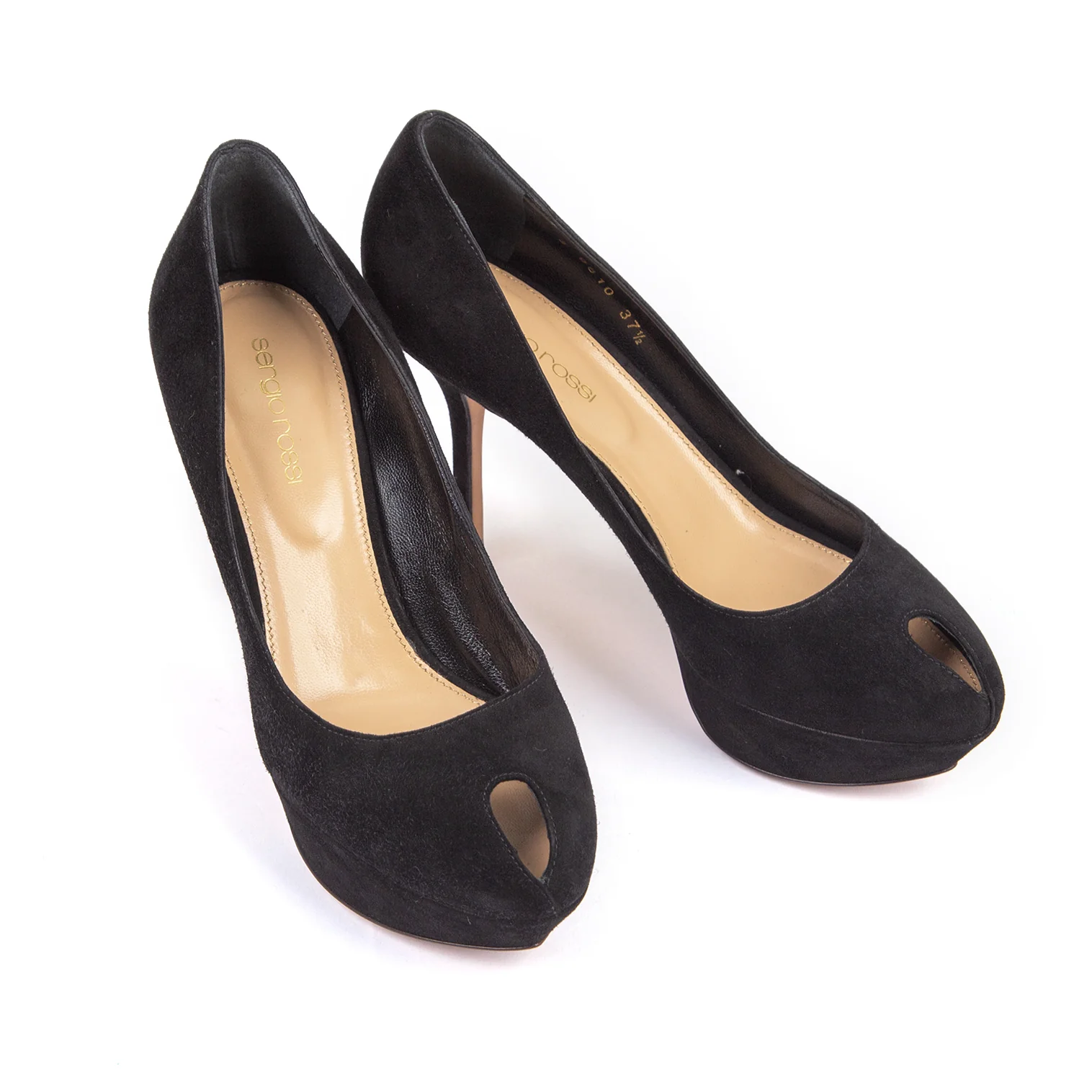 セルジオロッシsergio rossi オープントゥスウェードパンプス 黒37 1/2(24位)