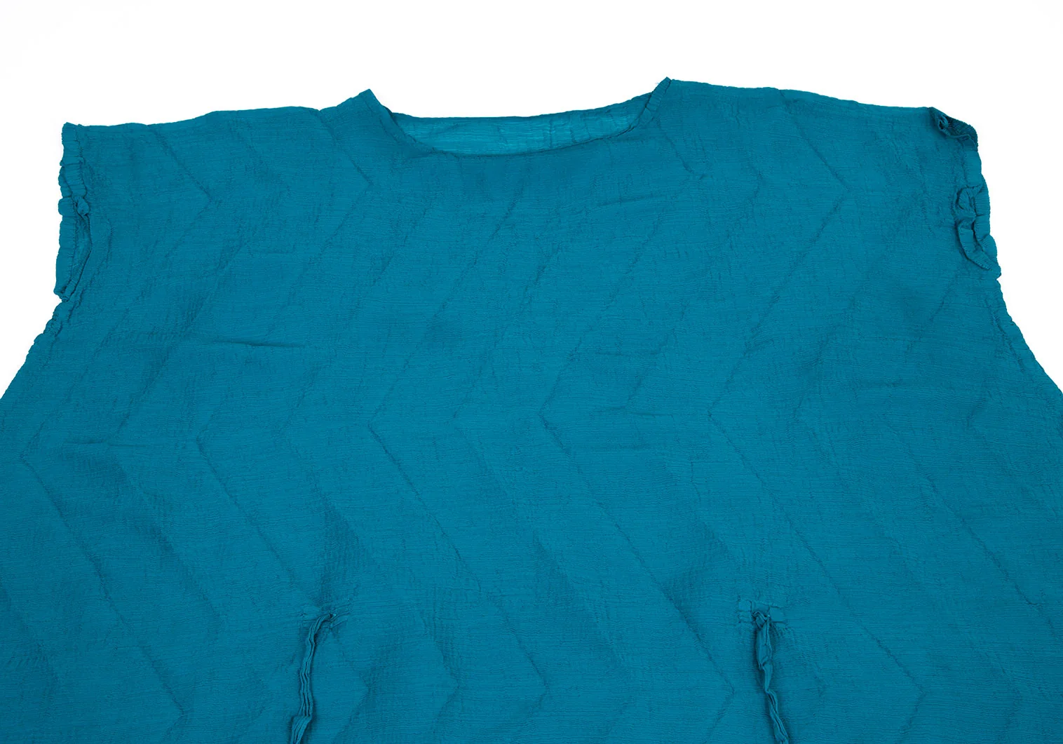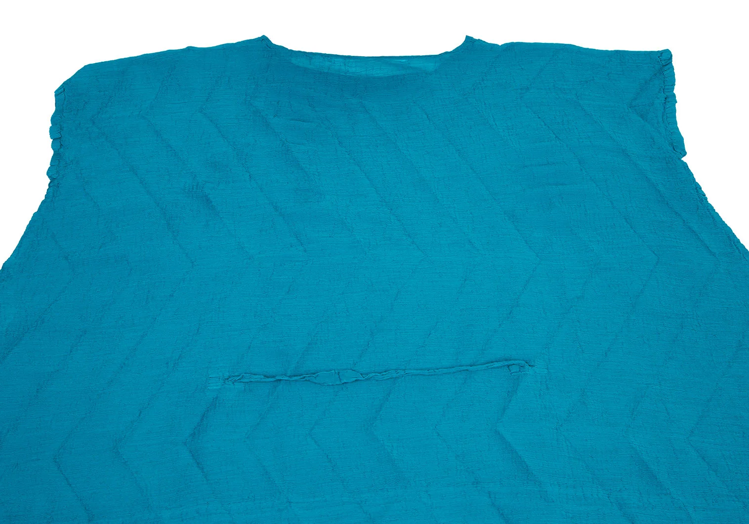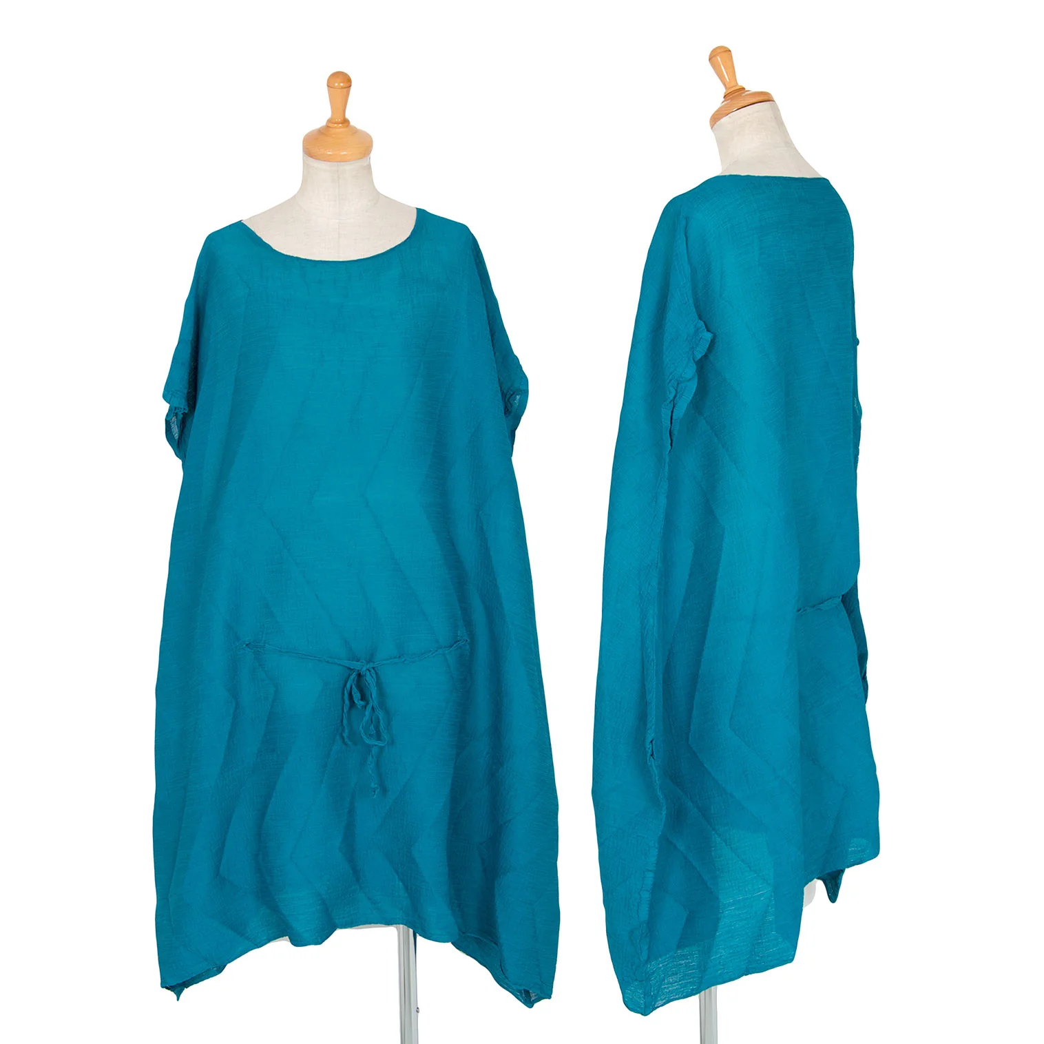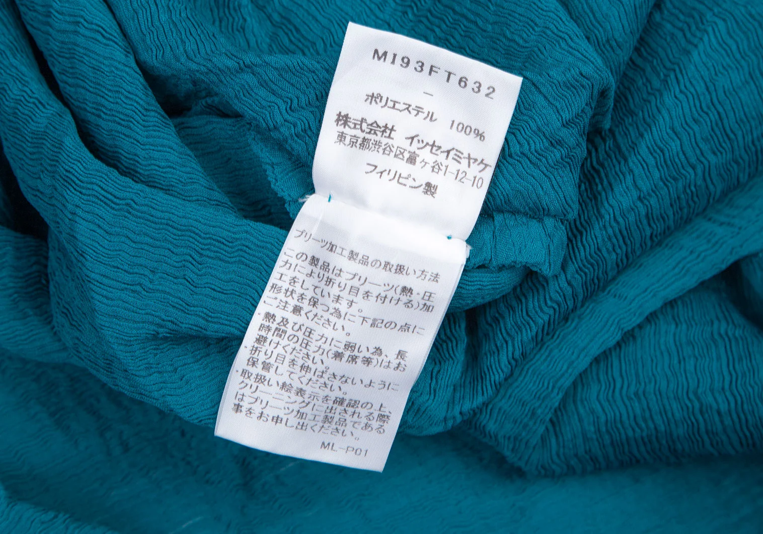 イッセイミヤケ ミーISSEY MIYAKE me ジグザグプリーツウエスト縛りデザインワイドシルエットノースリーブワンピース ターコイズF