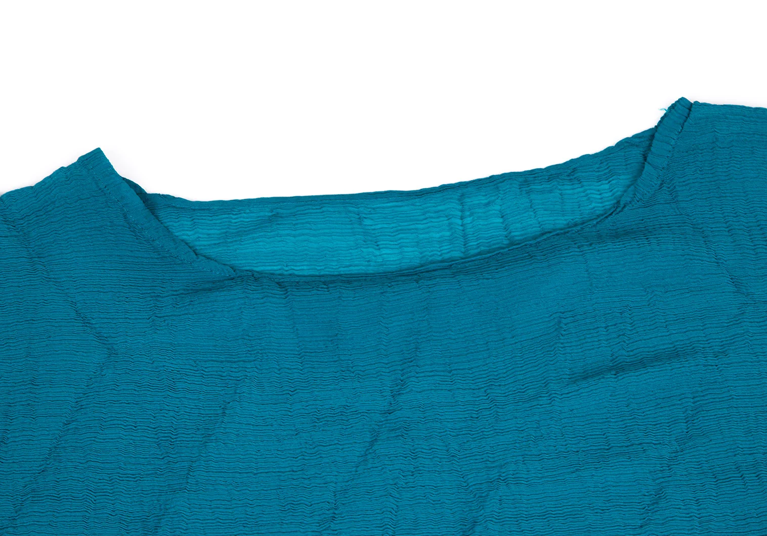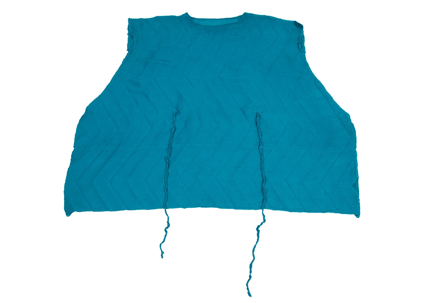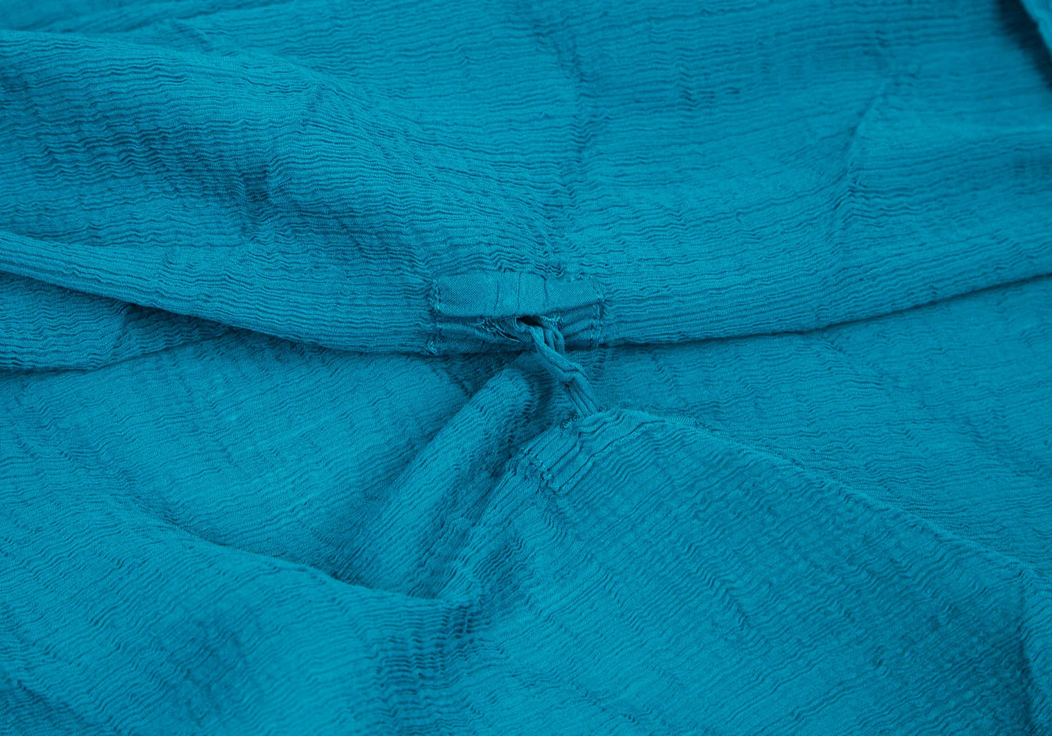 イッセイミヤケ ミーISSEY MIYAKE me ジグザグプリーツウエスト縛りデザインワイドシルエットノースリーブワンピース ターコイズF