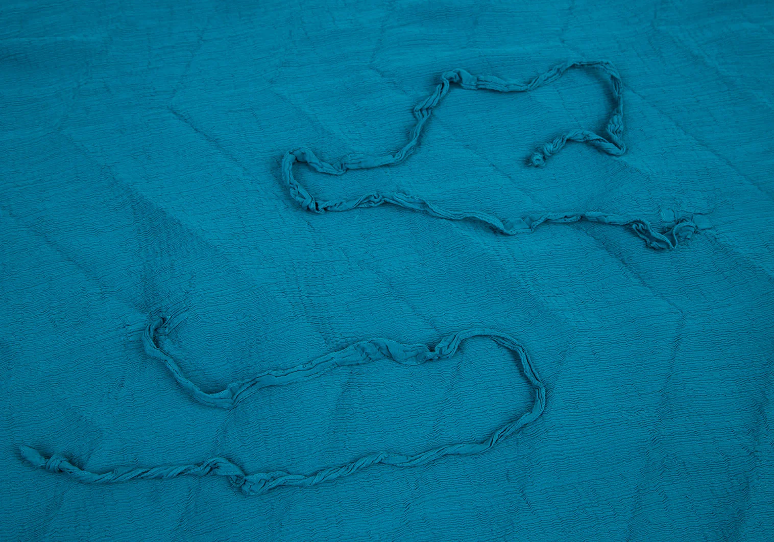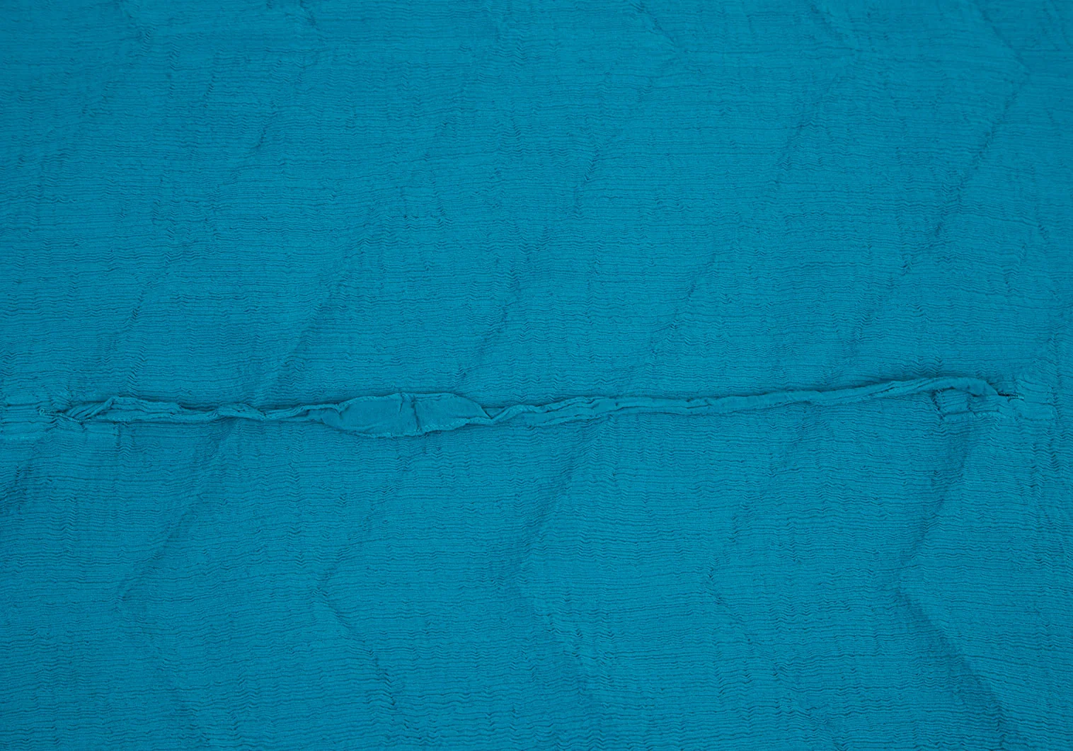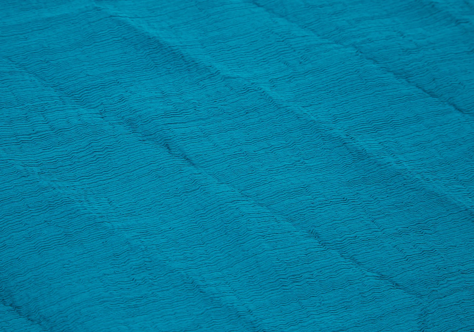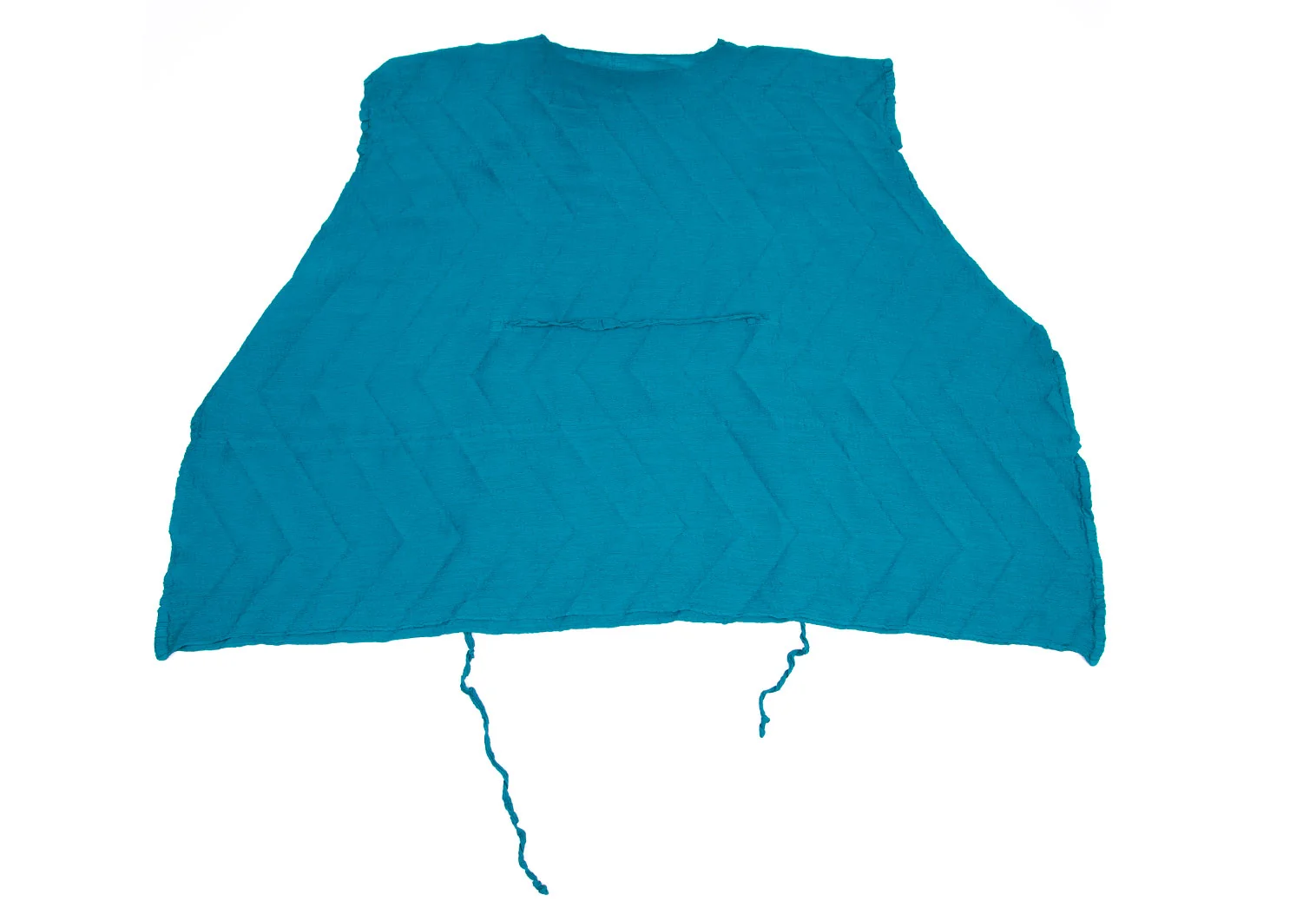 イッセイミヤケ ミーISSEY MIYAKE me ジグザグプリーツウエスト縛りデザインワイドシルエットノースリーブワンピース ターコイズF