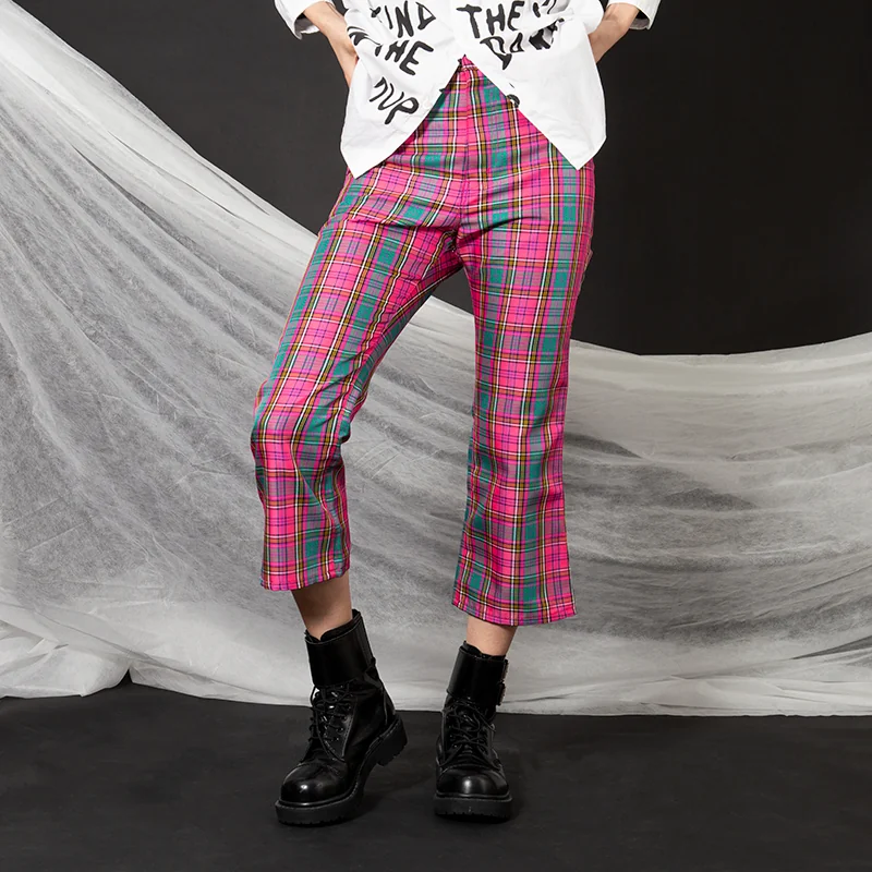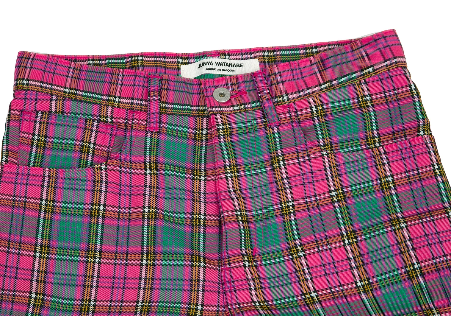 ジュンヤワタナベ コムデギャルソンJUNYA WATANABE COMME des GARCONS ポリタータンチェックパンツ ピンク緑他S