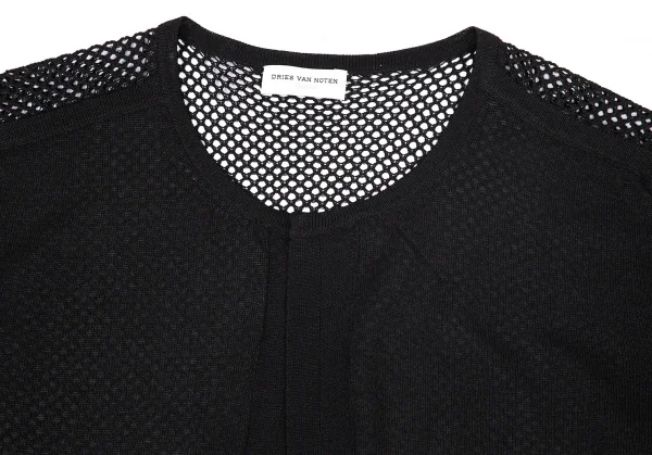 ドリスヴァンノッテンDRIES VAN NOTEN バックメッシュ切替半袖カーディガン 黒M