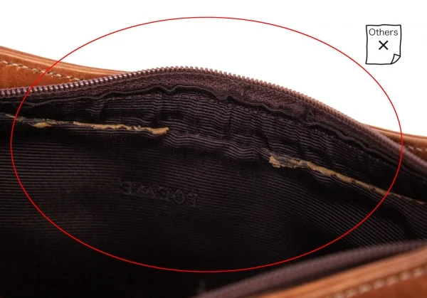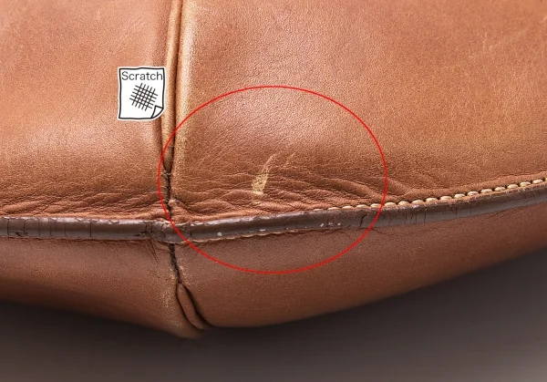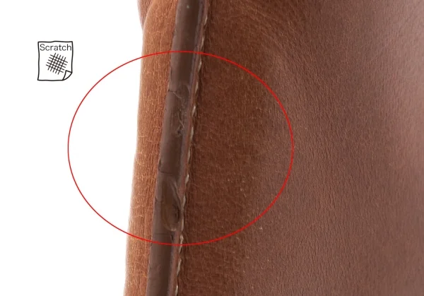 全体的に小傷、コバ、底小傷、内側に接着材の劣化、内ポケット引き手破損があります(写真参照)。その他目立った傷や汚れはありません。