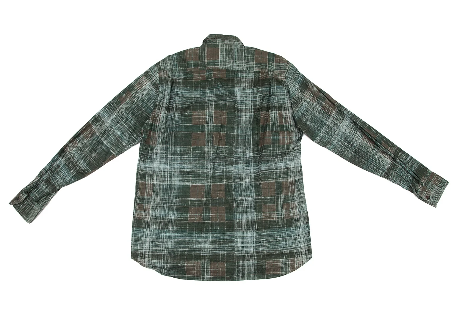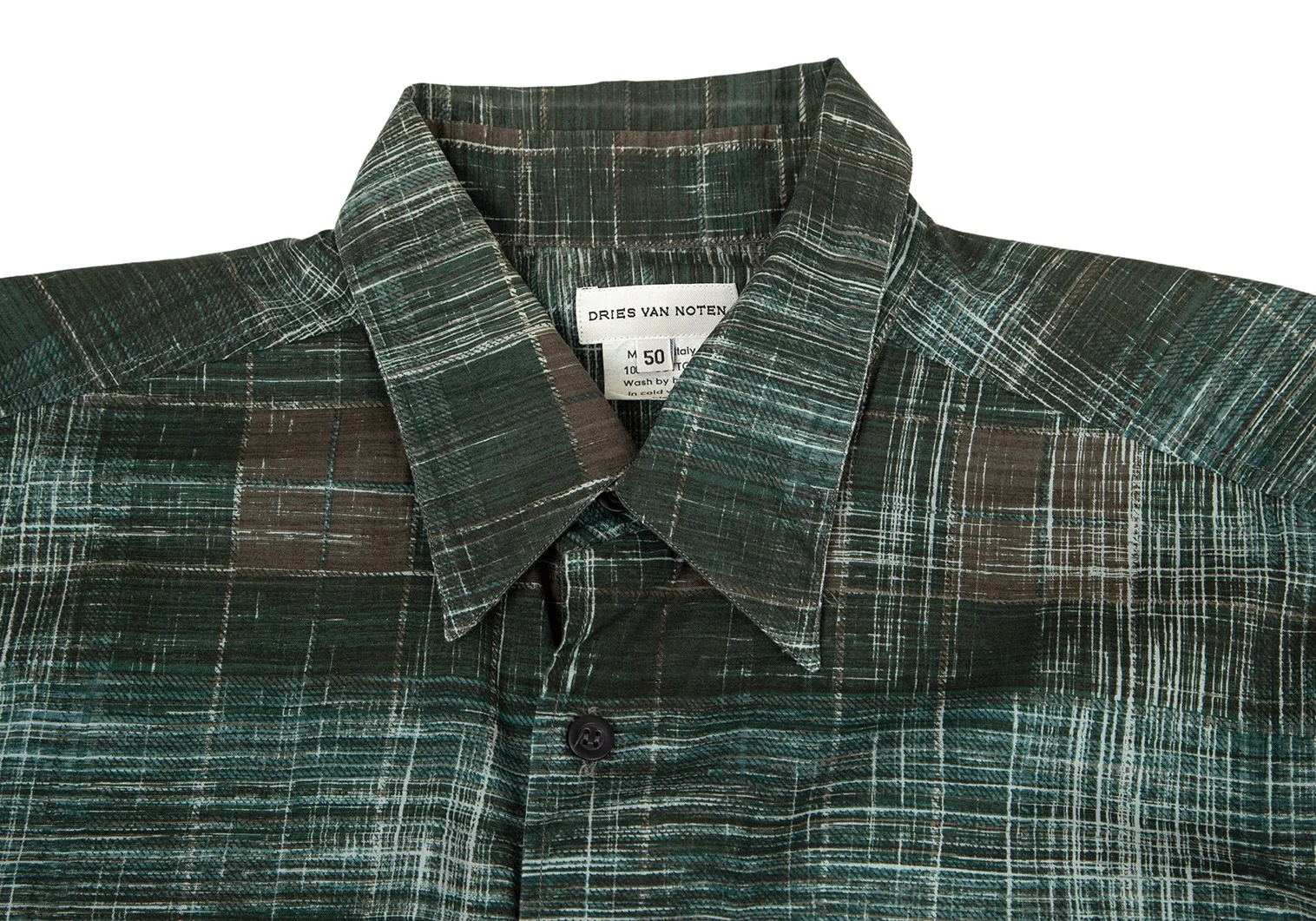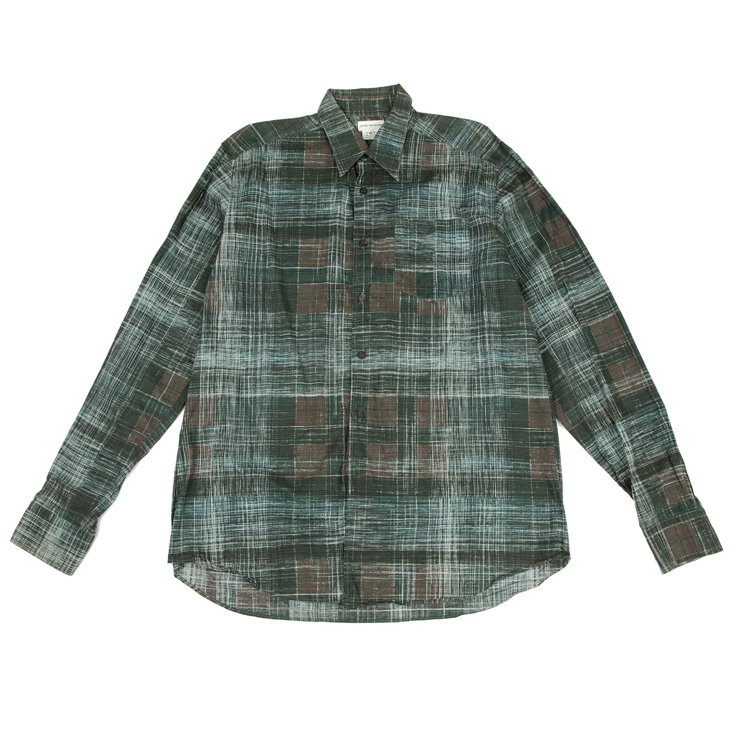 ドリスヴァンノッテンDRIES VAN NOTEN コットンかすれチェックシャツ 緑茶50