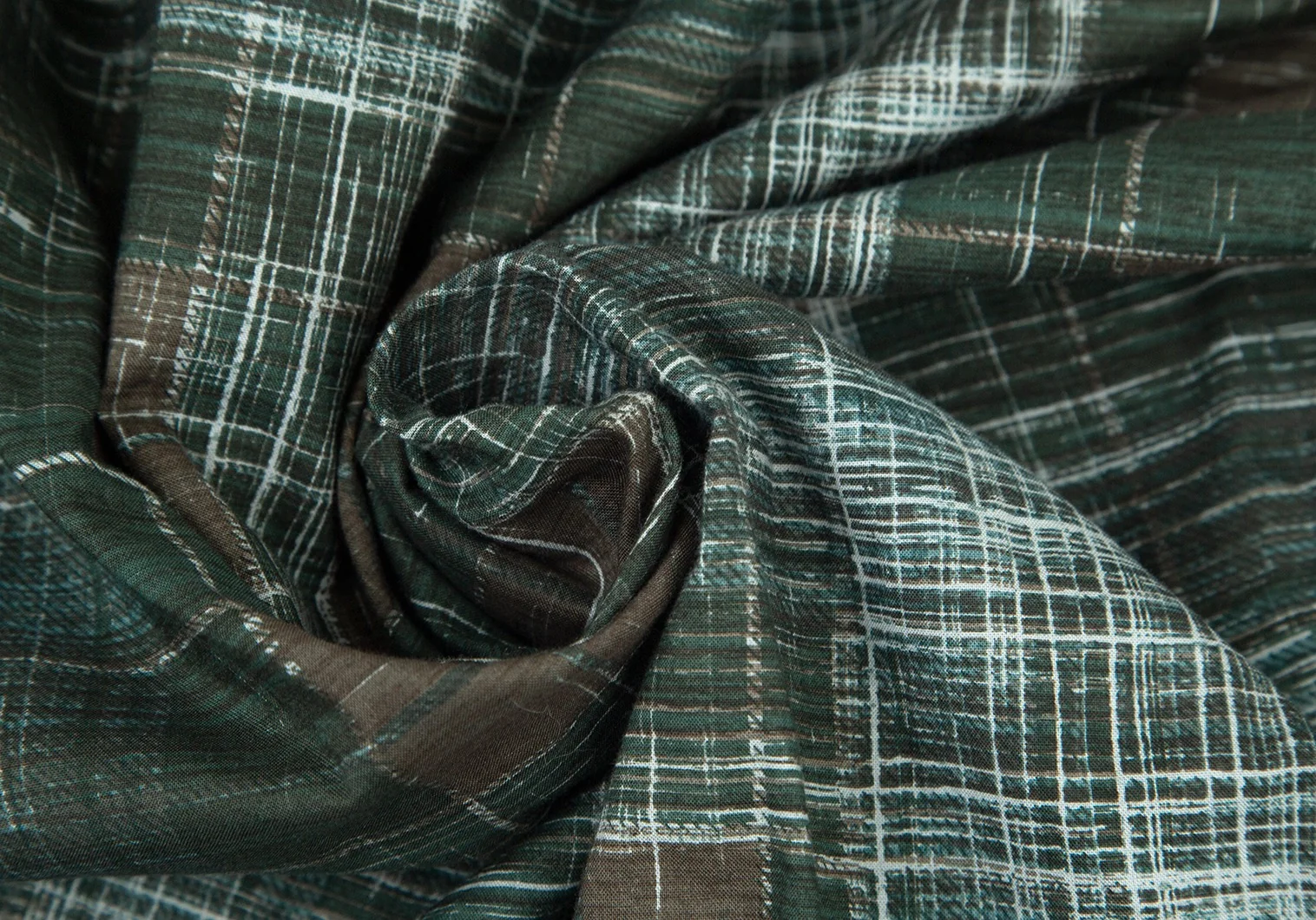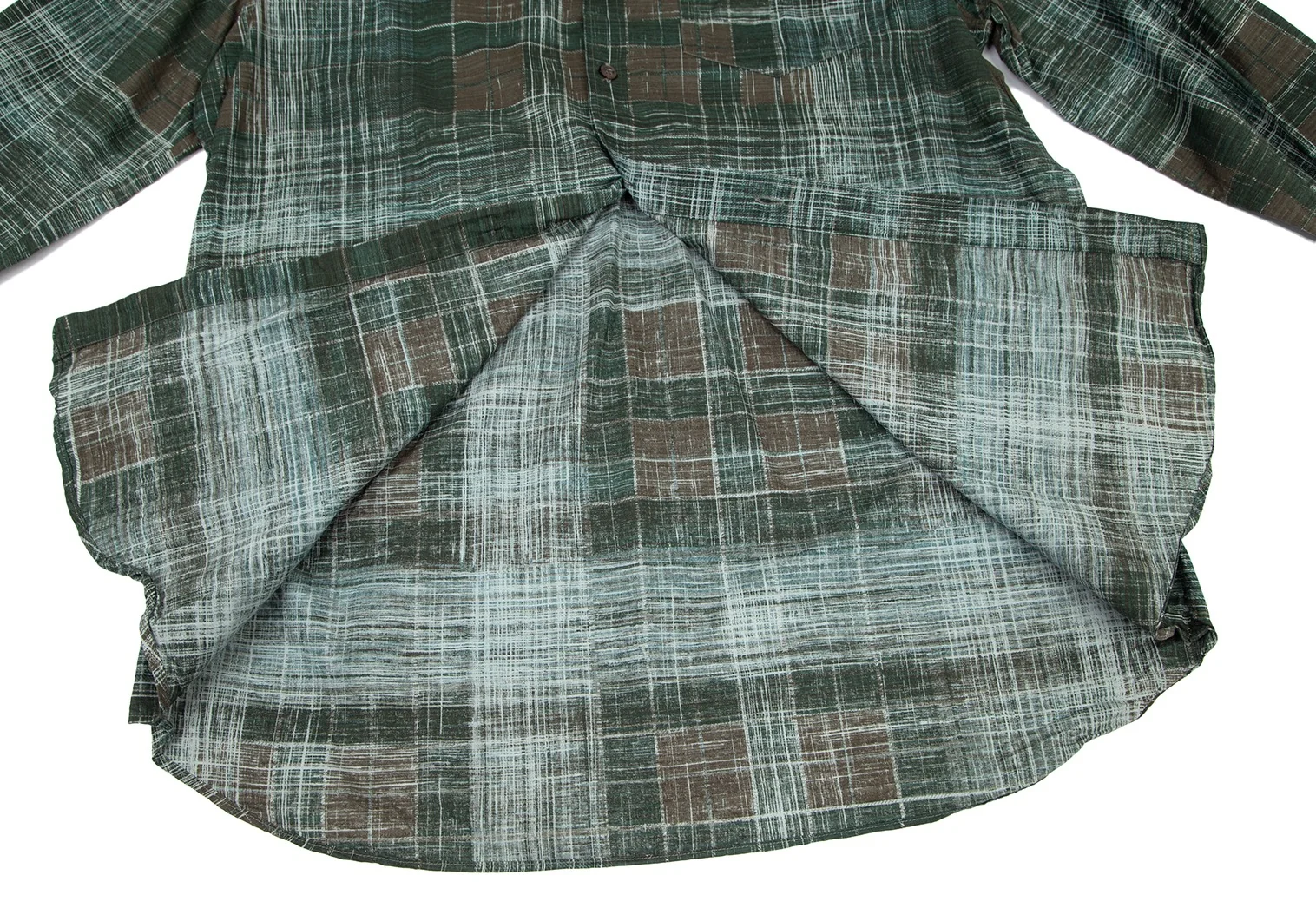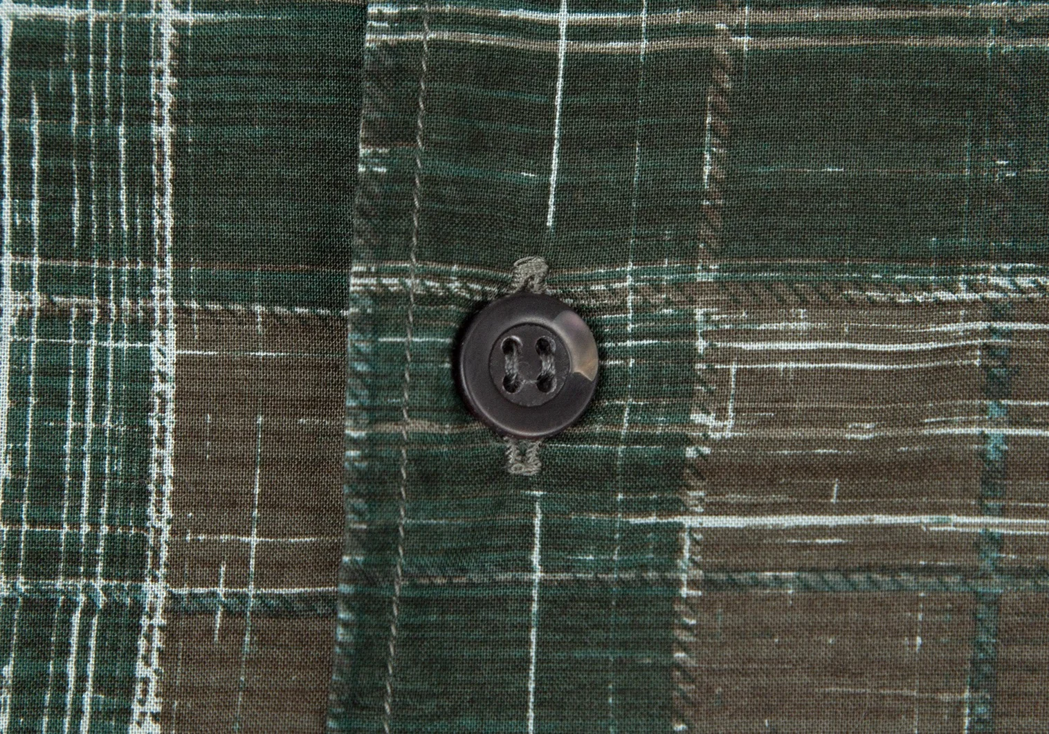 ドリスヴァンノッテンDRIES VAN NOTEN コットンかすれチェックシャツ 緑茶50