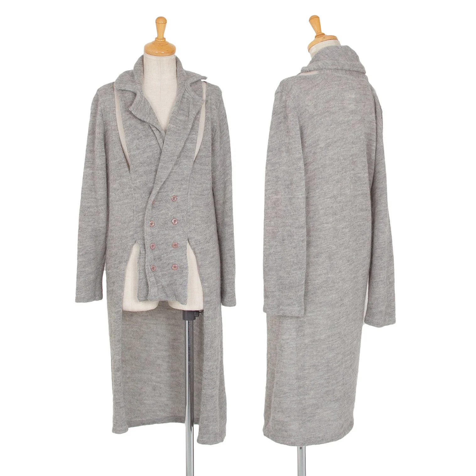 リミフゥLIMI feu アルパカニットカッティングデザインロングジャケット グレーS