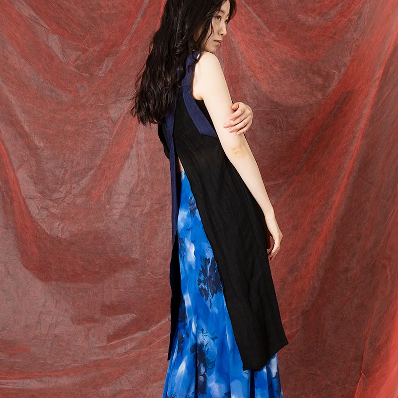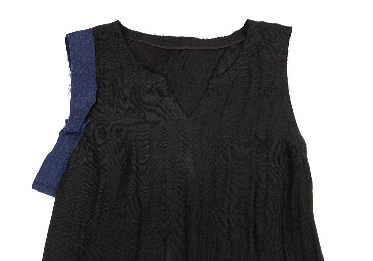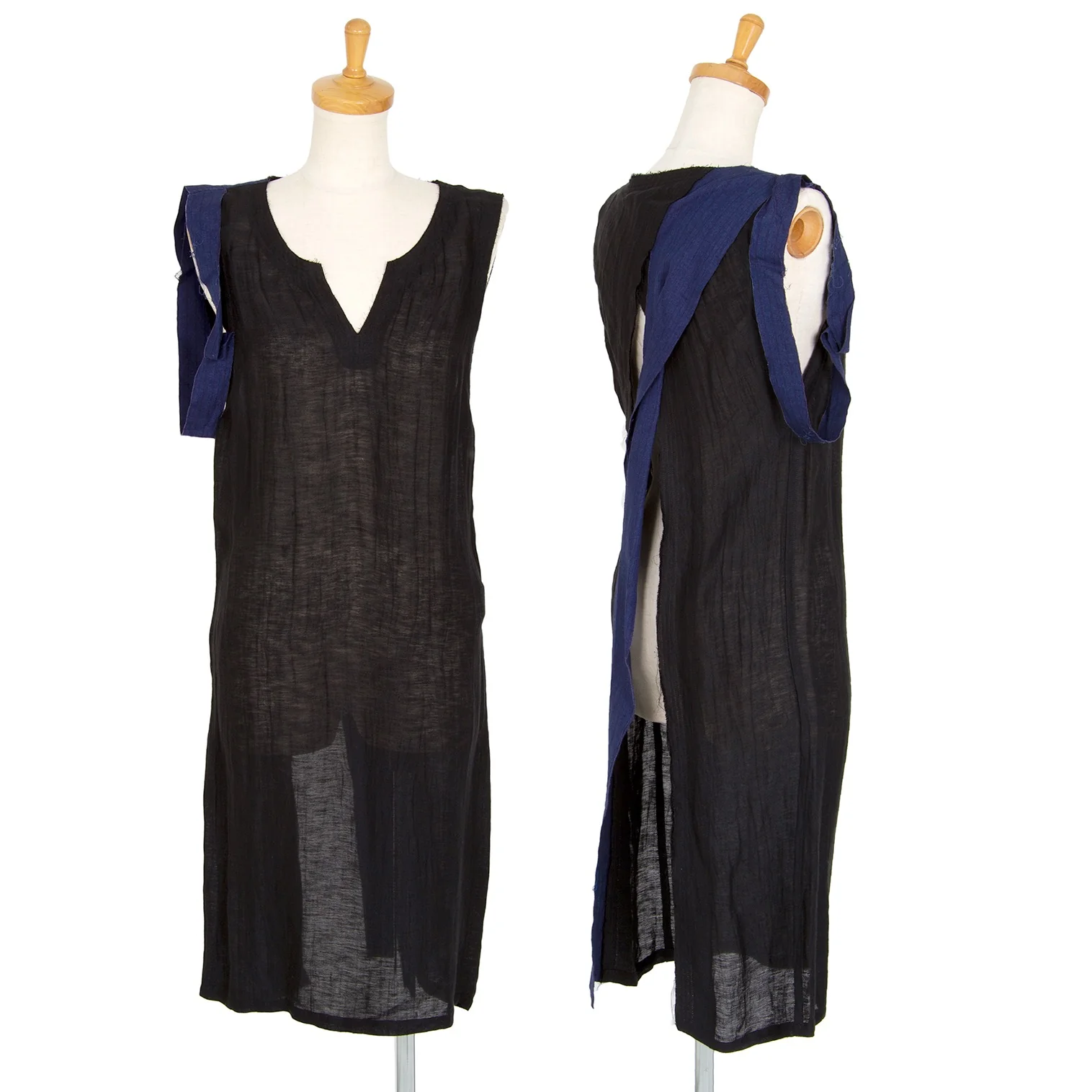 ヨウジヤマモト ファムYohji Yamamoto FEMME バイカラー裁ち切替ノースリーブワンピース 黒1