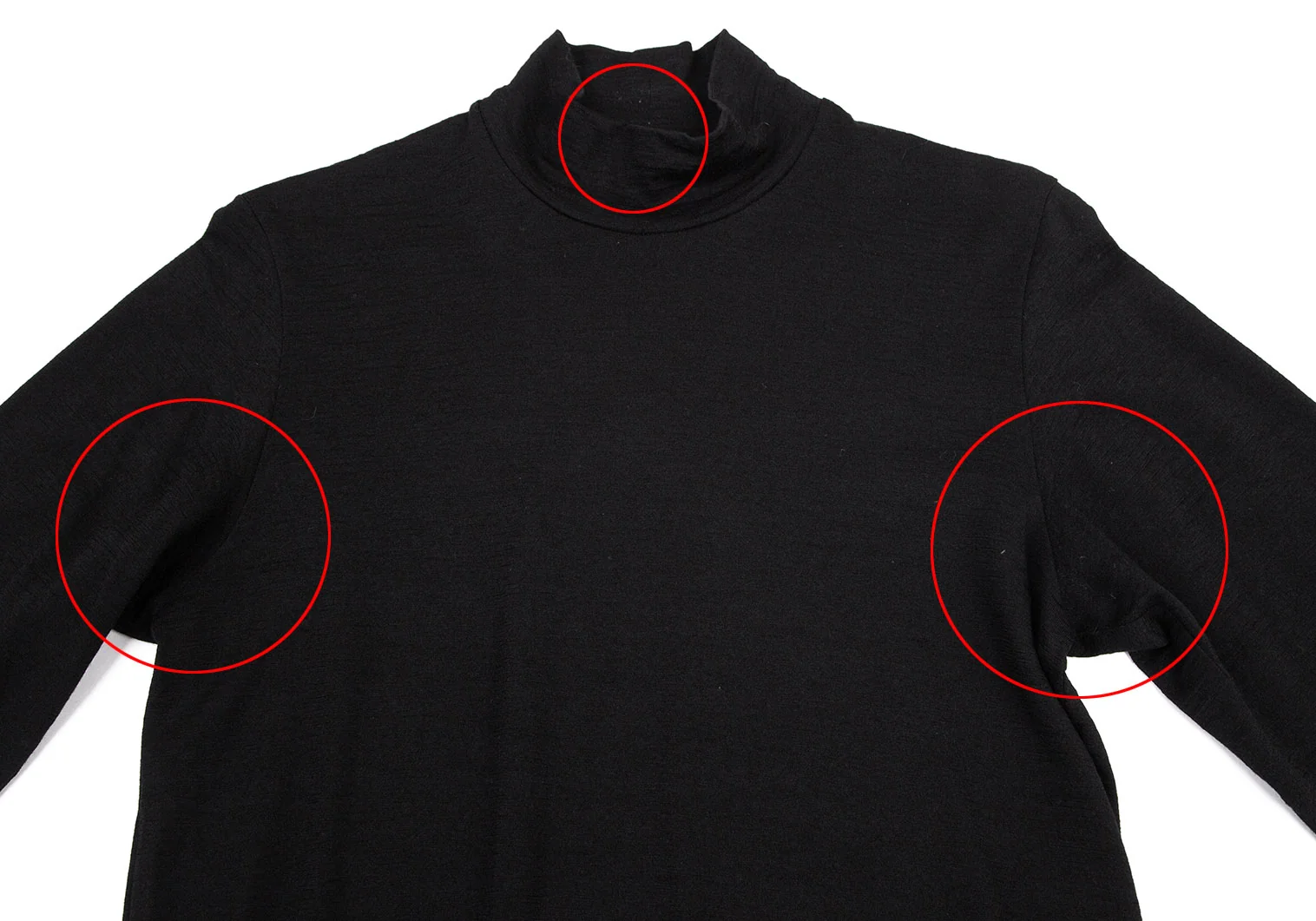 首元に穴、脇下に擦れ、前裾ステッチにほつれがあります(写真参照)。その他に目立ったシミ、汚れ、ほつれ等なくいい状態です。クリーニング済み