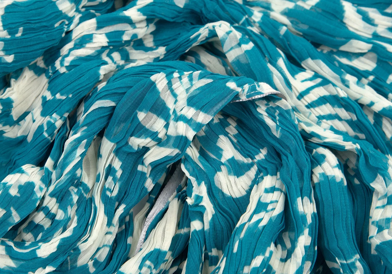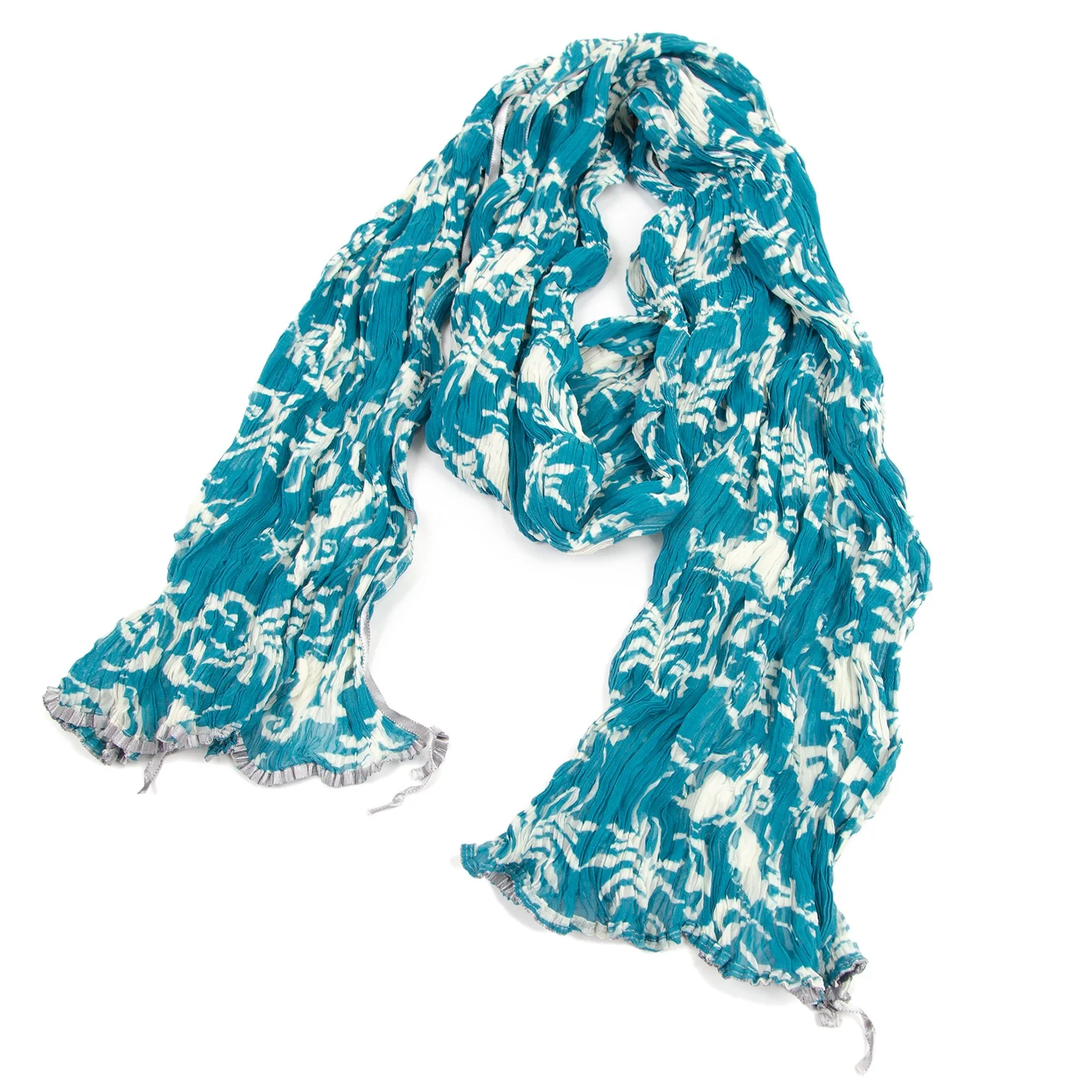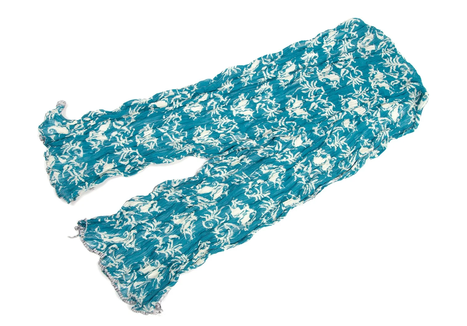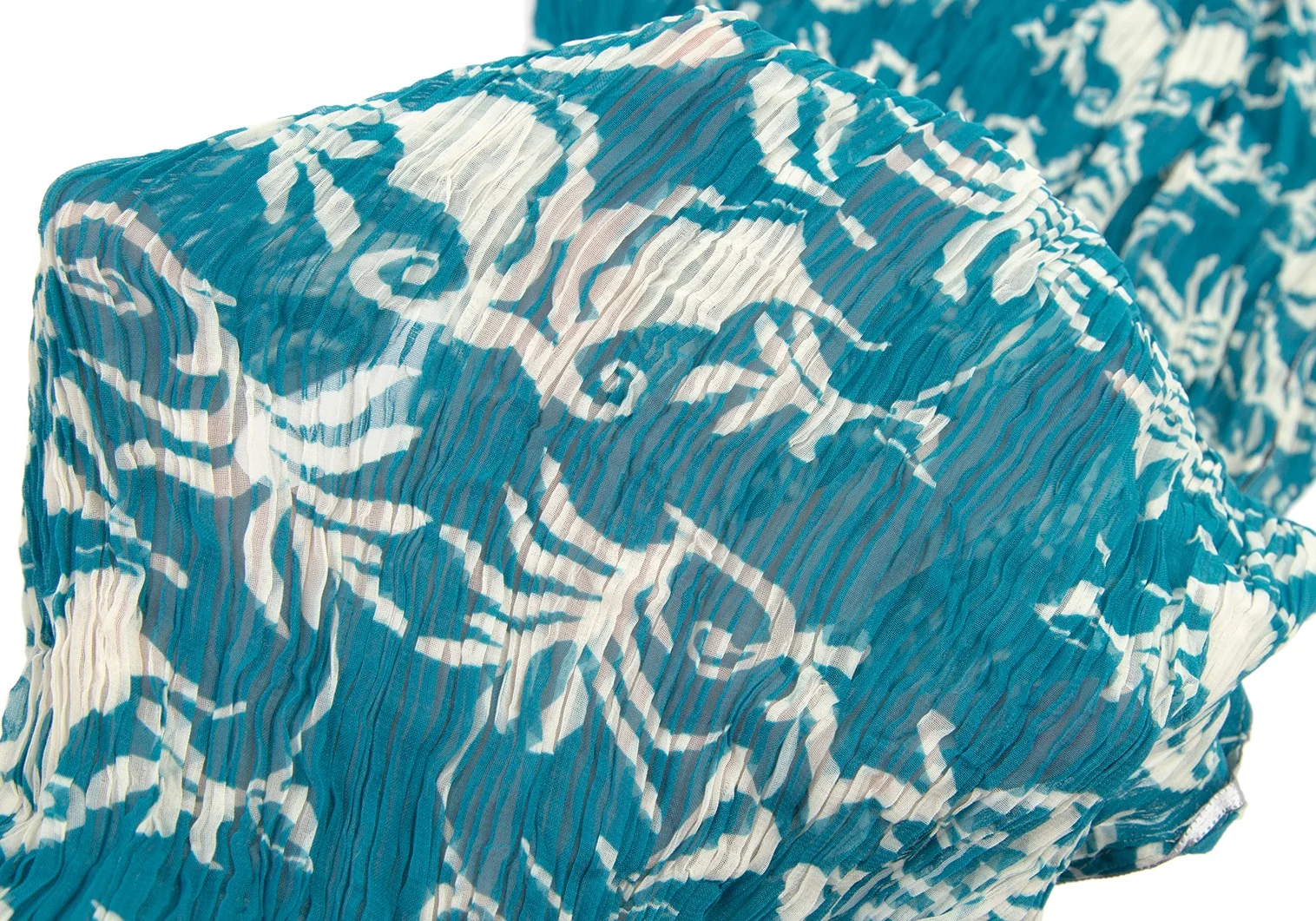 イッセイミヤケ フェットISSEY MIYAKE FETE ダマスクプリントシワプリーツストール ターコイズM位