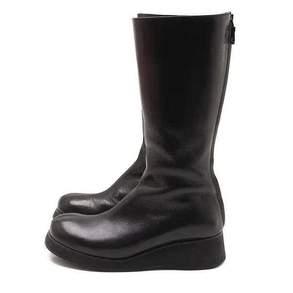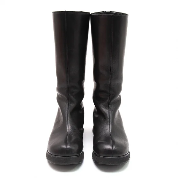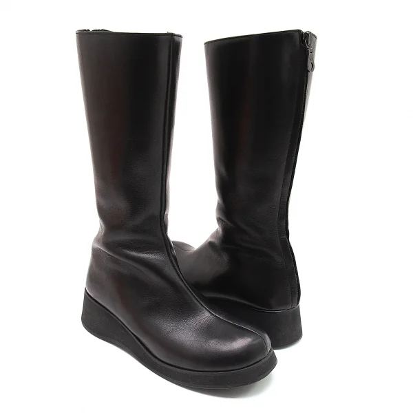 ヨウジヤマモト ノアールYohji Yamamoto NOIR レザーバックジップロングブーツ 黒22.5位