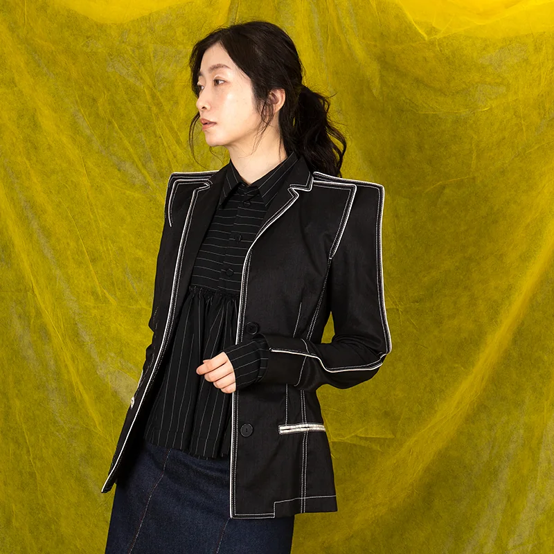 ジャンポールゴルチエ ファムJean Paul GAULTIER FEMME パイピングスクエアシルエットジャケット 黒40