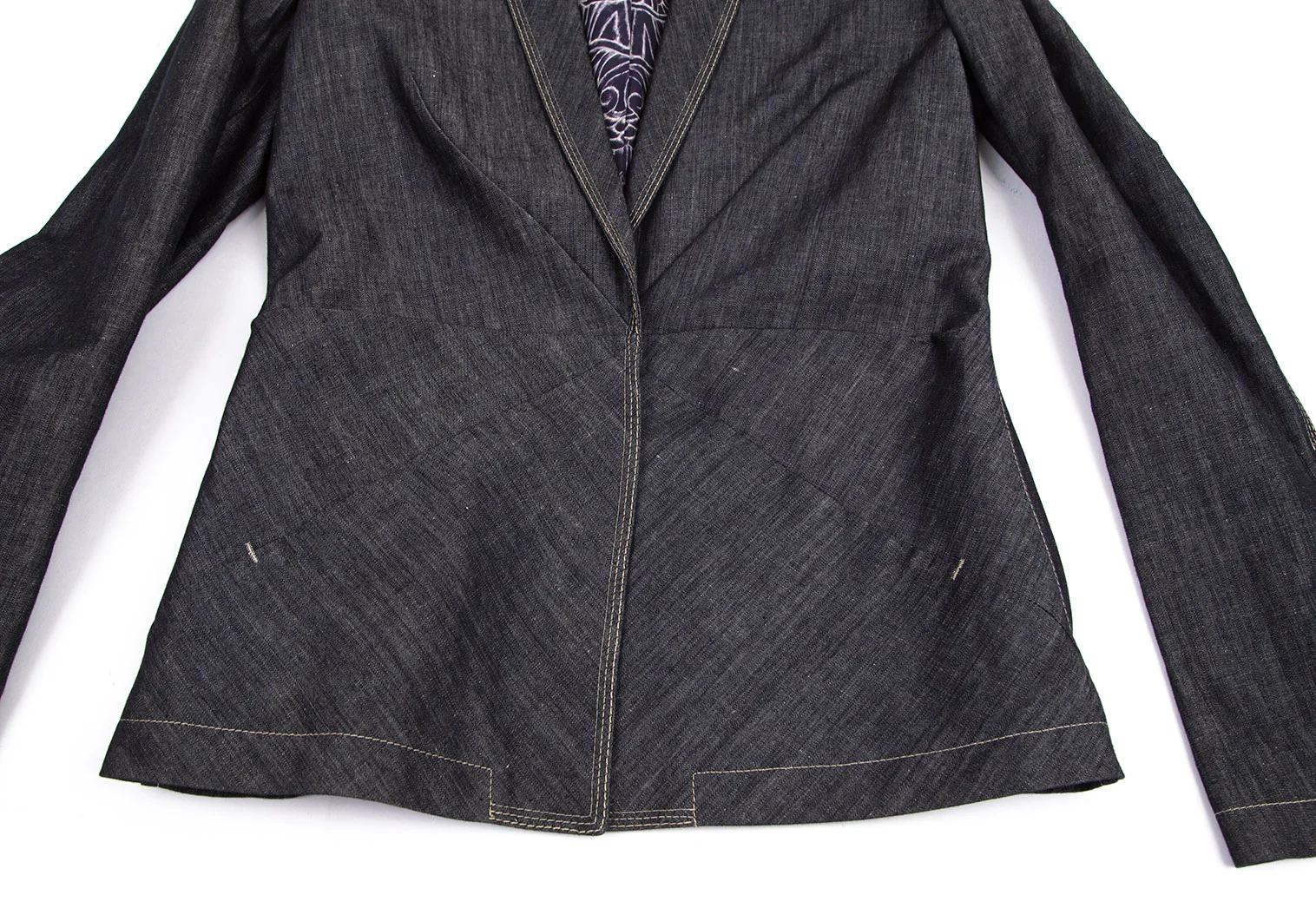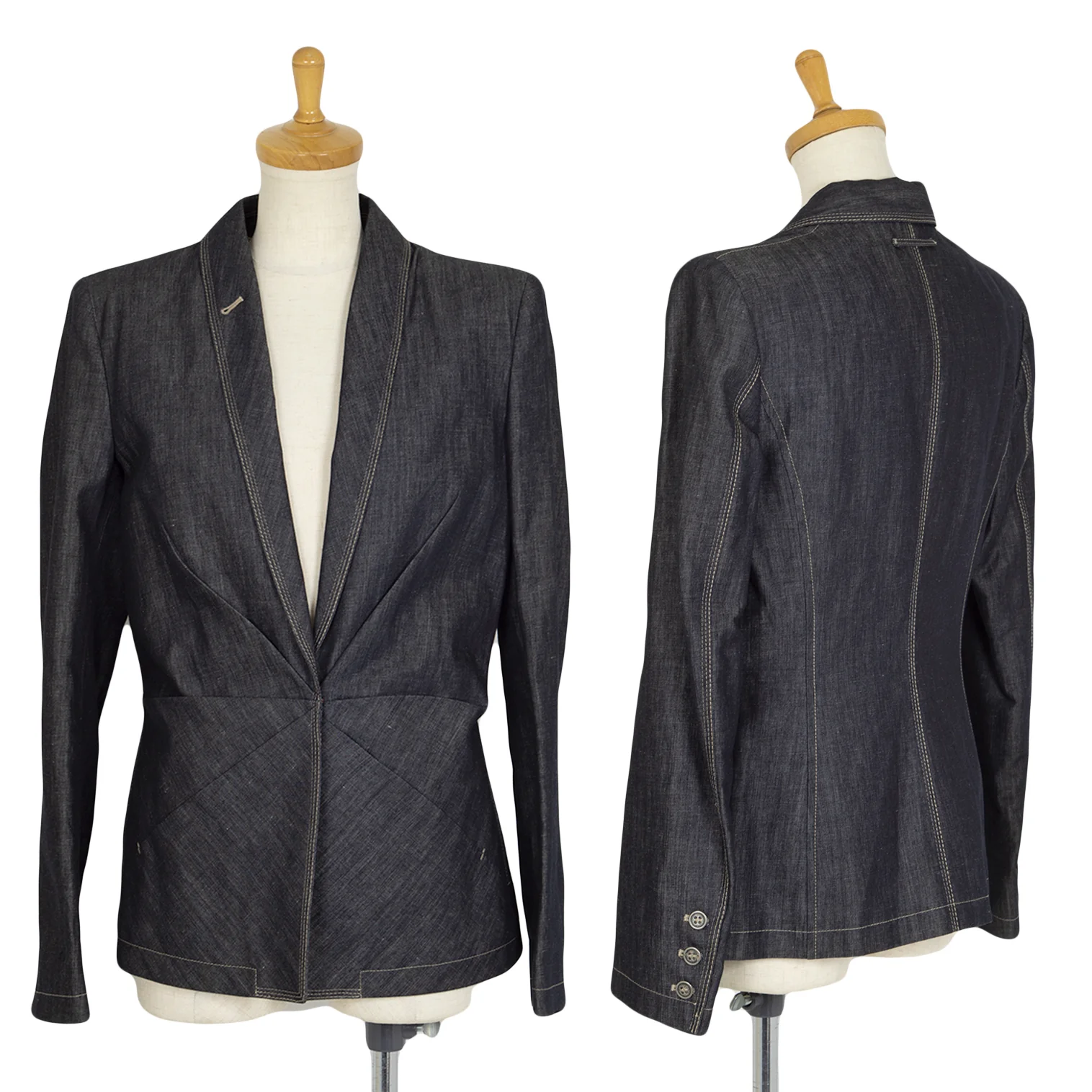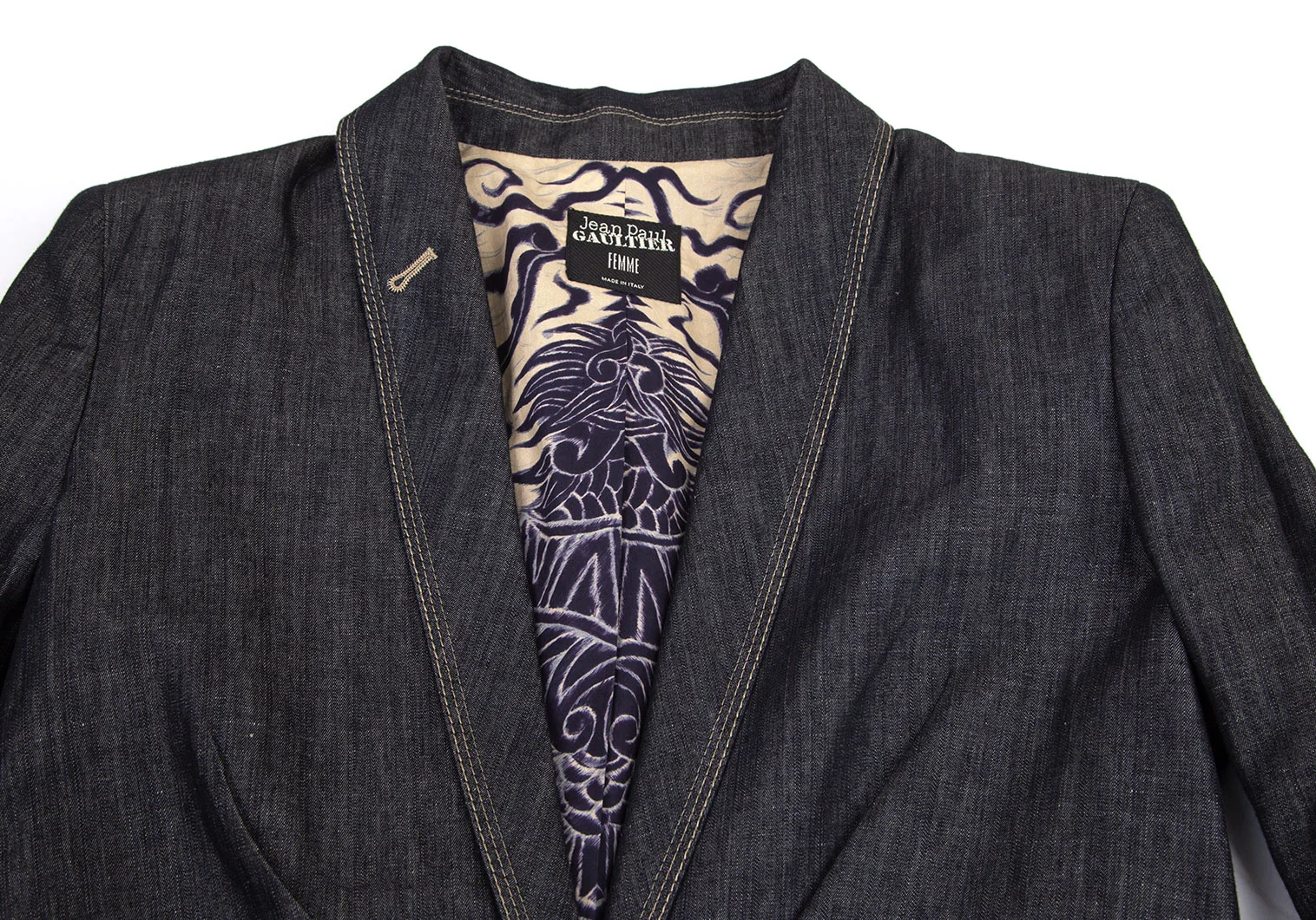 ジャンポールゴルチエ ファムJean Paul GAULTIER FEMME 裏ドラゴンプリントデニムショールカラージャケット インディゴ42